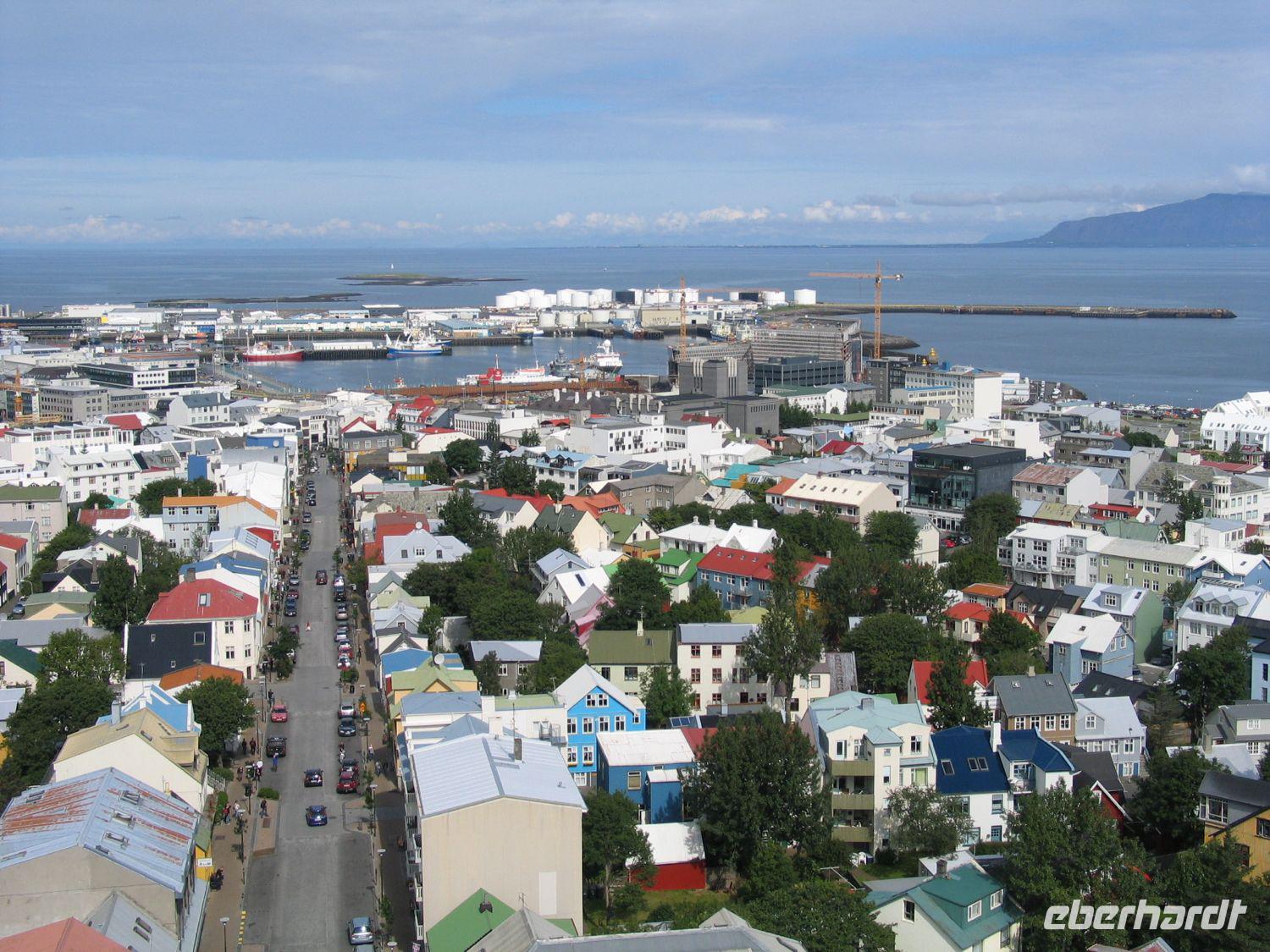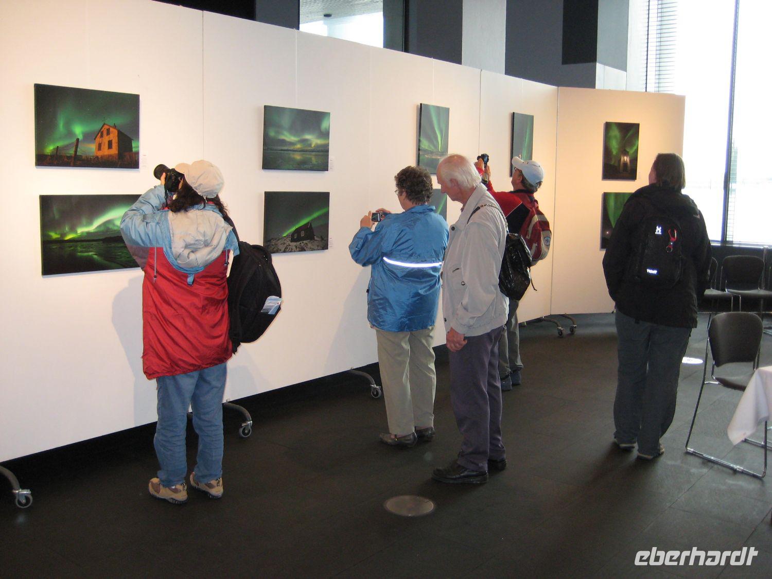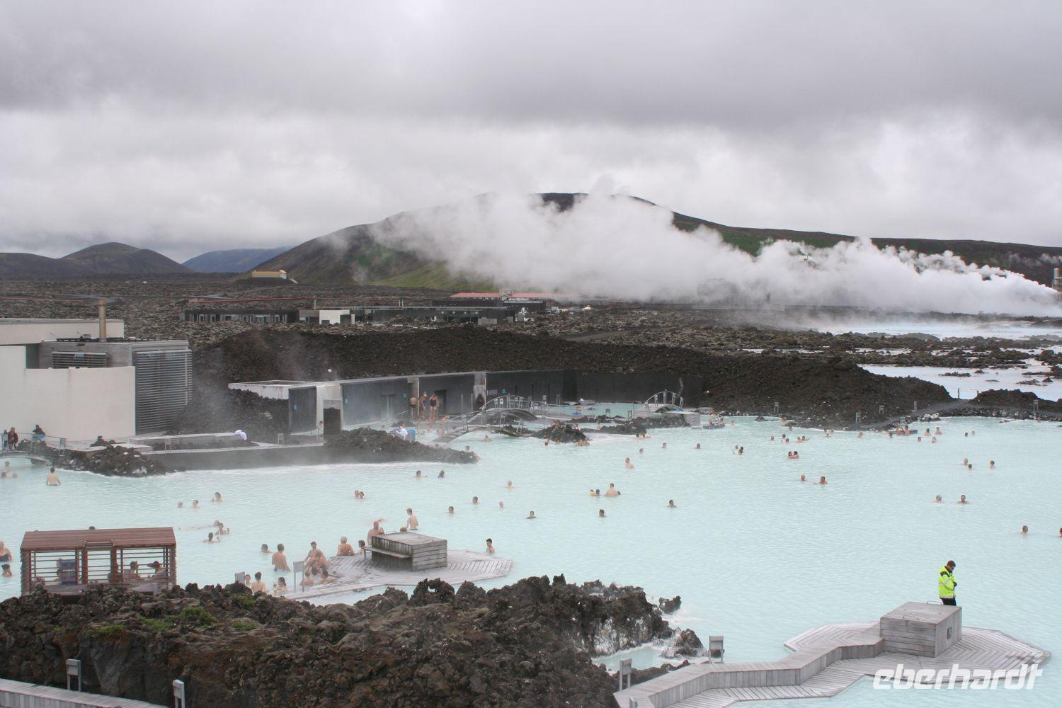 Am nächsten ?Morgen? gab es ein ausgewogenes Frühstücksbuffet im Hotel. Gegen 10 Uhr trafen wir in der Hotel-Lobby Berglind und unser Bus stand auch schon bereit, um uns zur Blaue Lagune zu bringen. Sie besteht aus einem Lavagestein-Becken und ist gefüllt mit wohltemperierten Wasser aus dem nahegelegenem Geokraftwerk. Das Wasser ist aufgrund des hohen Mineralienanteils milchig weiß. Es ist für alle Annehmlichkeiten gesorgt, da sich sogar eine Bar im Becken befindet. So lässt es sich leben. Nach dem entspannten Teil des Tages ging es zu einer kleinen Stadtführung zurück nach Reykjavík. Wir sahen uns das Rathaus von innen an und gingen von dort aus weiter zur Alpin, dem Parlament der Isländer. Mit dem Bus ging es weiter zur Hallgrímskirkja, dem Wahrzeichen der Stadt, und zum Perlan, dem Warmwasserspeicher mit Aussichtsplattform und Restaurant, hoch über der Stadt. Am Abend wurde es bei einem dreigängigen Abendmenü kulinarisch.