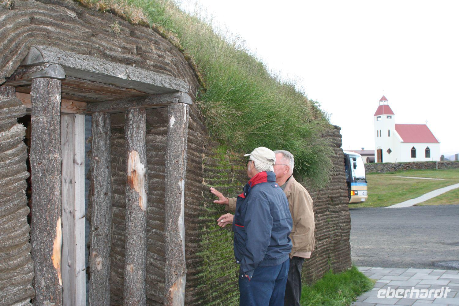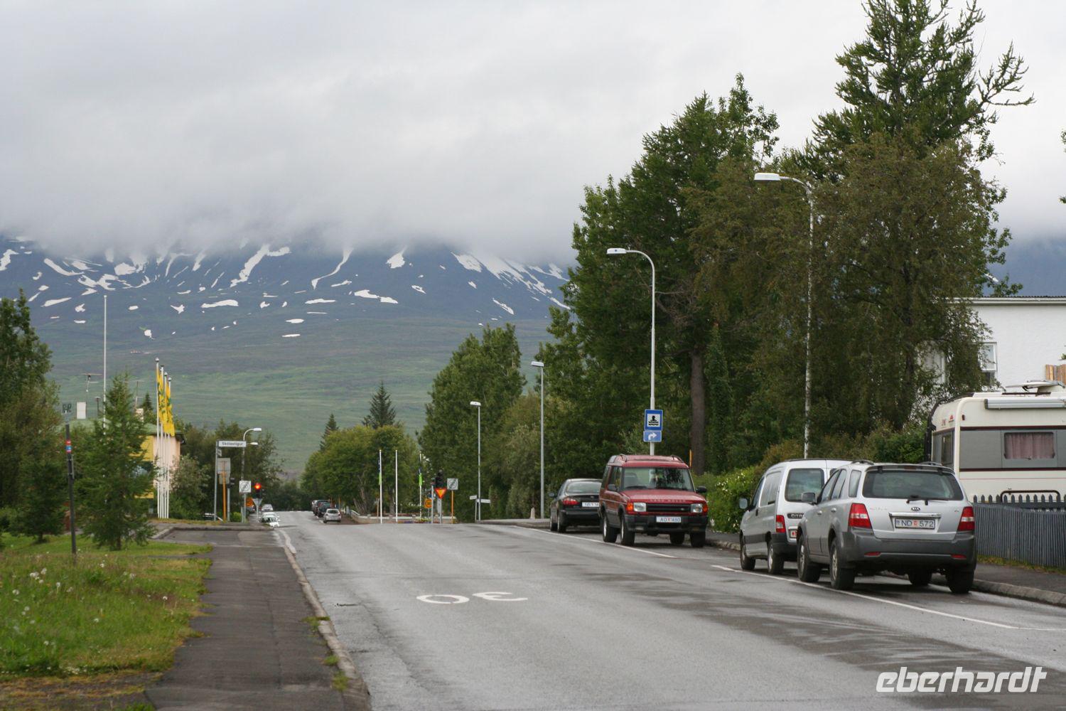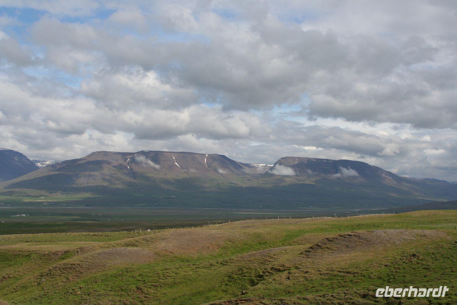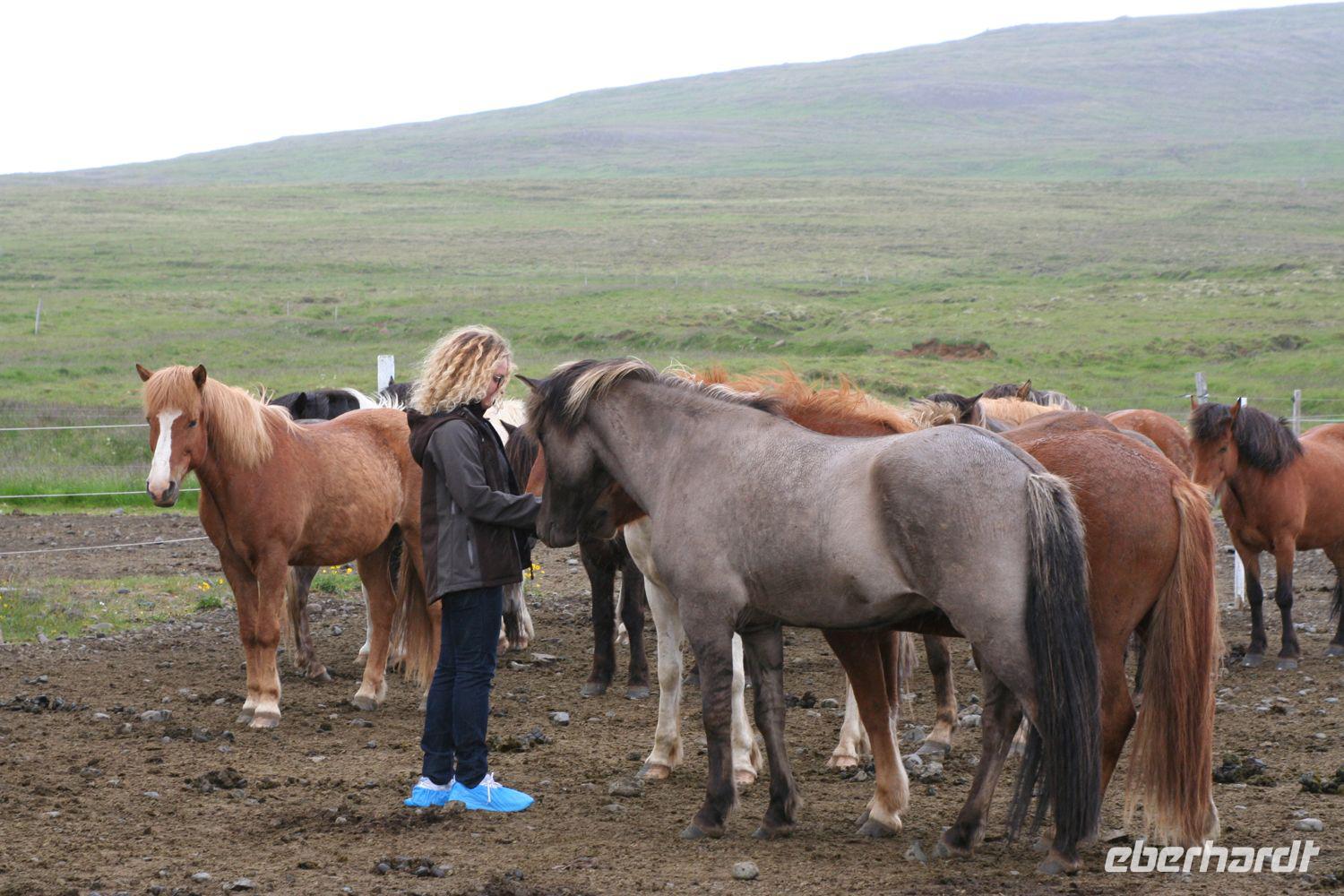 Ab heute wird es nun endlich ernst, denn nun werden wir Island in den nächsten Tagen einmal umrunden und damit auch täglich das Hotel wechseln. Deshalb heißt es nach dem Frühstück, wie die nächsten Tage auch, Zimmer räumen und um 8:45 mit Gepäck am Bus zu erscheinen. Nach dem alle Koffer verladen waren verließen wir Reykjavík in Richtung Norden auf der ?Ringstraße Nummer 1? Sie wird die nächsten Tage unsere Hauptverkehrslinie sein, da sie das auch für die Isländer ist. Unsere erste Etappe ist zugleich auch die längste, denn von Reykjavík bis Akureyri sind es ungefähr 400 km. Das große Highlight ist die Strecke an sich, links der Atlantik und rechts die hohen steilaufragenden Tafelberge. Zudem ging es durch den Hvalfiördur-Tunnel, der den Walfjord unterquert und die Fahrt damit erheblich verkürzt. In der Kleinstadt Borgarnes machten wir einen kurzen Toilettenstopp und versorgten uns mit Wasser und anderen Annehmlichkeiten. Denn unser nächstes Ziel war die Besteigung und Umrundung des Grábrók, einem kleinen Vulkan direkt an der Ringstraße. Aber Island hat weit aus mehr zu Bieten als nur Vulkane und Gestein. Drum besuchten wir das Gestüt Gauksmyri und bestaunten, nach einem Mittagsbuffet, den berühmt berüchtigten Tölt der Islandpferde. Den unterscheid für den Reiter zwischen Trab und Tölt konnte man sehen als der Reiter beim Traben und Tölten eine Glas Bier in der Hand hielt. Im Gegensatz zum Tölten schwappte das Bier beim Traben aus dem Glas, bis es endgültig leer war. Nun ging es weiter durch die atemberaubende Landschaft Islands. Hier und dort machten wir einen Fotostopp, um die schöne Landschaft, bestehend aus Vulkangestein und vielen Moosen und Gräsern, festzuhalten. Am frühen Abend erreichten wir Akureyri. Doch bevor wir zu unserem Hotel fuhren, machten wir einen Stopp an der Akureyrarkirkja, in der gerade der Chor probte. Man staune, was die kleine Kirche für eine Akustik hat. Außerdem bemerkte ein Dame, dass es doch außergewöhnlich ist so viele junge Menschen in einem Kirchenchor zusehen. Unsere Herberge für diese Nacht war das Sommer Hotel ?Edda Akureyri?, das ausschließlich während der dreimonatigen Sommerferien als Hotel dient, da es sonst als Internat fungiert.