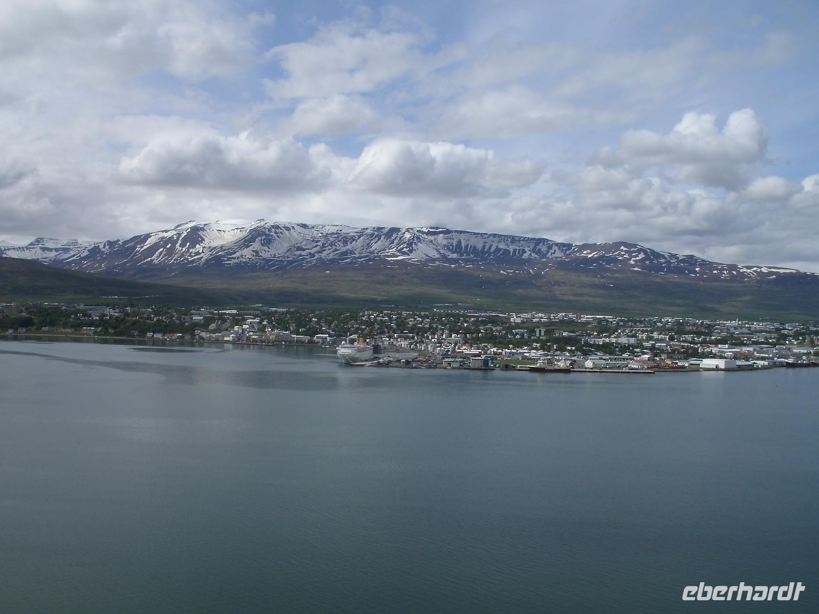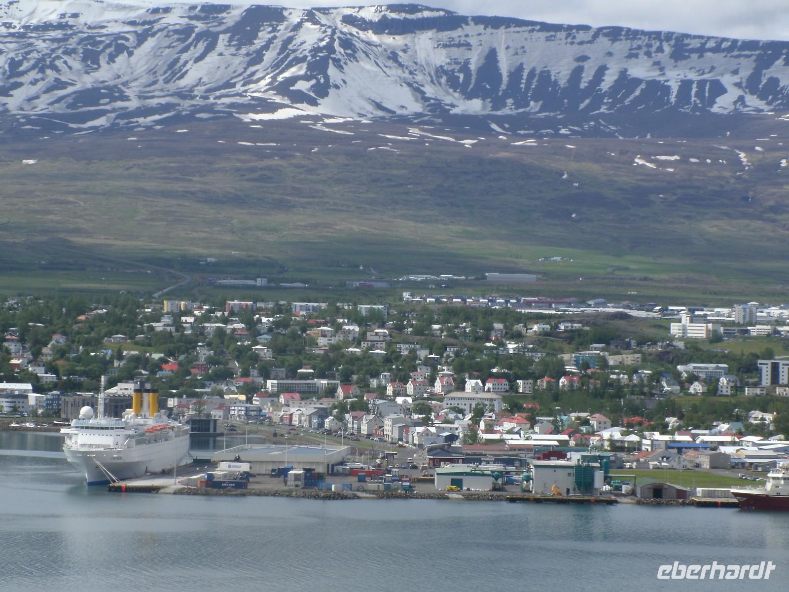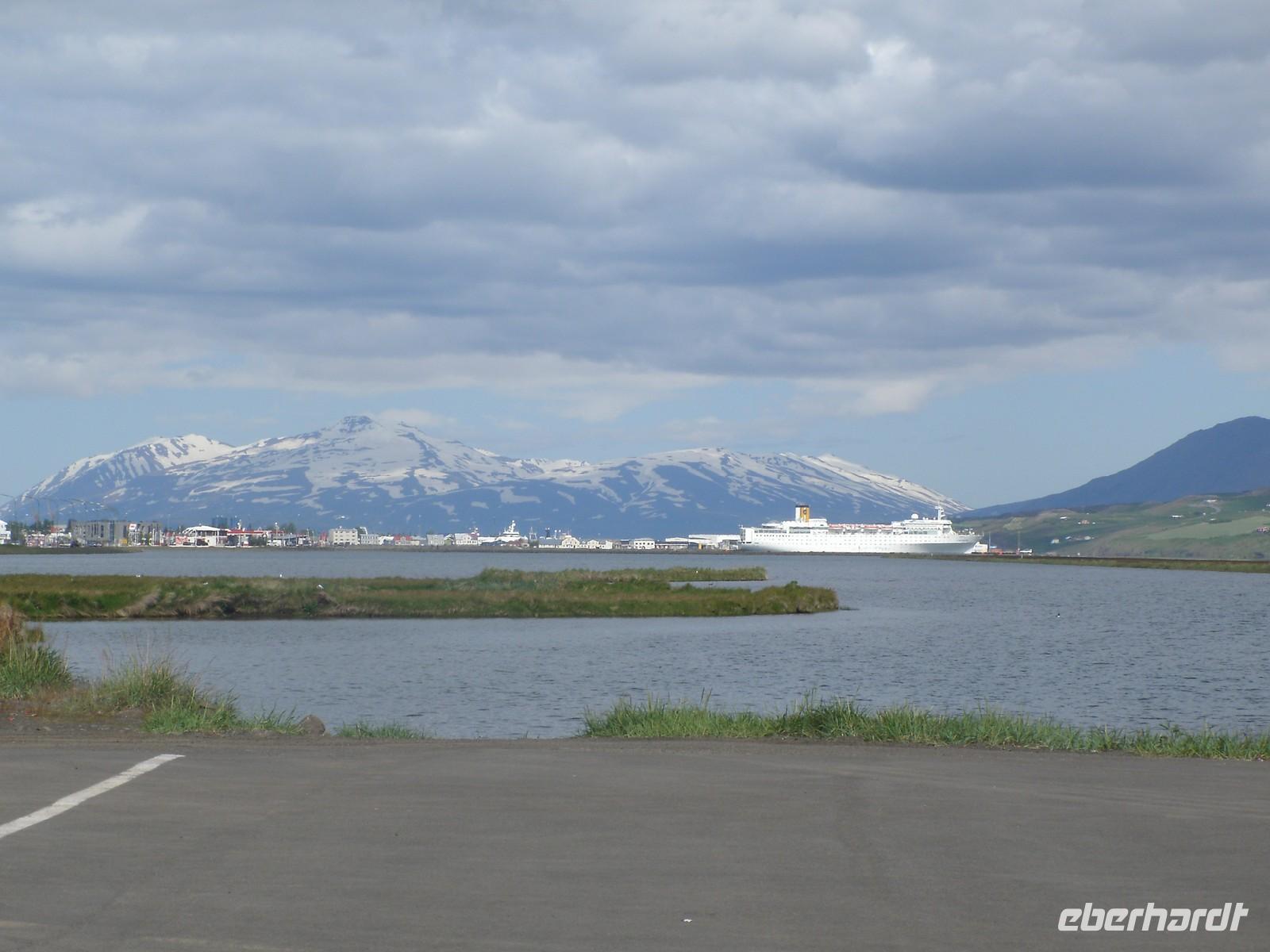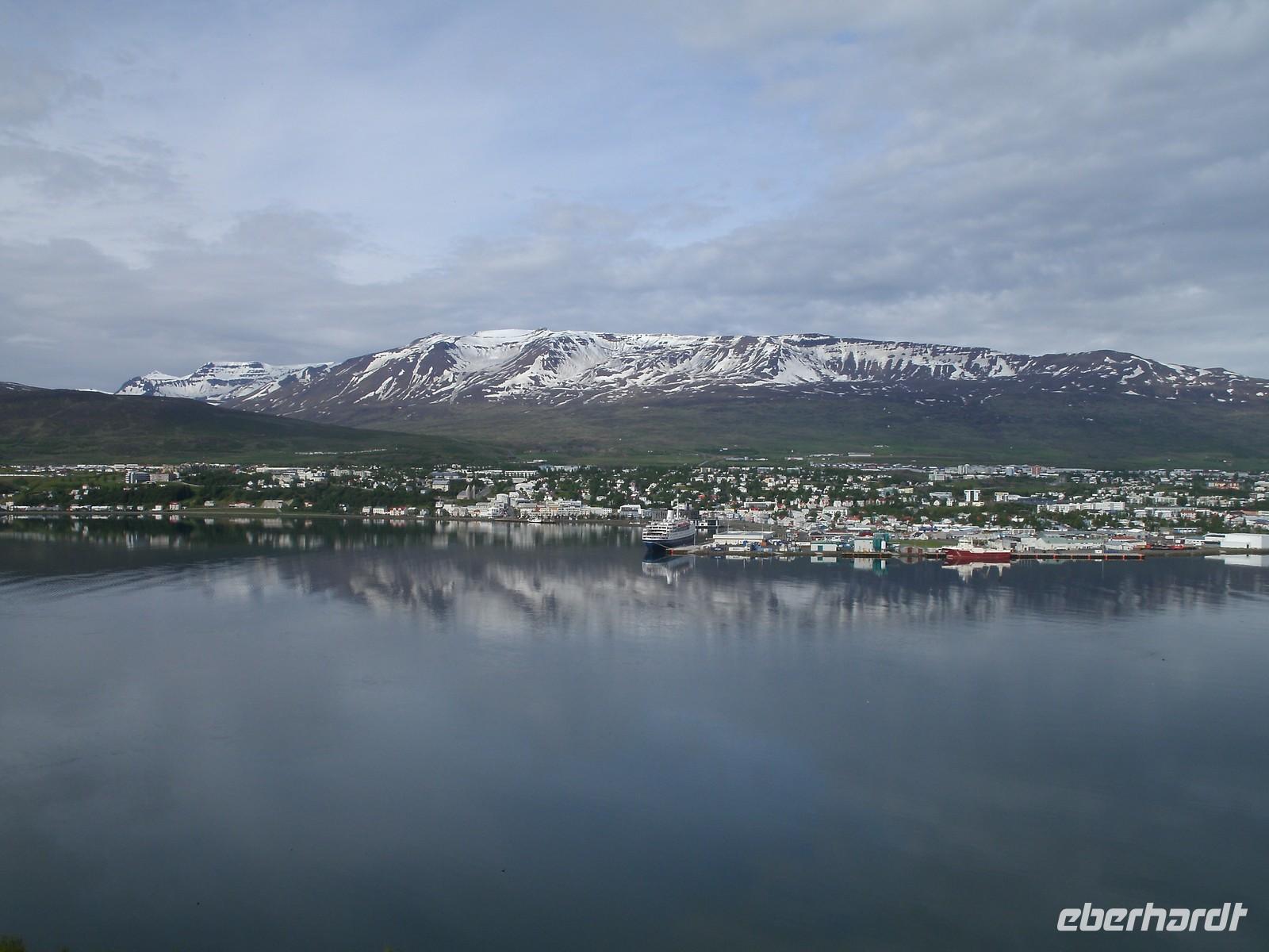 Nachdem alle Gäste pünktlich von Ihrem Haustür-Transfer-Service abgeholt wurden, fuhren wir gemeinsam in einem Reisebus von der Firma Auerbach zum Flughafen von Berlin-Schönefeld. Hier angekommen haben wir noch 6 Gäste empfangen, welche direkt zum Flughafen gebracht wurden. Unser Gepäck konnten wir recht zügig am Schalter abgeben, sodass wir viel Zeit für unser Abendessen im Restaurant Mövenpick hatten. Es wurde extra für unsere Gäste von Eberhardt TRAVEL ein seperater Raum eingerichtet. Hier konnten wir uns den Bauch mit einem großen Teller Spätzle mit Rindergeschnetzeltem vollschlagen. Da es im Flugzeug nur Speisen gegen Gebühr gibt, war dies eine gute Alternative. Nach 20-minütiger Verspätung hob unsere Maschine in Richtung Keflavik, welcher der internationale Flughafen von Island ist, ab. Während des Fluges konnte man die wunderschöne, blutrote Mitternachtssonne beobachten. Ein Erlebnis, welches es nur im Norden gibt. Recht pünktlich in Island gelandet, empfing uns auch schon der örtliche Reiseleiter. Dieser erzählte uns ein wenig von der Umgebung, doch viele waren recht müde, da es für einen Teil der Gruppe bereits in ein paar Stunden wieder los gehen sollte. Eberhardt TRAVEL organisierte einen Inlandsflug von Reykjavik nach Akureyri, damit der Reiseablauf so weiter gehen konnte, wie es im Reiseablauf stand. Im Hotel angekommen sind alle ziemlich schnell in Ihren Zimmern verschwunden.