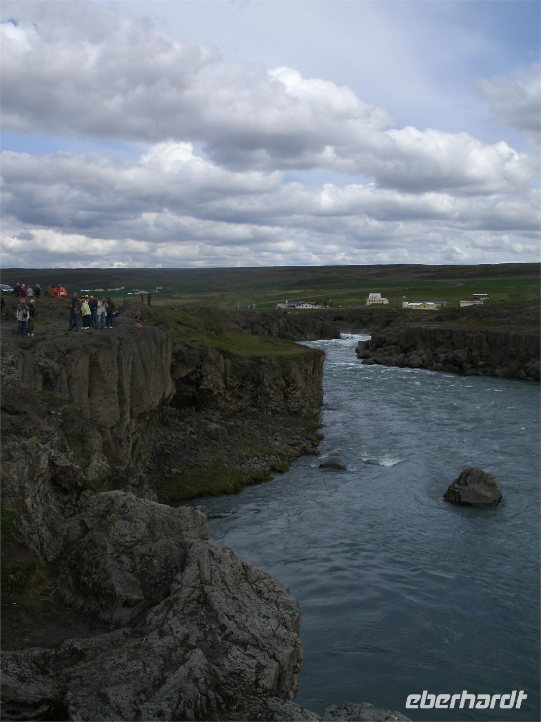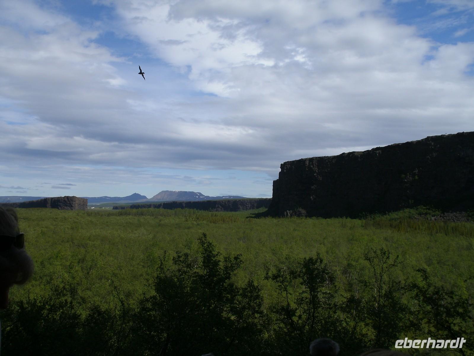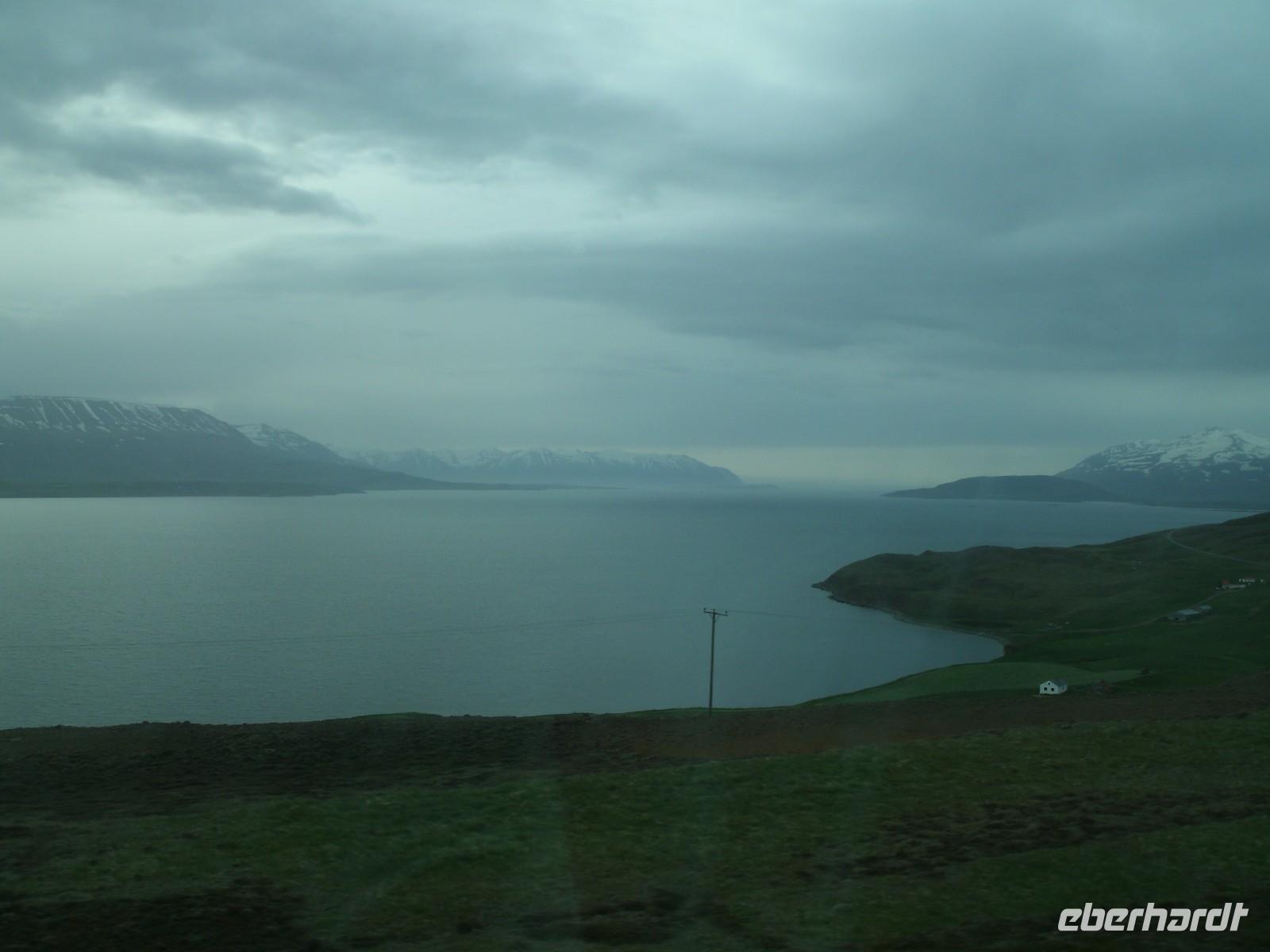 Bei strahlendem Sonnenschein haben wir den Fjord, wo Akureyri liegt, verlassen. Rosa, unsere Reiseleiterin, stellte uns noch Ihre Tochter vor. Sie leitet auch viele Gruppen von Eberhardt TRAVEL. Zunächst fuhren wir in das kleine Fischerstädtchen Húsavík um uns für den Tag mit Verpflegung einzudecken, denn am heutigen Tag bestand wenig bzw. kaum Möglichkeit einer Mittagspause in einem kleinen Restaurant. Weiter fuhren wir in die Felsenschlucht Ásbyrgi. Ein atemberaubender Ausblick belohnte uns auf einer Anhöhe. Die Wanderung tat unseren müden Knochen, nachdem wir oft im Bus gesessen haben, sehr gut. Nach einer kurzen Besichtigung hier, fuhren wir weiter zum Dettifoss. Dieser gewaltige Wasserfall stürzt mit unglaublicher Kraft in den Canyon hinab. Was die ganze Wanderung beschwerte, dass hier heute ein schroffer Wind zog und wir dagegen ankämpfen mussten. Im Anschluss unternahmen wir ein kleines Picknick. Nach einer etwas ruppigen, hollprigen Fahrt zurück, machten wir noch einen kurzen Stopp auf einem Bauernhof, wo wir noch einen Kaffee getrunken haben. Auf der Fahrt zu unserem heutigen Hotel, musste unser Busfahrer große Künste vollbringen, denn wir mussten über eine Passstraße fahren. Der einzige Hacken an der Sache, es war Nebel mit unter 10 m Sicht. Noch dazu kam ein einspuriger Tunnel, welcher ohne jegliche Ampel funktioniert.