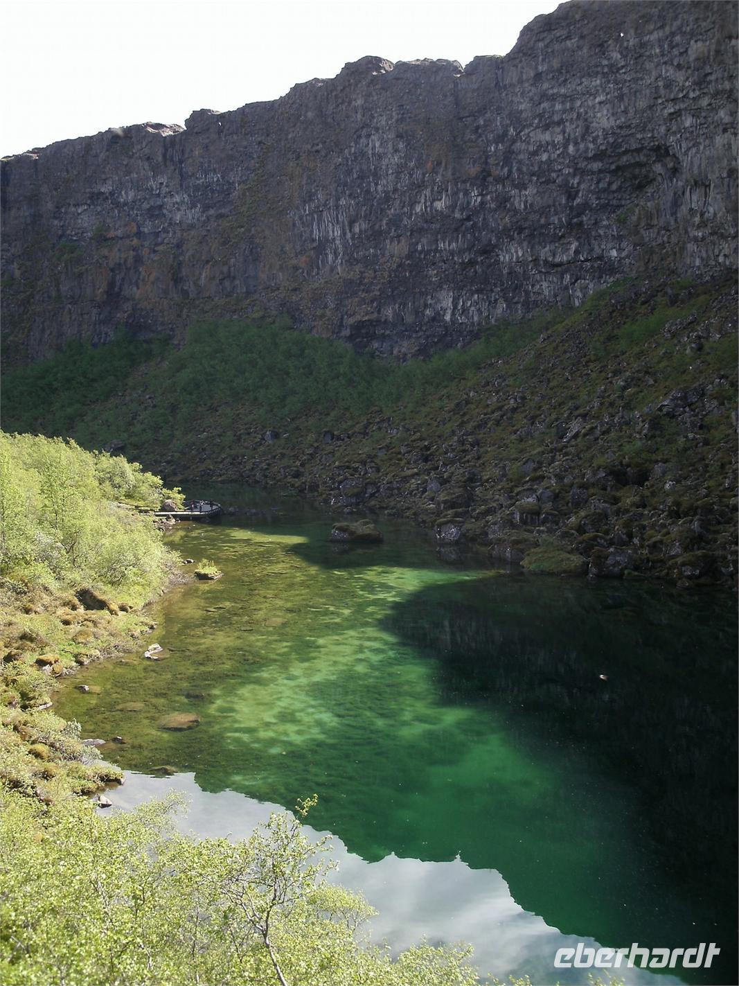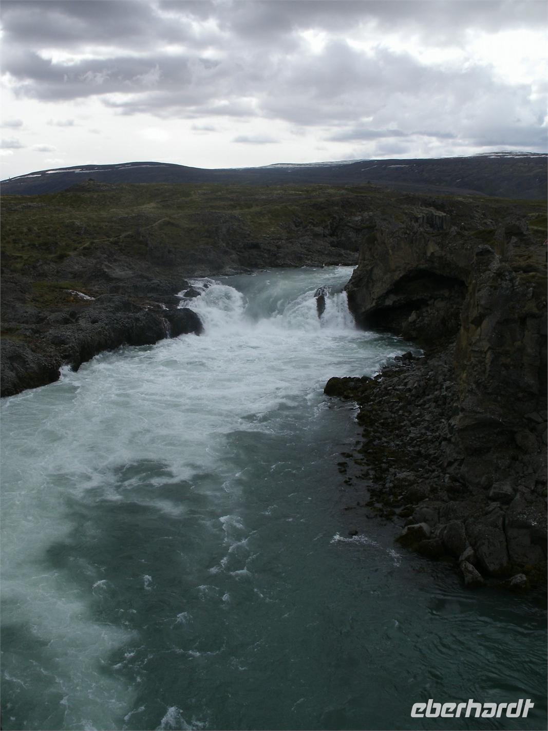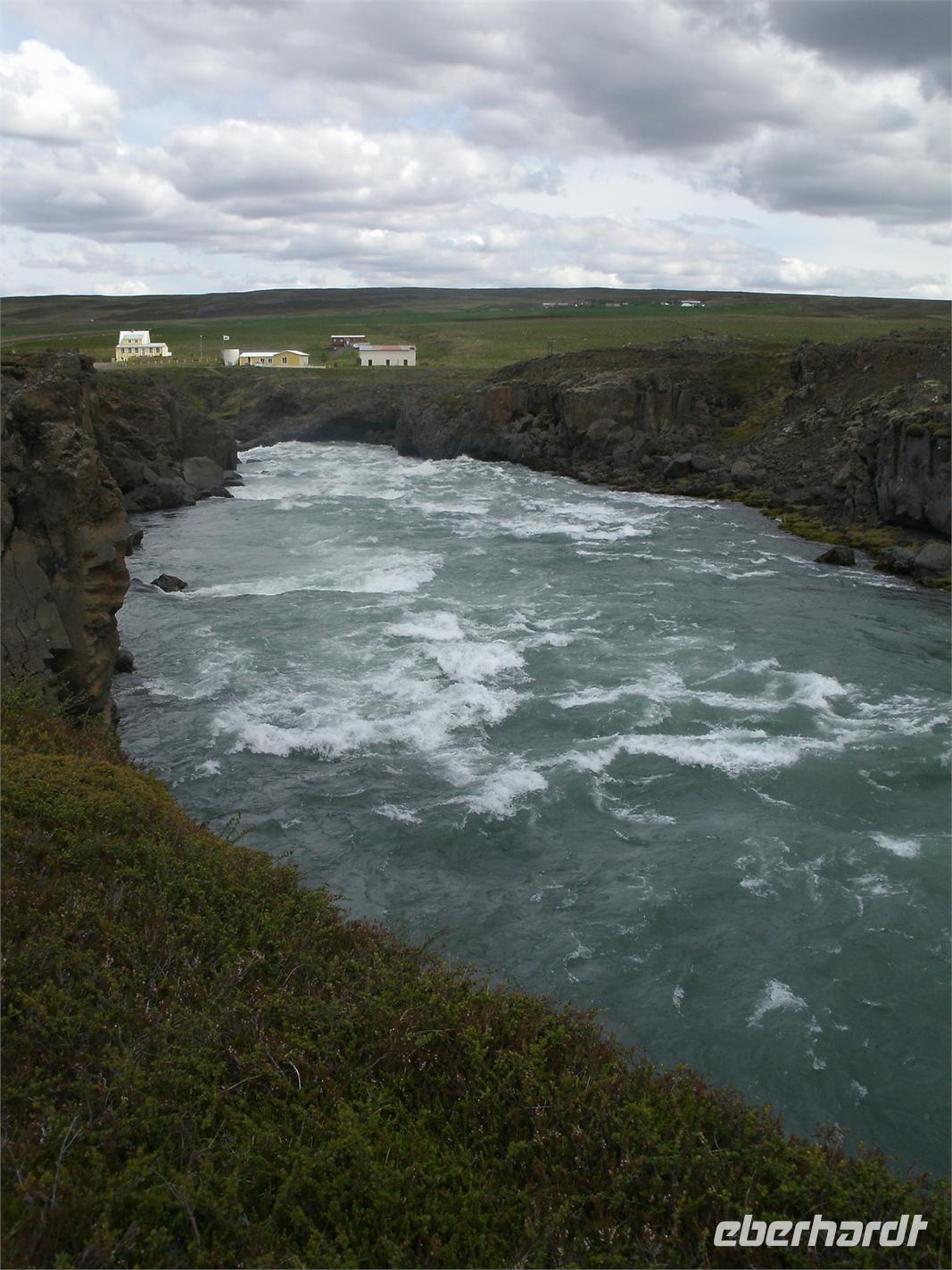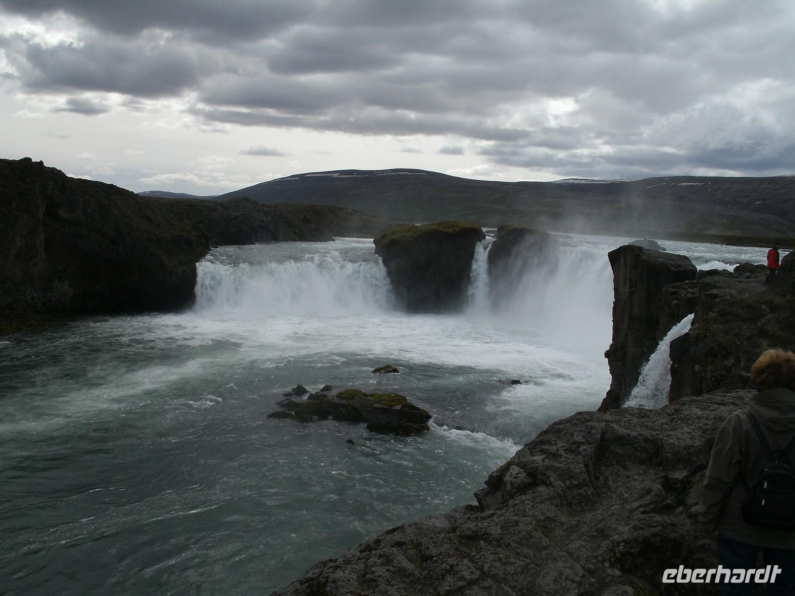 Bei strahlendem Sonnenschein haben wir den Fjord, wo Akureyri liegt, verlassen. Rosa, unsere Reiseleiterin, stellte uns noch Ihre Tochter vor. Sie leitet auch viele Gruppen von Eberhardt TRAVEL. Zunächst fuhren wir in das kleine Fischerstädtchen Húsavík um uns für den Tag mit Verpflegung einzudecken, denn am heutigen Tag bestand wenig bzw. kaum Möglichkeit einer Mittagspause in einem kleinen Restaurant. Weiter fuhren wir in die Felsenschlucht Ásbyrgi. Ein atemberaubender Ausblick belohnte uns auf einer Anhöhe. Die Wanderung tat unseren müden Knochen, nachdem wir oft im Bus gesessen haben, sehr gut. Nach einer kurzen Besichtigung hier, fuhren wir weiter zum Dettifoss. Dieser gewaltige Wasserfall stürzt mit unglaublicher Kraft in den Canyon hinab. Was die ganze Wanderung beschwerte, dass hier heute ein schroffer Wind zog und wir dagegen ankämpfen mussten. Im Anschluss unternahmen wir ein kleines Picknick. Nach einer etwas ruppigen, hollprigen Fahrt zurück, machten wir noch einen kurzen Stopp auf einem Bauernhof, wo wir noch einen Kaffee getrunken haben. Auf der Fahrt zu unserem heutigen Hotel, musste unser Busfahrer große Künste vollbringen, denn wir mussten über eine Passstraße fahren. Der einzige Hacken an der Sache, es war Nebel mit unter 10 m Sicht. Noch dazu kam ein einspuriger Tunnel, welcher ohne jegliche Ampel funktioniert.