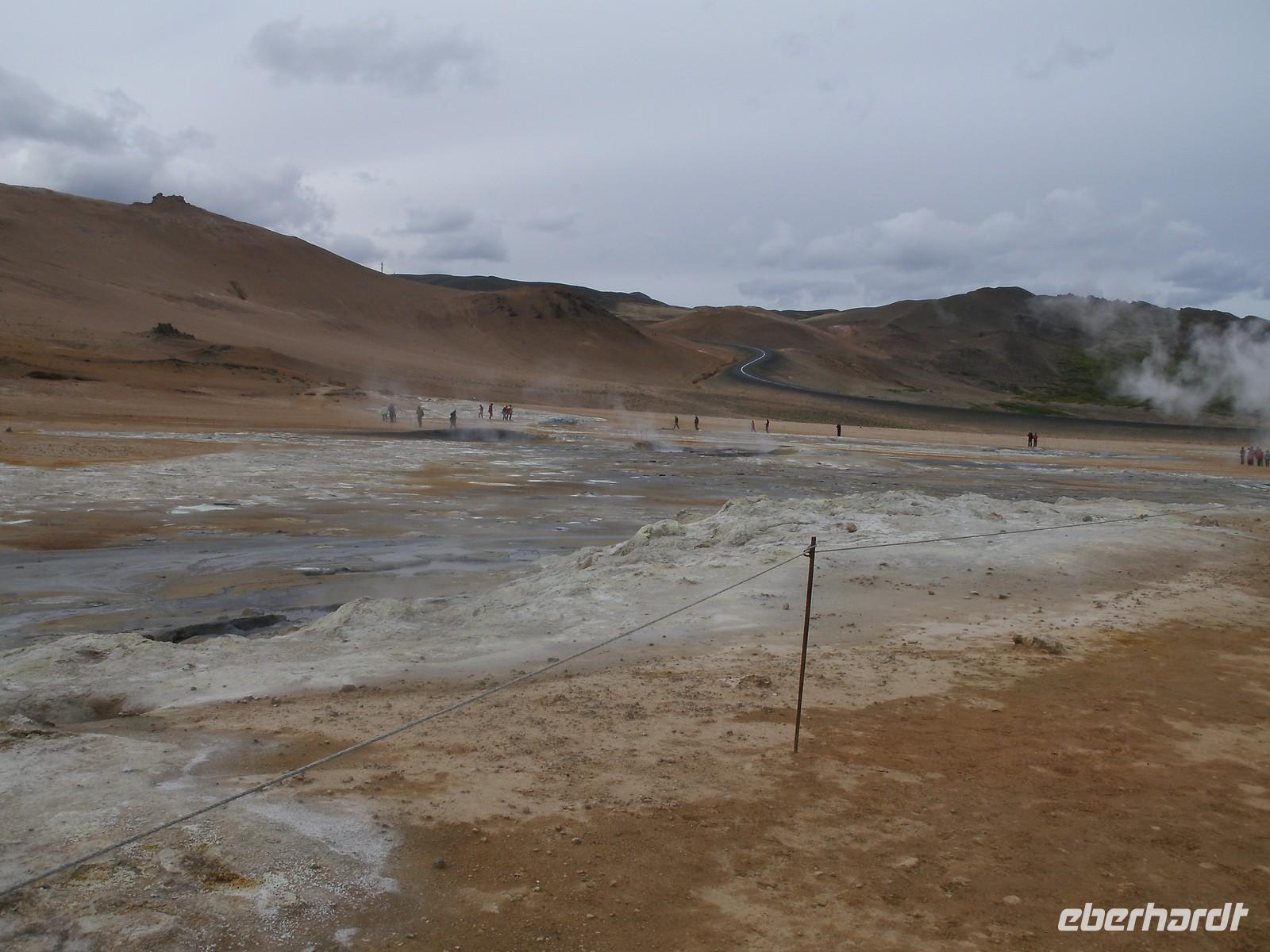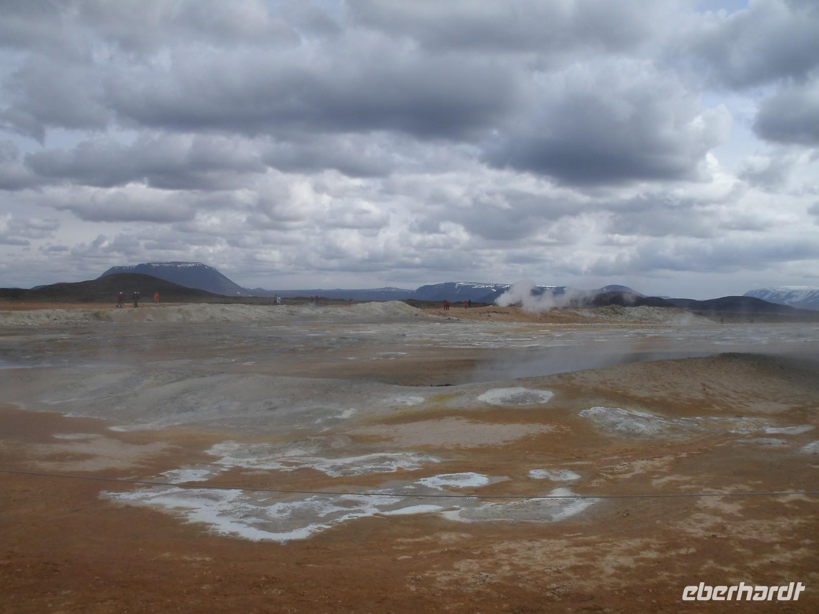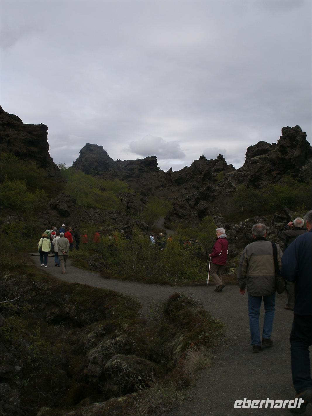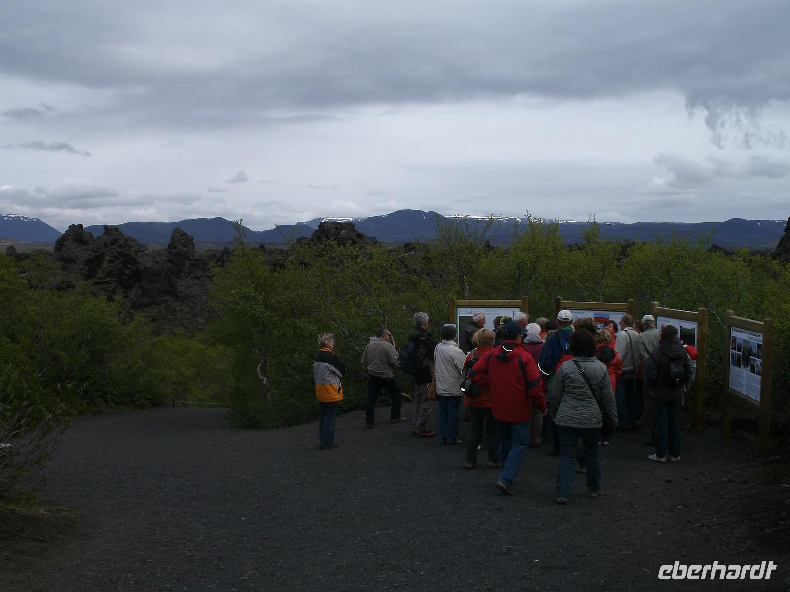 Früh am Morgen hieß es für die 1. Gruppe zeitig aufstehen, denn heute sind wir in 3 Gruppen von Reykjavik nach Akureyri geflogen. Alles verlief reibungslos, bis die letzte Gruppe mit Reisebegleiterin Maxi gegen 11.30 Uhr am Bus in Akureyri angekommen ist und ab da konnte die Reise nun richtig beginnen. Unser heutiger Ausflug führte uns in das Mývatn-Gebiet im Norden der Insel. Zunächst ging es zum imposanten Godafoss - der Götterwasserfall. Bei etwas stürmischen Wetter haben wir Ihn trotzdem von allen Seiten bestaunt. Im Anschluss sind wir in das Hochtemperaturengebiet Námaskard gefahren. Hier erlebten wir kochende Schlammquellen, die vermuten ließen, wie heiß es in der Erde ist. Am Nachmittag unternahmen wir eine kleine Wanderung durch das Lava-Labyrinth in Dimmuborgir. Die versteinerte Lava sah aus wie kleine Trolle. Am Ende des Tages haben wir noch eine kleine Wanderung entlang des Mückensees unternommen. Den Abend haben wir bei einem reichhaltigen Abendessen ausklingen lassen.
