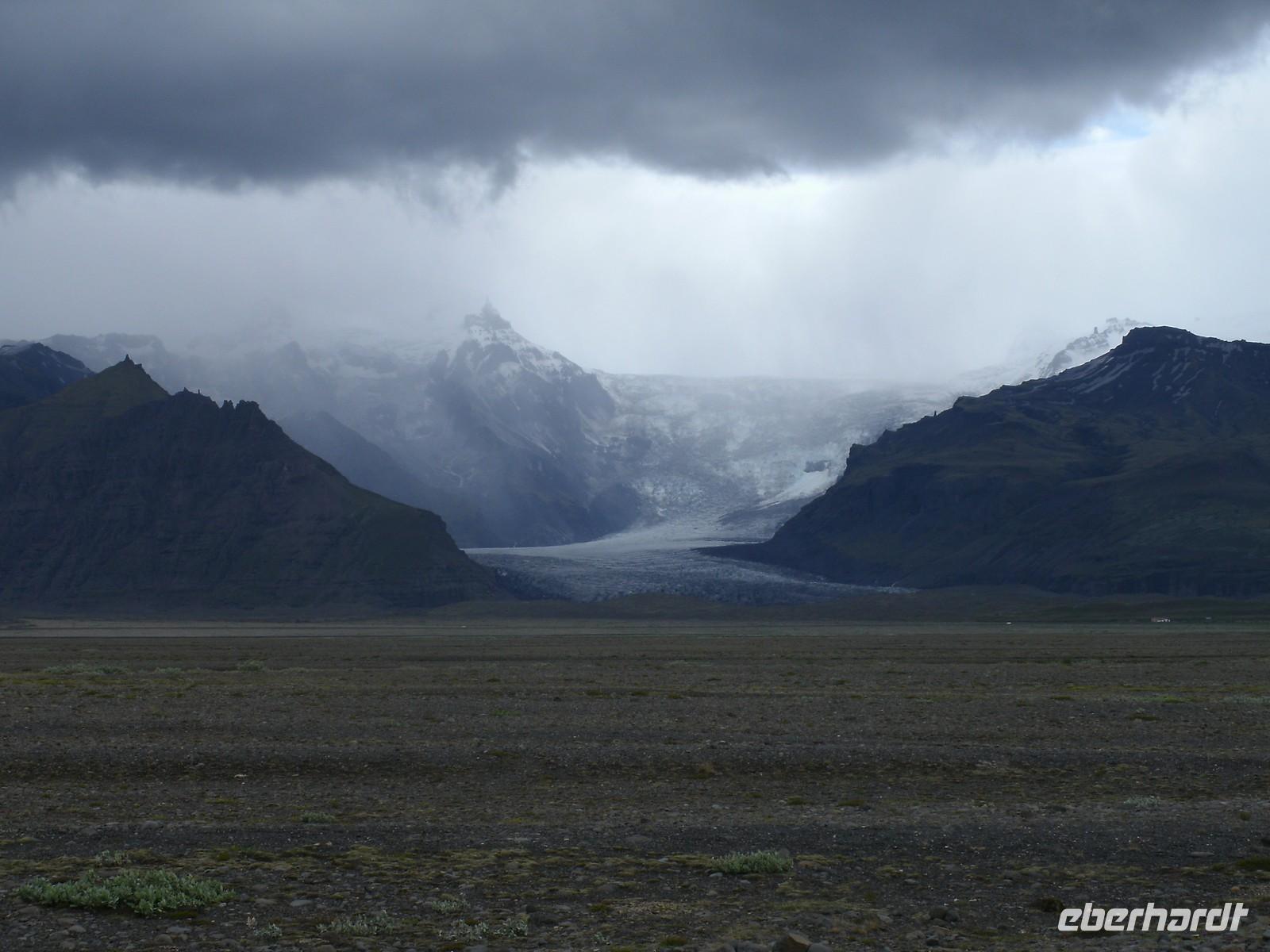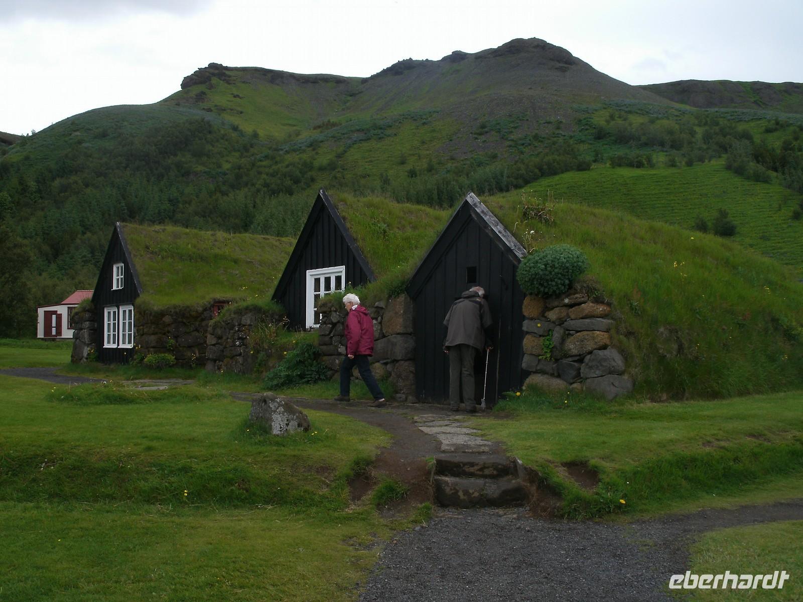 Vorbei an den zahlreichen Ausläufern des Gletschers Vatnajökull erreichten wir die Gletscherlagune Jökulsárlón. Bei strömenden Regen unternahmen wir eine eindrucksvolle Fahrt mit einem Amphibien-Fahrzeug durch die imposanten Eisberge. Trotz Regen waren alle Gäste begeistert von dieser Fahrt und empfanden es als Höhepunkt der gesamten Reise. Im Anschluss fuhren wir zum Nationalpark Skaftafell, wo wir eine kleine Wanderung unternahmen. Ein weiterer Wasserfall - Svartifoss - überraschte uns hier mit seiner Pracht. Hier traf die Gruppe auch wieder auf Reisebegleiterin Maxi. Unsere Fahrt führte uns durch die Sand- und Lavawüste bis nach Vík. Bevor wir im Hotel ankamen, besuchten wir ein Schafswollgeschäft. Hier konnte man Schafswolle in hoher Qualität ergattern. Direkt gegenüber war dann auch schon unser Hotel, wo wir den Abend mit Filmen über die Vulkanausbrüche auf Island ausklingen liessen.
