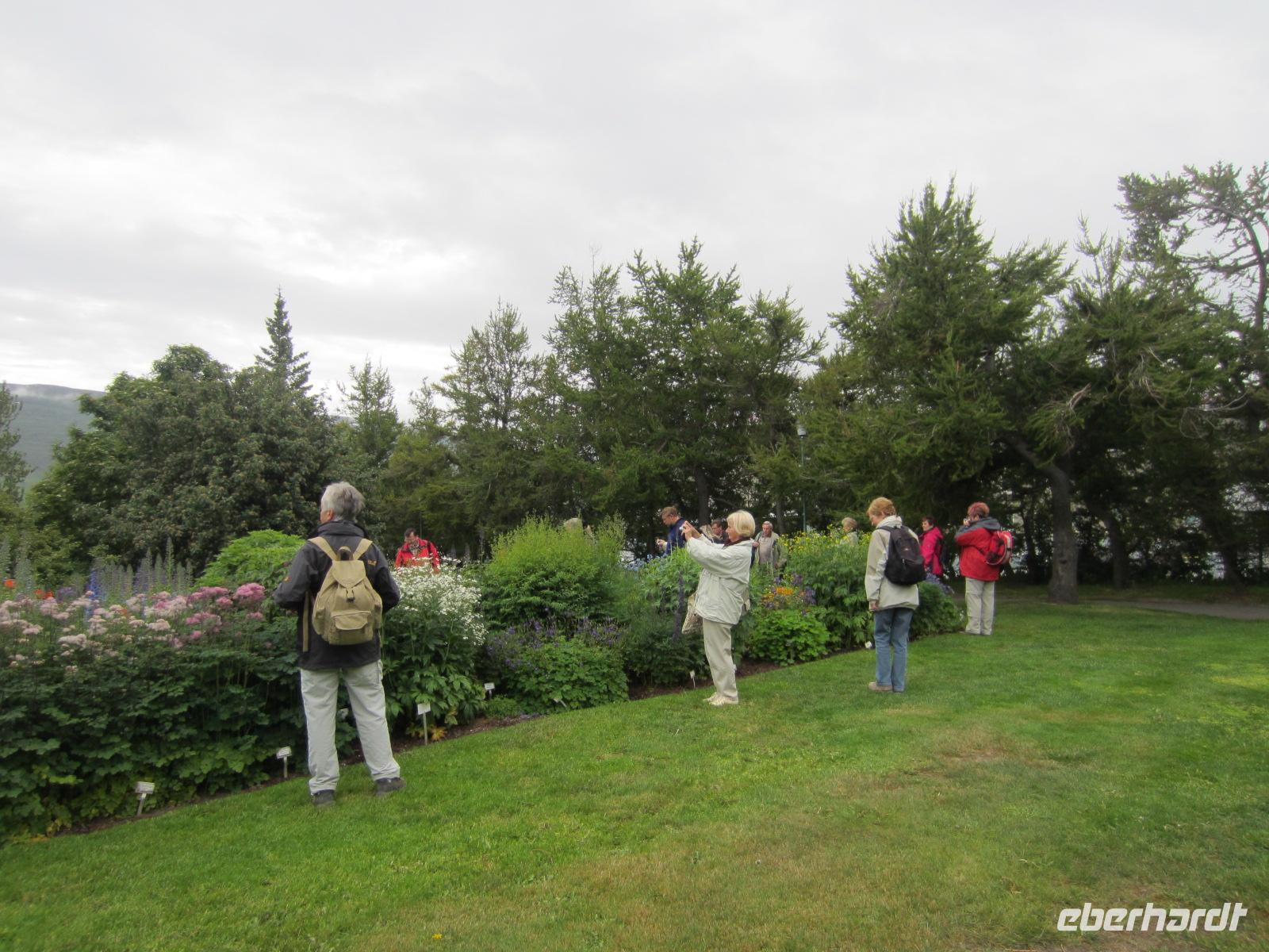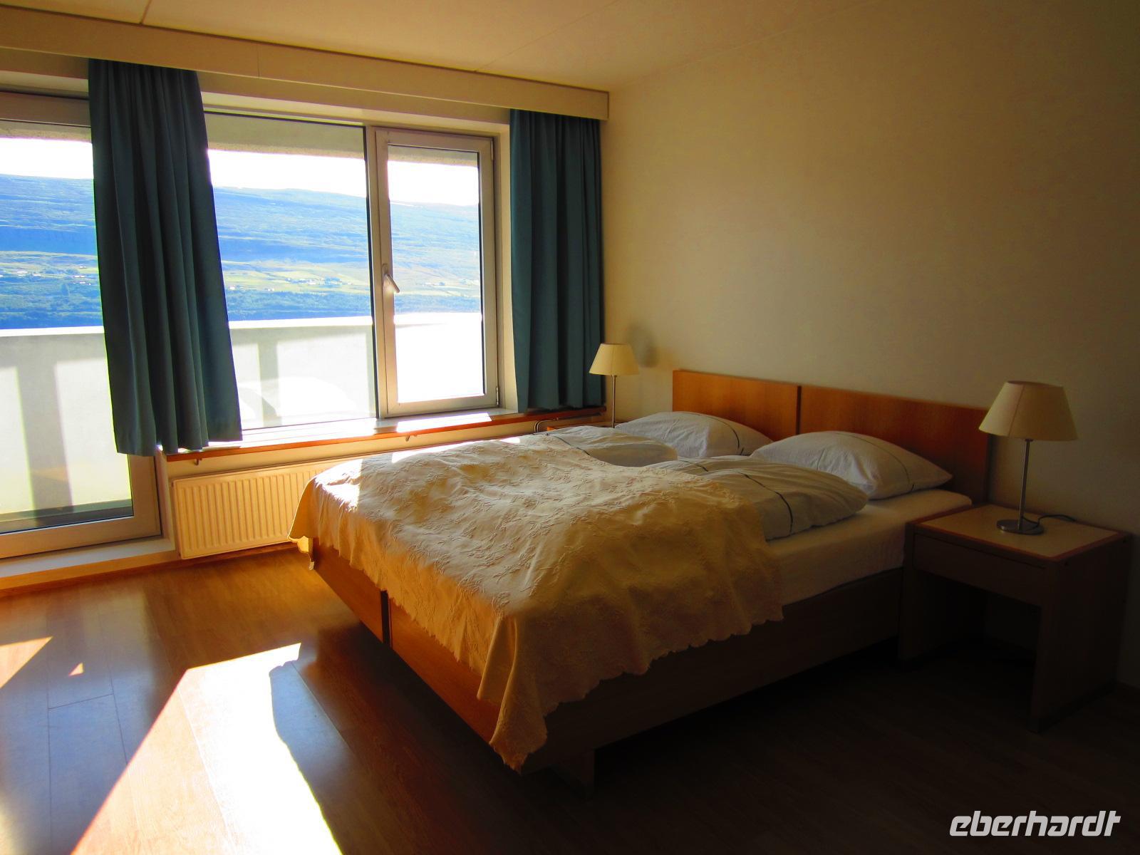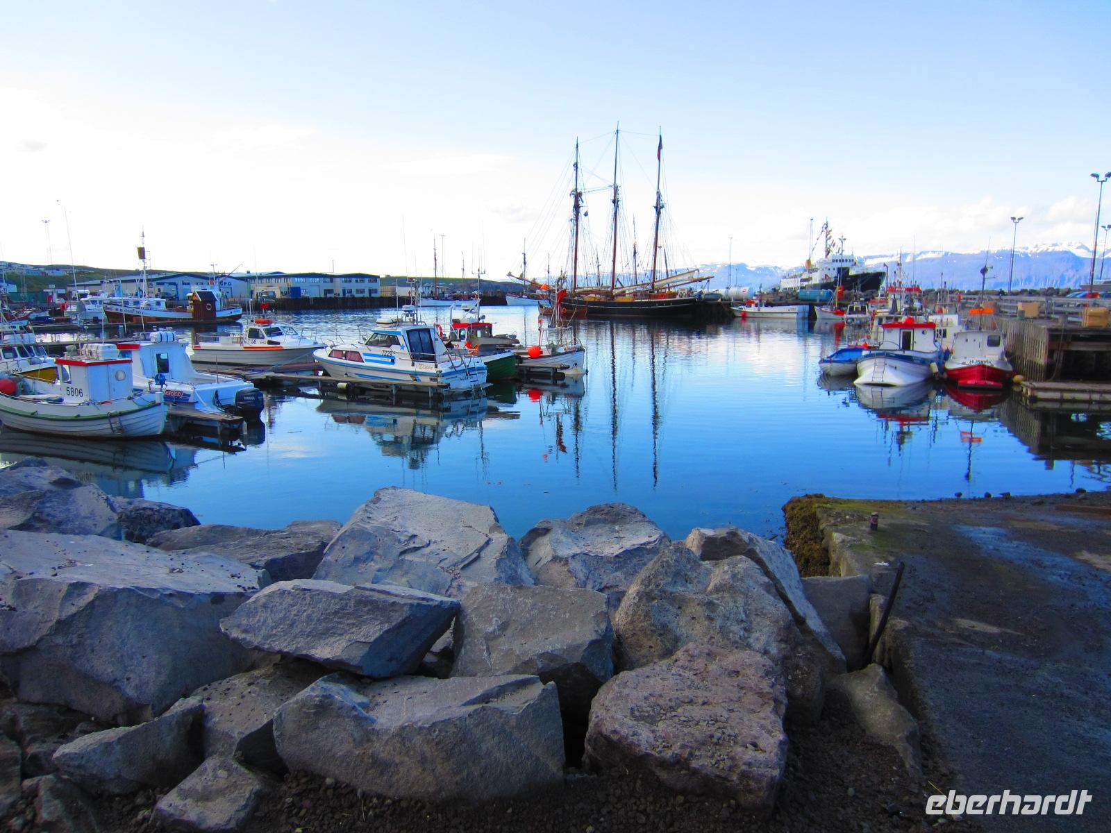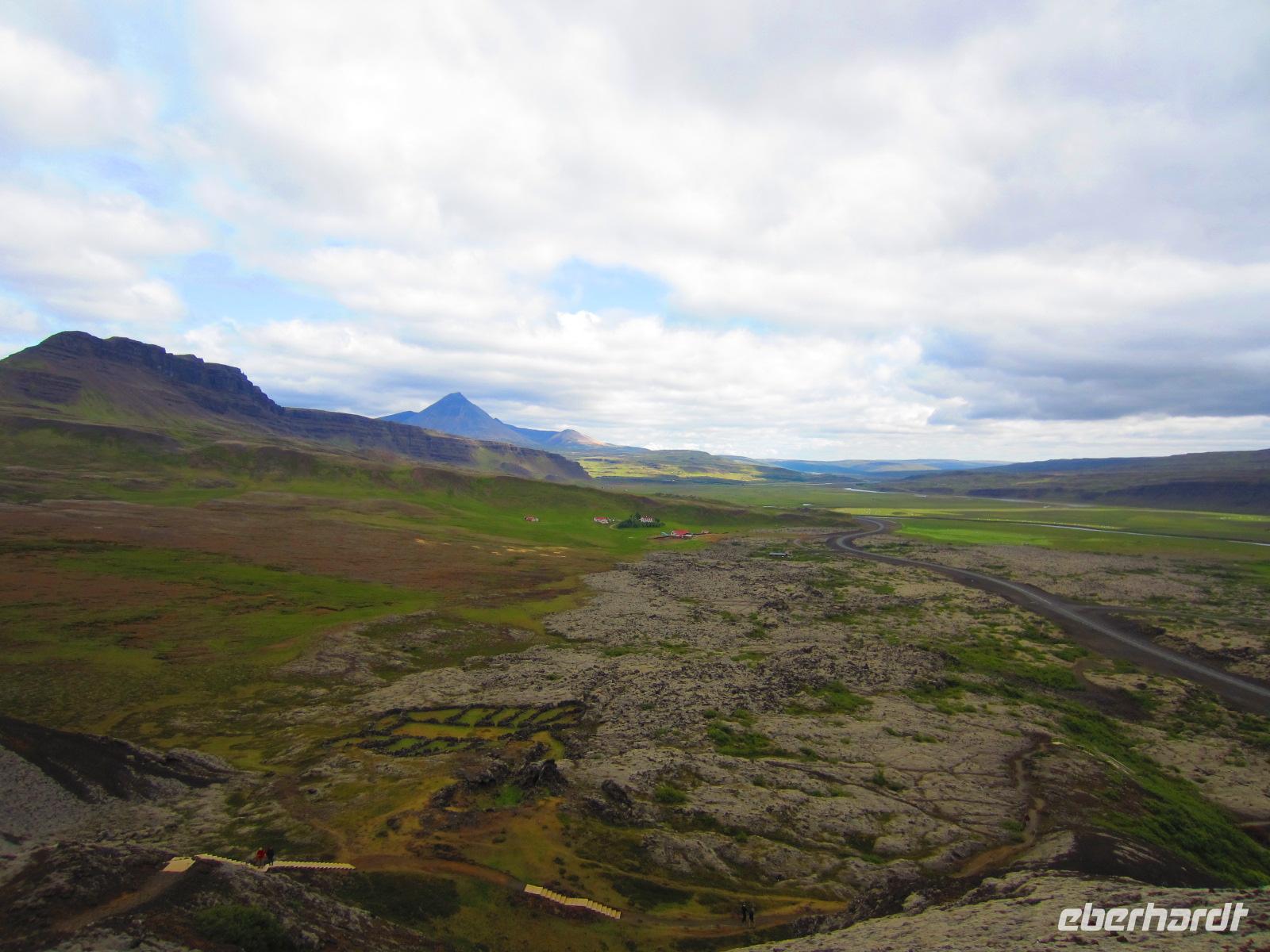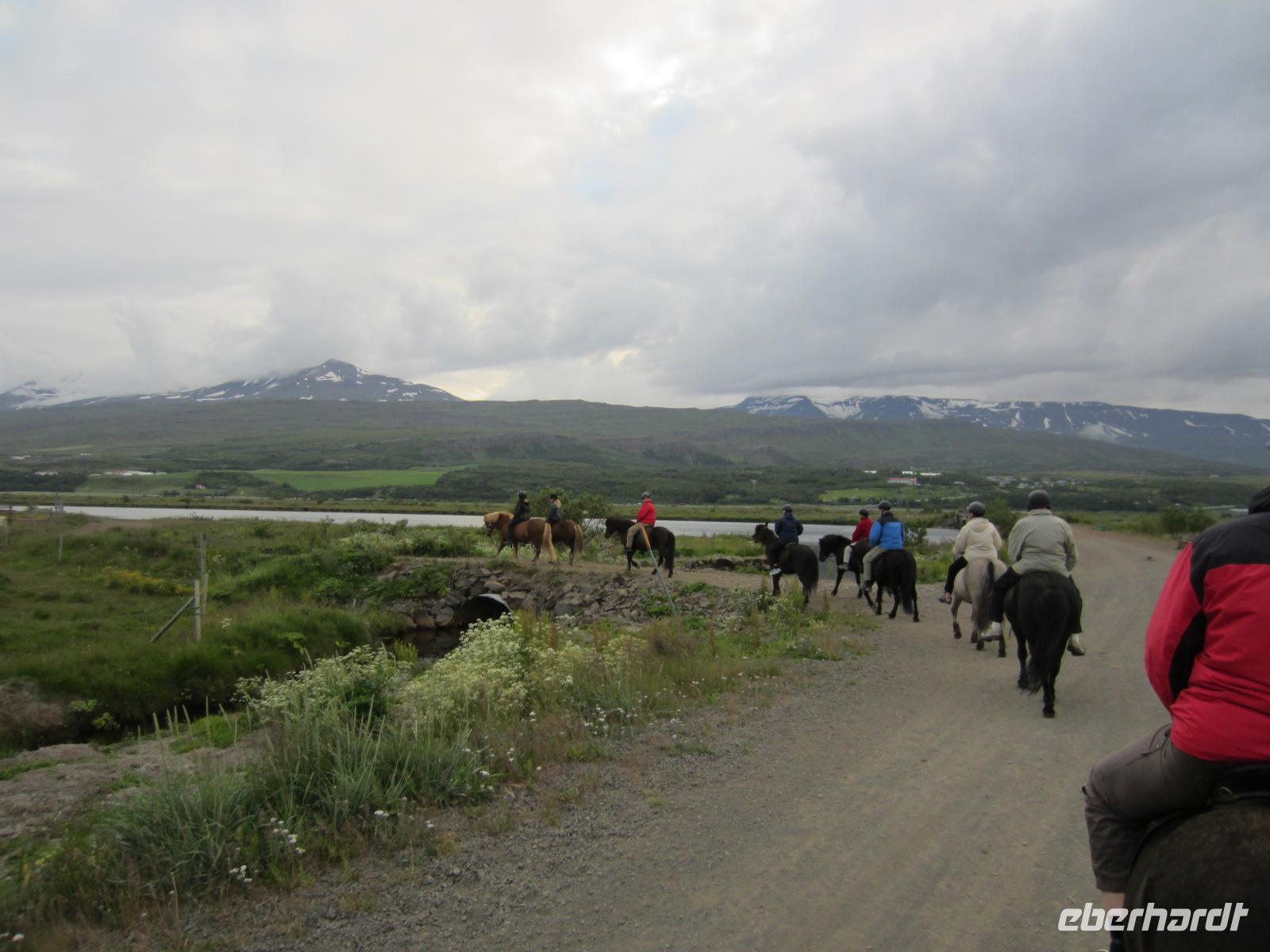 Heute hieß es Koffer packen und ab in den Norden der Insel. Am Morgen lernten wir unseren netten Fahrer Münte kennen, welcher von uns nur liebevoll Müntefering genannt wurde. Mit dem Bus traten wir nun den langen Weg nach Akureyri an. Am Krater Grábrók unternahmen wir eine kleine Wanderung bis ganz noch oben. Von dort bot sich uns ein wundervoller Ausblick auf die umliegende karge, aber beeindrucke Landschaft. Hier konnte man den Alltag komplett vergessen und in die ewigen Weiten eintauchen. Am Nachmittag erreichten wir einen Reiterhof mitten auf dem Land. Die hier ansässige Familie hegt eine lange Tradition in der Zucht von Islandpferden. Praktikantin Theresa aus Deutschland erklärte uns alles zur Geschichte des Hofes, zur Haltung dieser speziellen Pferderasse und über das Leben auf dem Gestüt. Bei einer Vorführung konnten wir uns die 5 Gangarten des Islandpferdes erleben. Ganz speziell sind hier auf der Insel der Tölt und der Pass. Im Stall konnten wir die Pferde mit ihren verschiedenen Fellfarben bewundern und auch streicheln. Die Oma hatte noch Kuchen für uns gebacken und so erhielten wir einen wunderbaren Einblick in das Landleben. Am Abend erreichten wir unser Tagesziel Akureyri. Nach einer orientierenden Rundfahrt in der Stadt, welche fast am Polarkreis liegt, bezogen wir das Edda Hotel. Die Edda Hotels sind typische Unterkünfte, welche im Winter als Internat genutzt werden. Ein wunderbar reichliches Buffet wartete schon auf uns und hinterher noch ein fantastischer Nachtisch.