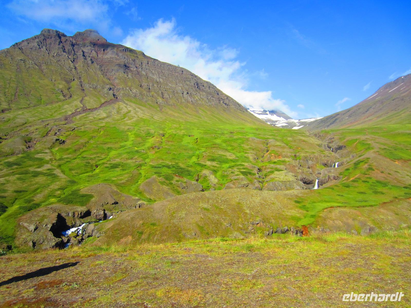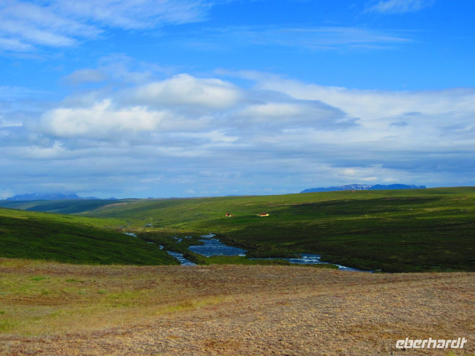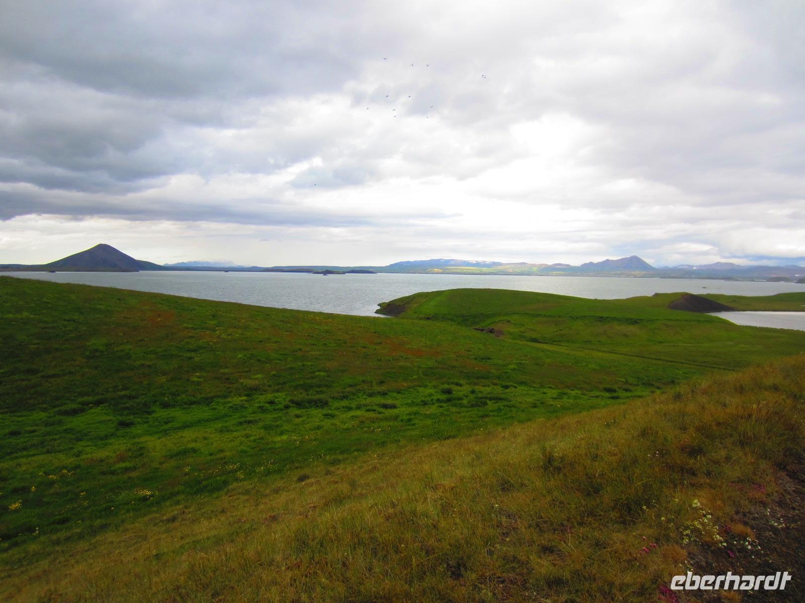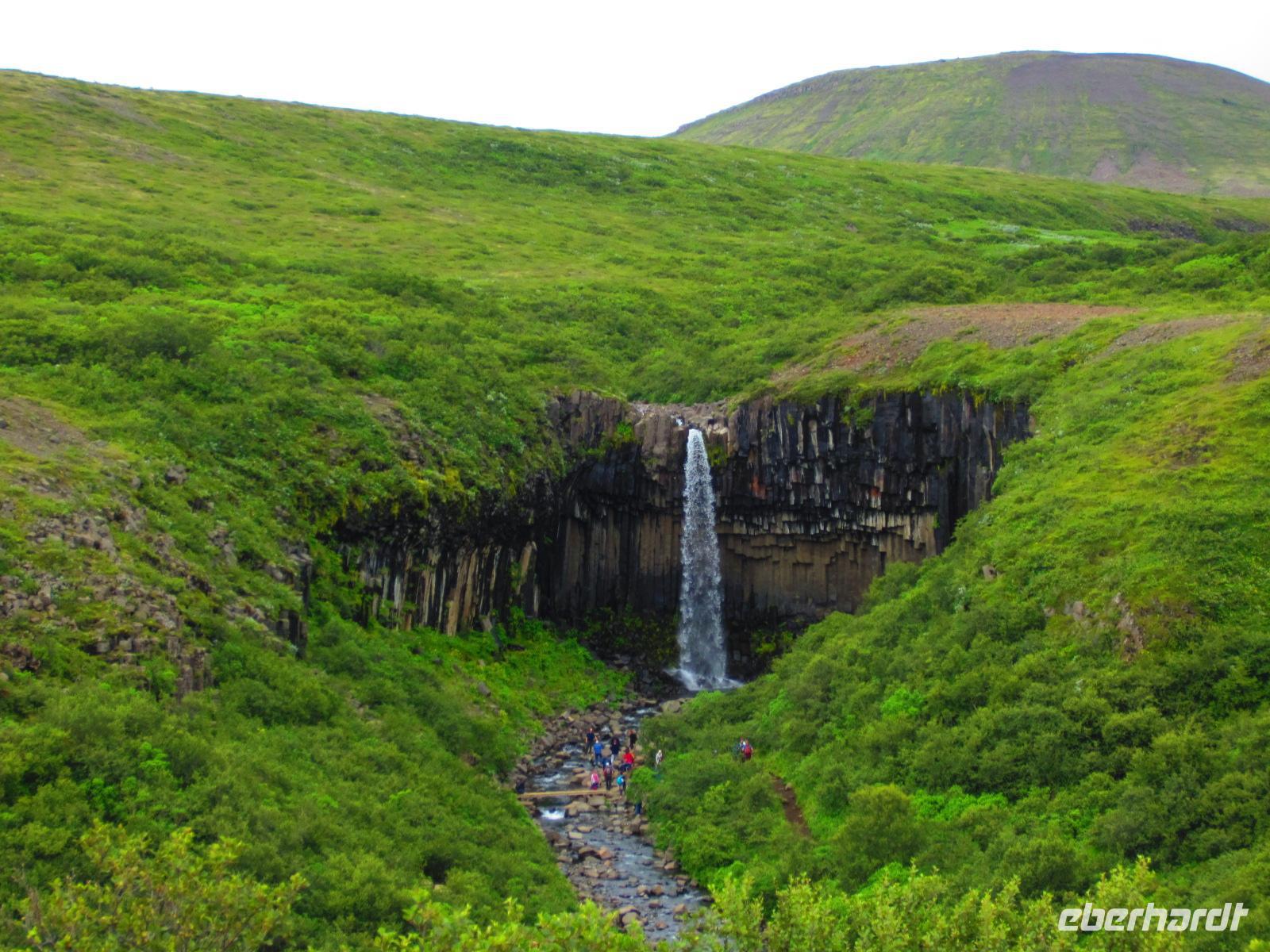 Ein riesiger Krater zog sich mitten durch die Landschaft. Da konnten wir nur staunen und einmal auf 2 Kontinenten zugleich stehen. Im Lavalabyrinth boten sich uns bei einem kurzen Spaziergang allerhand seltsame Felsformationen, hinter denen sich sicherlich der ein oder andere Troll versteckt hielt. Zum Abschluss dieses wundervollen Tages unternahmen wir noch eine kleine Wanderung auf die Pseudokrater rund um den Myvatn, welche herrlich begrünt waren. Wir hatten uns das feine Abendessen redlich verdient. Doch der Tag neigte sich noch nicht dem Ende zu, denn einige von uns brachen noch zu einem fakultativen Reitausflug auf. Unter hellem Himmel sattelten wir unsere Islandpferdchen, rüsteten uns mit Helm und Handschuhen aus und auf ging es durch das grüne Tal. Es war ein einmaliger Ausflug in die Natur. Ringsherum hohe Berge und man sagt ja: “Auf dem Rücken der Pferde liegt das Glück der Erde“. Sogar durch einen Fluss sind wir geritten und so konnten wir den Abend noch herrlich beenden.