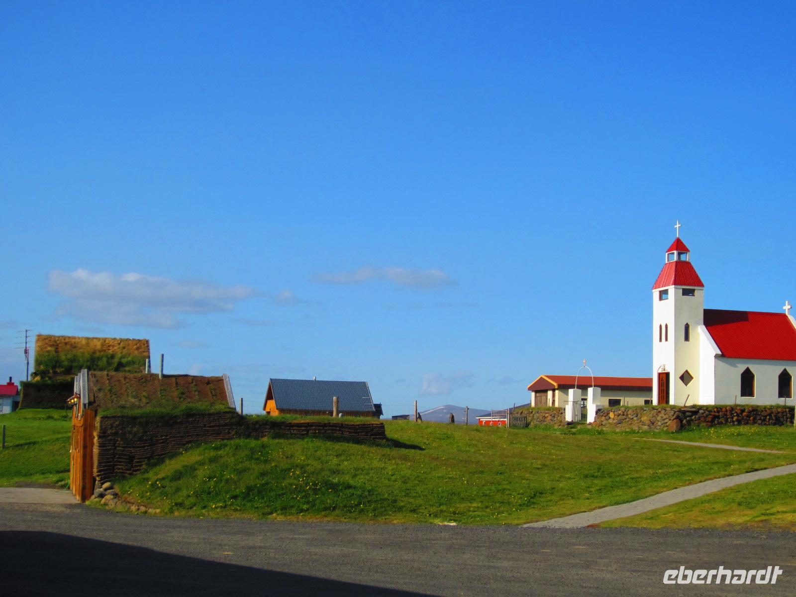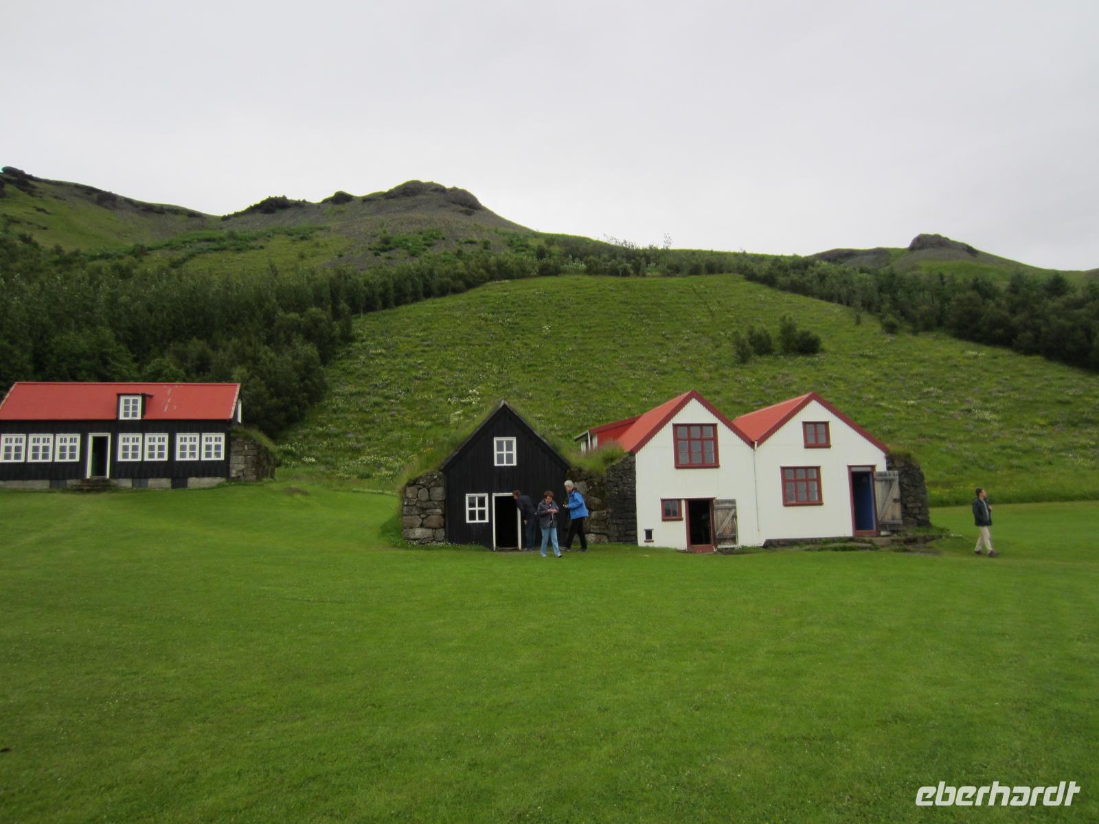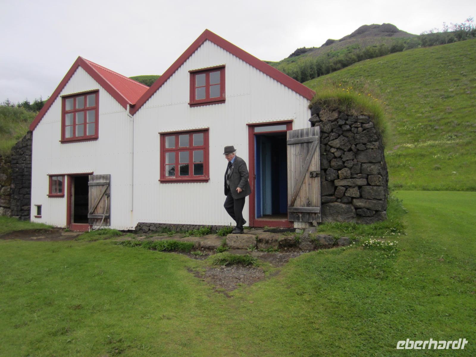 Da am heutigen Tag das Wetter eher etwas ungemütlich war, kam es uns gerade recht, dass wir das Heimatmuseum Skogar besuchten. Auch diese Ausstellung besteht aus gesammelten Werken von einem derzeit 90 Jahre alten Mann, welcher hier sein Lebenswerk präsentiert. Wir konnten viel Spannendes zur Isländischen Geschichte erfahren und mal einen Blick in ein Torfhaus werfen. Früher war Island ein sehr armes Land gewesen und die Ausstattung der Häuse war sehr einfach und auch die Kleidung und Ausrüstung der Menschen. In der Kirche des Freilichtmuseums trafen