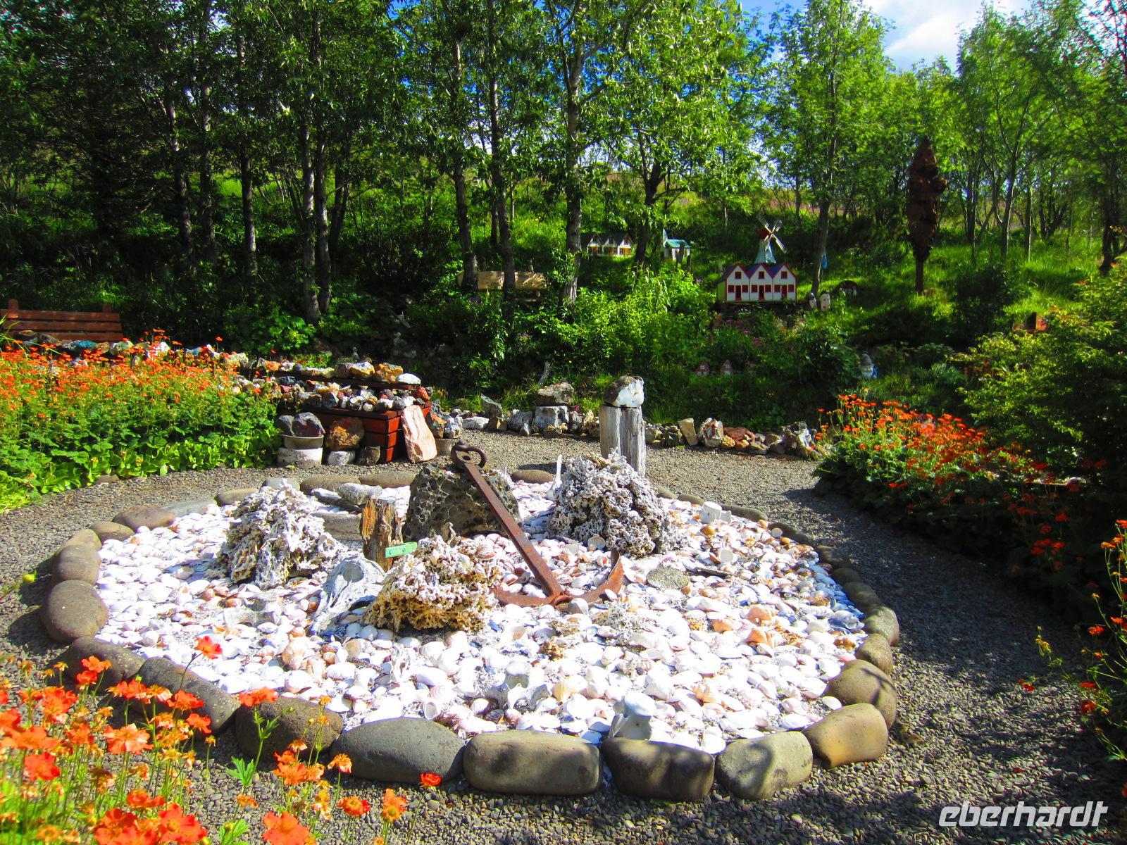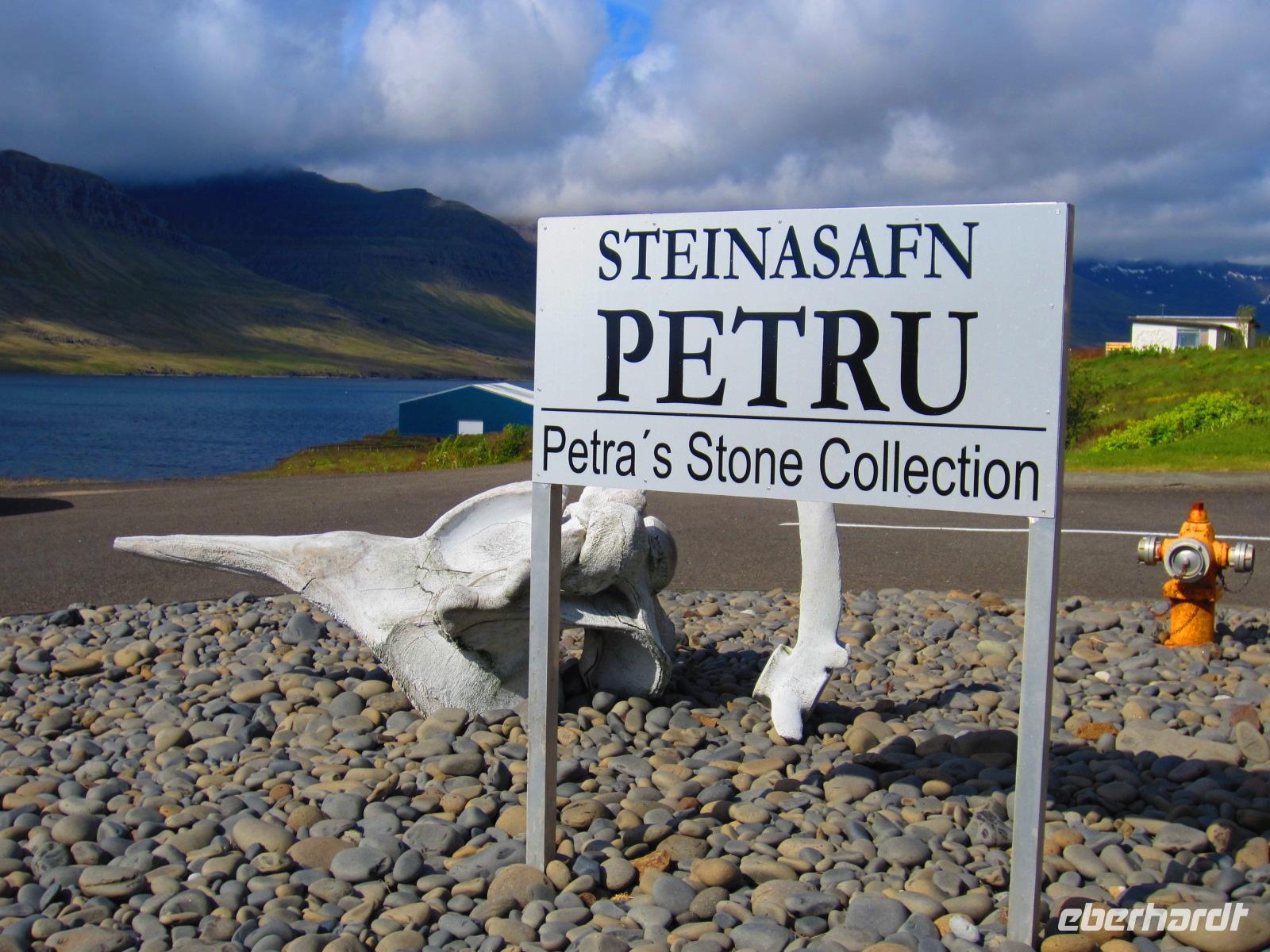 Am Morgen verließen wir Egilstadir und begaben uns auf den Weg entlang der Ostfjorde nach Höfn. Nach einer Stunde erreichten Petras Steinhaus. Petra, eine steinalte Isländerin, hat ihr Leben lang Steine aller Art und andere Kuriositäten gesammelt. Eine beachtliche Auswahl an isländischen Besonderheiten ist hierbei zusammengekommen. Wir nutzten die Zeit, um das ganze Haus inklusive Schlafzimmer und Garten in Augenschein zu nehmen und staunten nicht schlecht als wir erfuhren, dass alle Steine aus Island stammen.