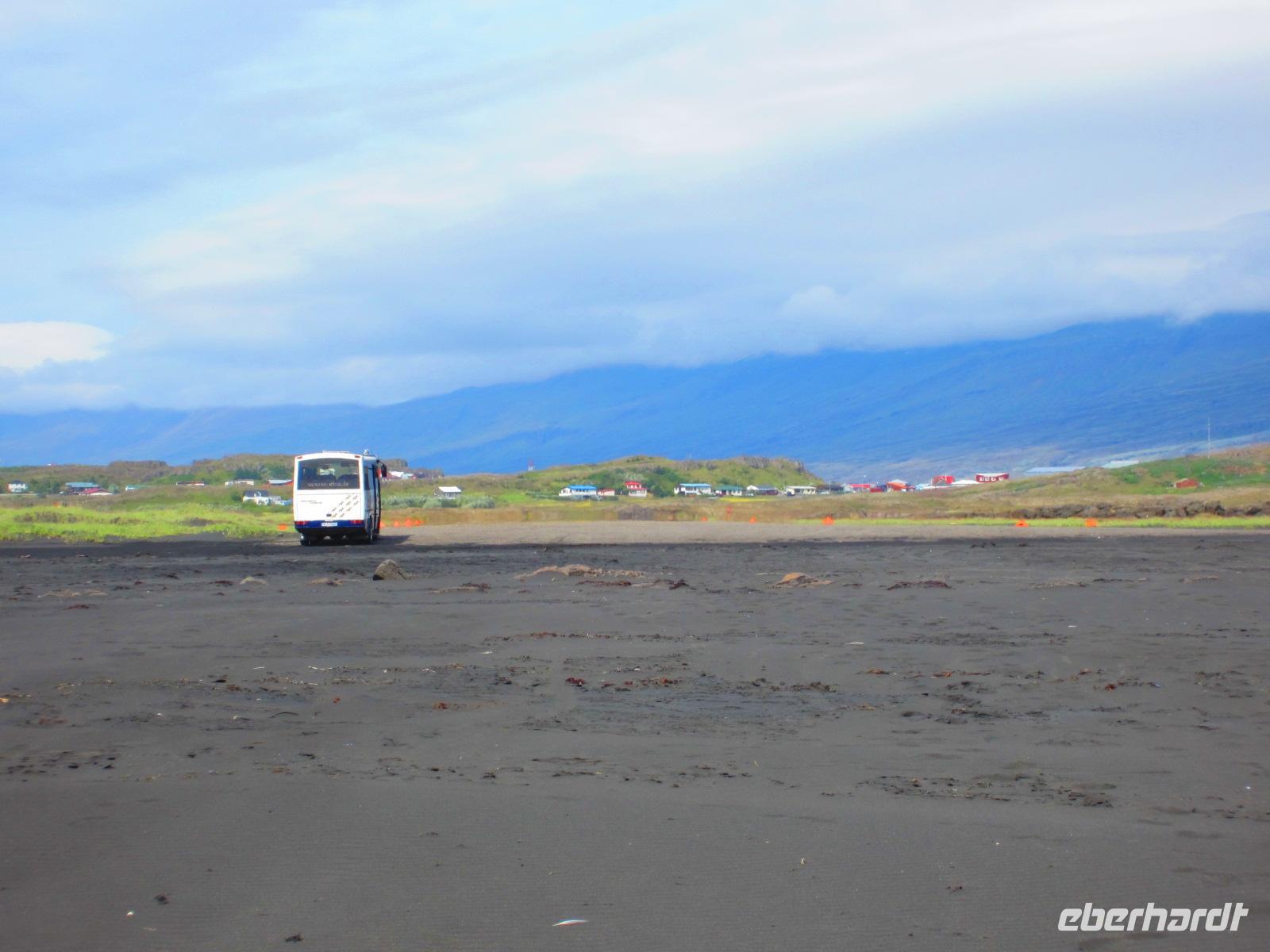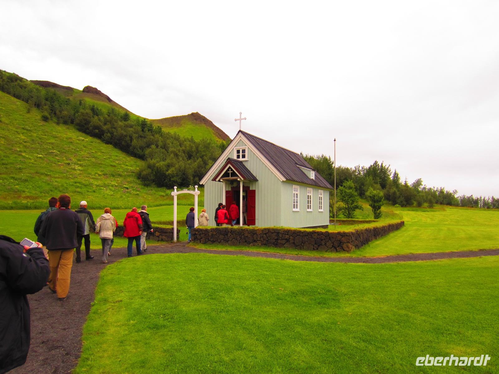 wir sogar auf den Besitzer. Er spielte auf seiner Orgel für uns Melodien bekannter deutscher Lieder, erzählte auch etwas über seine Kirche und lud uns ein, mehr vom Museum zu erkunden. Am Wasserfall Skogarfoss kamen wir alle zusammen und tranken einen kräftigen Schluck Brenevin auf unsere herrliche gemeinsame Reise. Eine weitere Überraschung folgte sogleich. Im letzten Jahr hat der nahezu unaussprechliche Eyjafjallajökull eine Menge Probleme in der ganzen Welt bereitet. Ein Bauer, welcher direkt am Fuße des Gletschers lebt, hat einen Film über seine Erlebnisse gedreht und zeigt diesen in einer kleinen Ausstellung. Er selbst war auch vor Ort und erzählte uns über den Ausbruch und welche fatalen Folgen dieser für seine Familie und seinen Hof hatte. Am Nachmittag erreichten wir erneut Reykjavik, wo wir die Perle besuchten. Von dort aus hatten wir einen fantastischen Blick über die Hauptstadt. So schloss sich für uns der Kreis, denn wir waren wieder am Ausgangsort unserer Reise rund um Island angelangt. Den Abend beschlossen wir bei einem leckeren Fischbuffet in einem örtlichen Restaurant. Auch mussten wir uns heute von Reiseleiterin Rosa und Busfahrer Münte verabschieden, welche sich schon startklar für die nächste Eberhardt Gruppe machten.