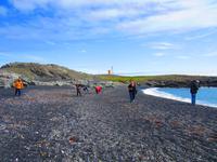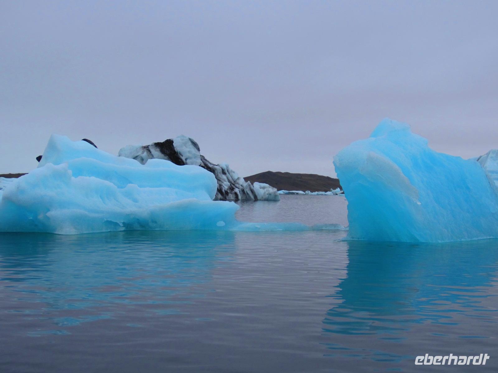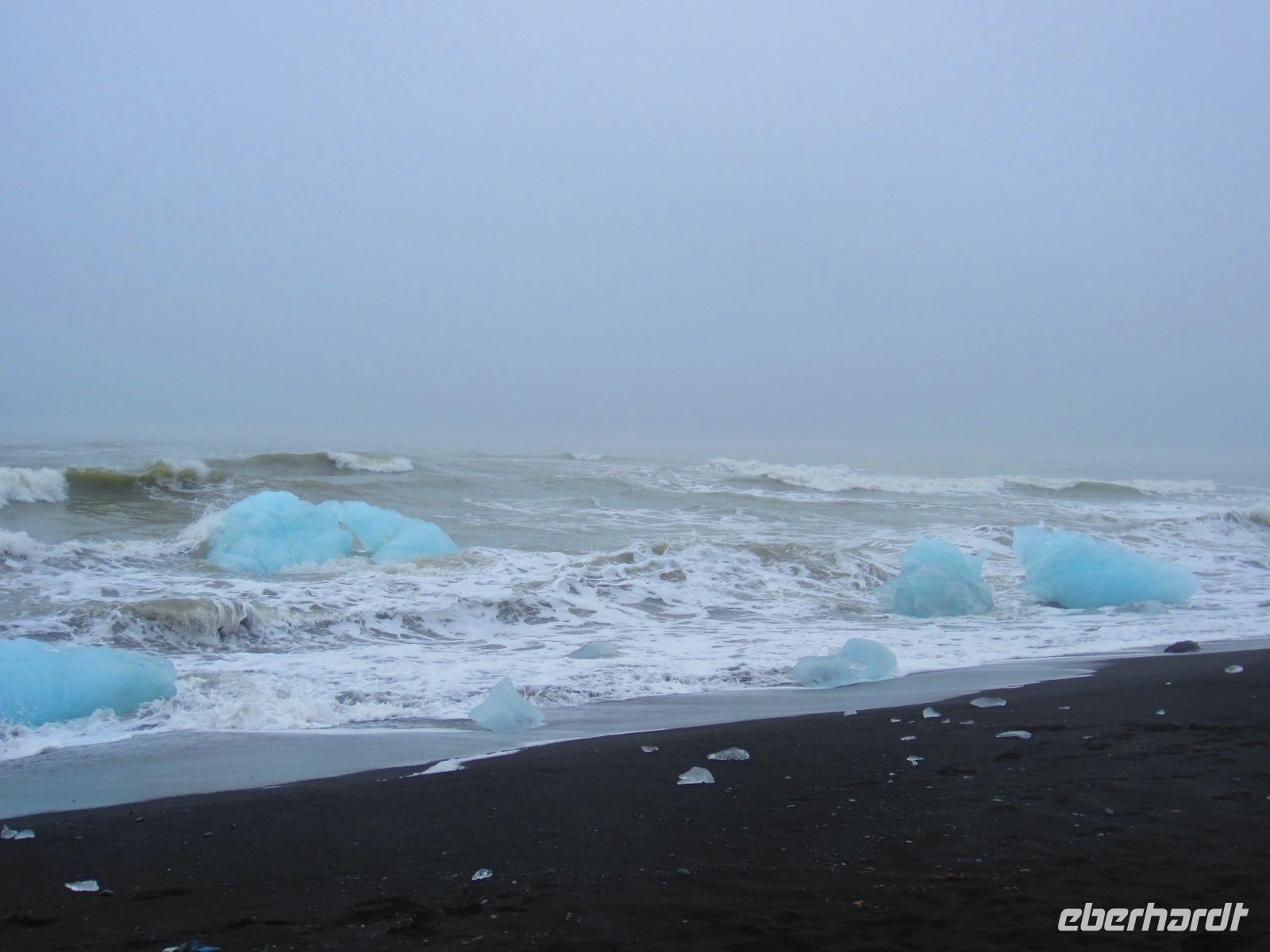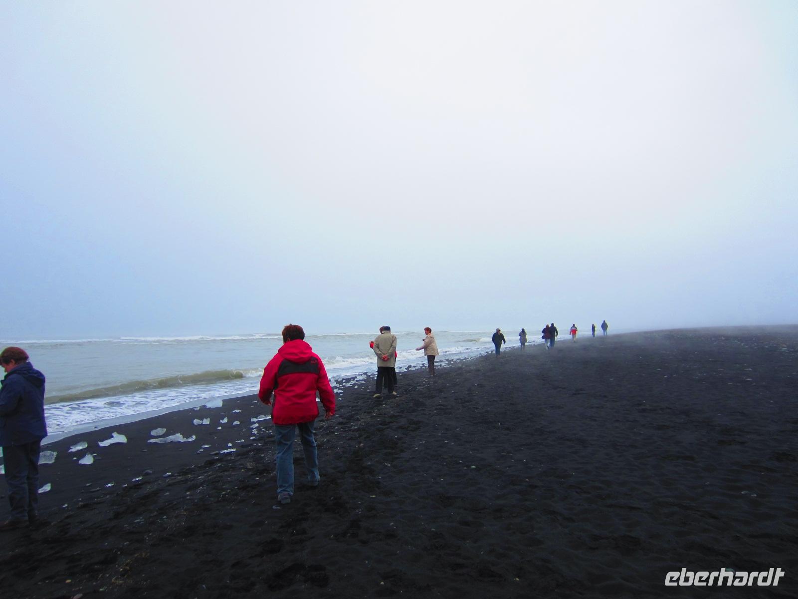 Nachdem wir die letzten Tage reichlich Wärme und Sonnenschein genossen, mussten wir uns heute mit Mütze, Schal und dicker Jacke einkleiden. Am Gletschersee Jökusárlón stiegen wir in unser Amphibienfahrzeug, um über den See zu schwimmen. Die Eisberge leuchteten in den verschiedensten Blautönen. Unser Bordbegleiter gab uns auf lustige Art und Weise interessante Informationen zum See und dem Eis. Auch ein Jahrhunderte altes Gletschereis zog er für uns aus dem Wasser, sodass wir alle einmal kosten konnten. Anschließend unternahmen wir einen Spaziergang am Meer. Es herrschte eine raue See und viele Eisschollen wurden angeschwemmt. Wir mussten sehr vorsichtig sein, denn das Wasser hat eine gewaltige Kraft. Wir entdeckten sogar mehrere Robben, die auf dem Weg ins offene Meer unterwegs waren. Unser armer Busfahrer Münte hatte am Abend wieder kräftig zu tun den schwarzen Sand aus seinem Bus zu kehren.;-) Bei einem Fotostop hatten wir Gelegenheit einen eindrucksvollen Blick auf eine Gletscherzunge zu erhaschen. Am Nachmittag unternahmen wir eine Wanderung im Nationalpark Skaftafell. Nach einem steilen Anstieg konnten wir den Wasserfall Svartifoss sehen, der über eine Wand aus Basaltsäulen floss, die wie Orgelpfeifen aussahen. Wir übernachteten in einem schönen Landhotel in Vik direkt am Fuße des Vulkans Katla, welcher jederzeit ausbrechen könnte. Trotzdem schlief es sich wunderbar.