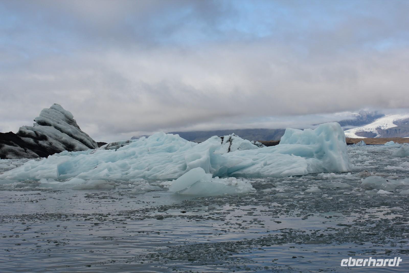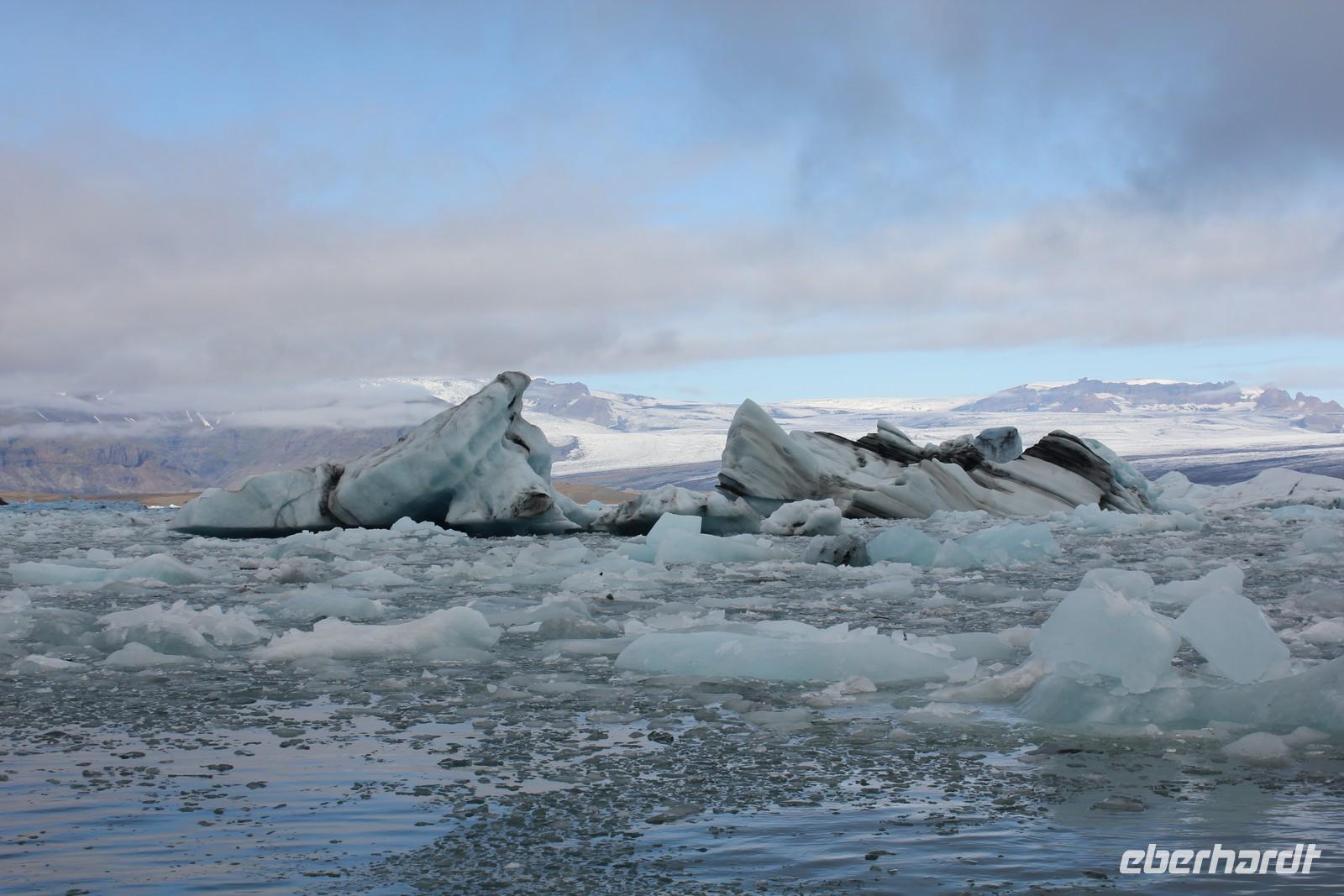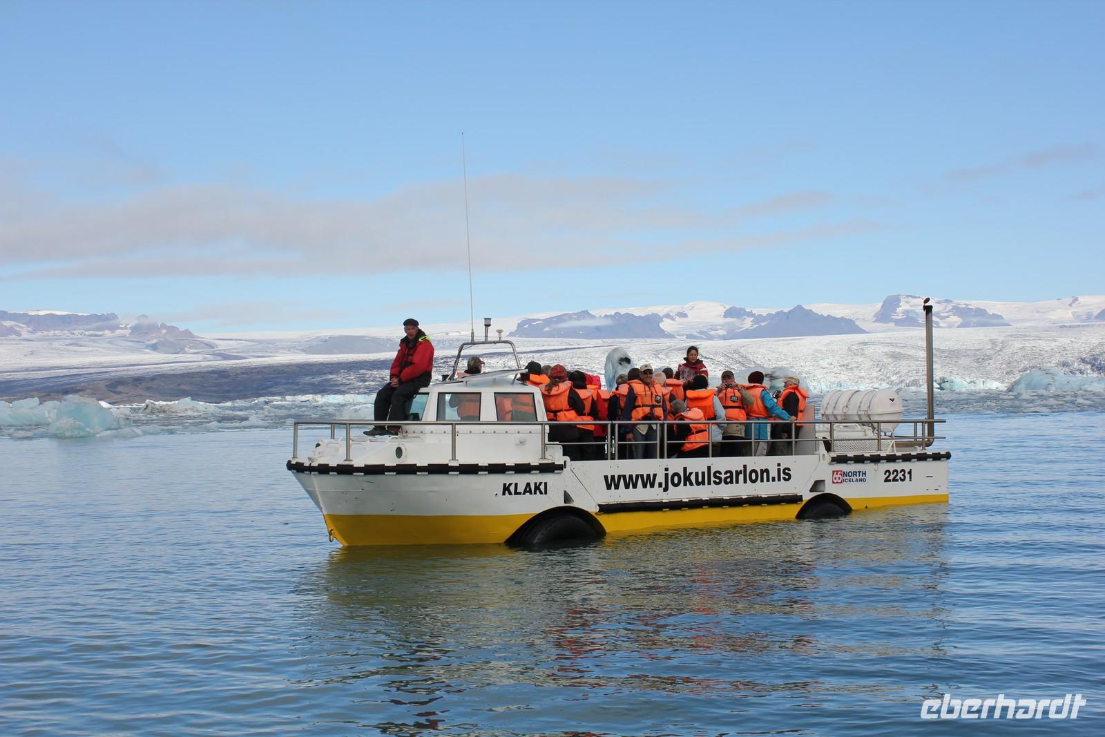 Die zahlreichen Ausläufer des gewaltigen Vatnajökull begleiten uns an diesem Morgen noch ein Stück entlang des Weges bis wir die faszinierende Gletscherlagune Jökulsárlón erreichen. Hier treiben Eisberge, welche sich vom Gletscher getrennt haben, glitzernd blau auf dem Wasser. Die Lagune muss noch vom Eis befreit werden damit wir mit unseren Booten die traumhafte Gletscherlandschaft nah vom Wasser aus bewundern können. In der Zwischenzeit genehmigen wir uns eine Kostprobe des isländischen Schnapses Brennivín, auch „Schwarzer Tod“ genannt, und zwar „on the rocks“ - gekühlt mit Eis aus der Lagune! Kurz darauf begeben wir uns auf eine eindrucksvolle Fahrt mit einem Amphibien-Fahrzeug zwischen den mächtigen Eisbergen und erfahren viel Wissenswertes über die Lagune.