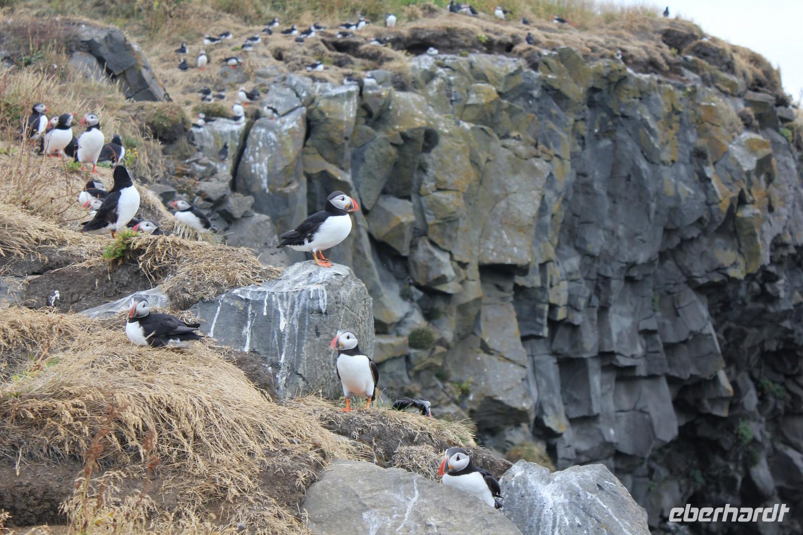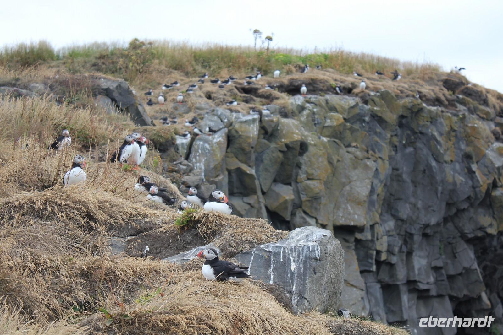 Vor uns liegt ein erlebnisreicher, spannender Tag und so begeben wir uns bereits sehr zeitig früh auf unsere Reise und sind fasziniert von den vielen schwarz-weiß gefiederten Papageientauchern, welche wir bereits nach einer kurzen Fahrt am Kap Dyrhólaey entdecken. Es sieht aus, als hätten die Papageientaucher nur auf uns gewartet. Sehr geduldig posieren diese niedlichen Seevögel für uns und so hat jeder die Möglichkeit, das perfekte Foto zu erhaschen.