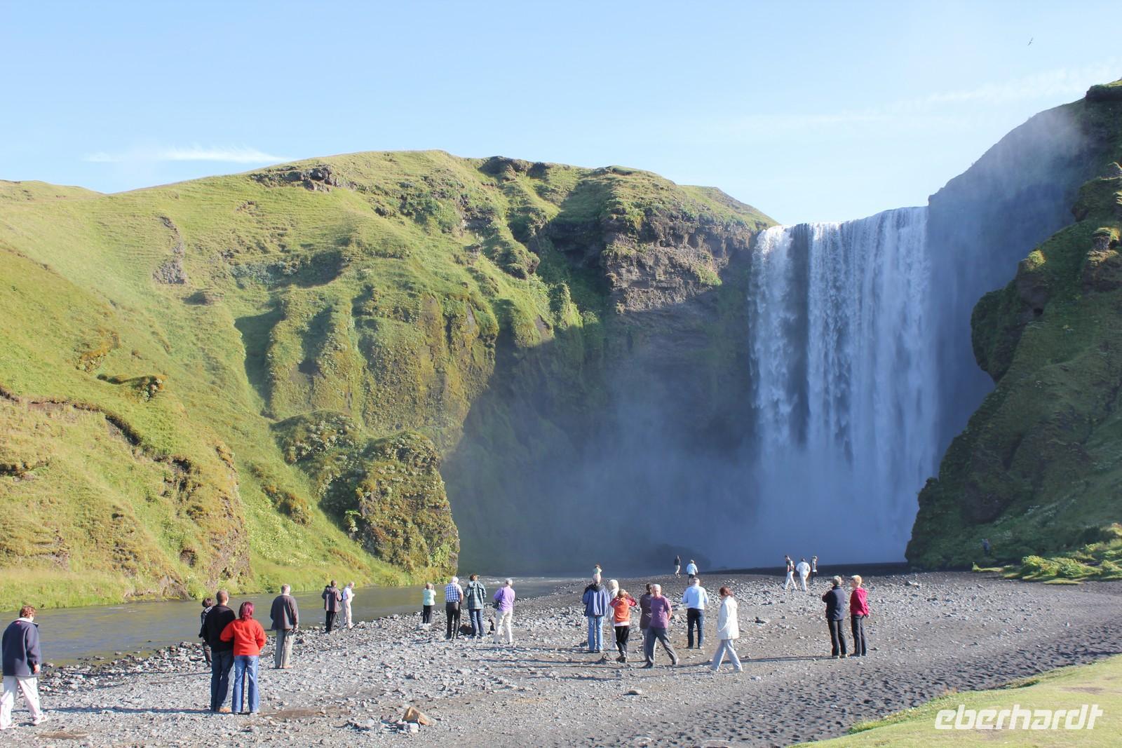 Auf unserer Weiterreise erreichen wir den eindrucksvollen, 60 Meter hohen Wasserfall Skógafoss und erfahren im nahegelegenen Heimat-und Transportmuseum wie die Isländer früher lebten, wohnten und arbeiteten.