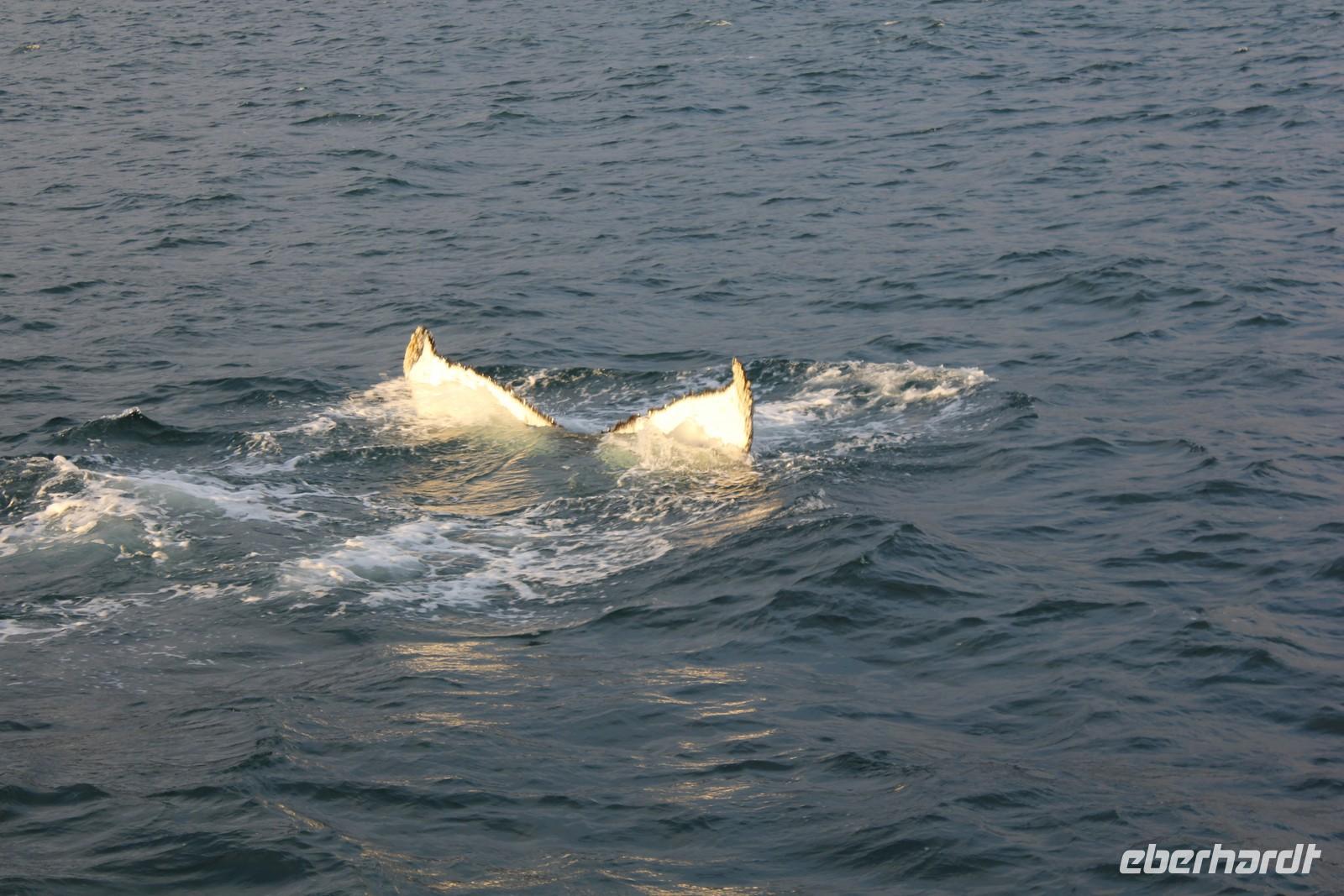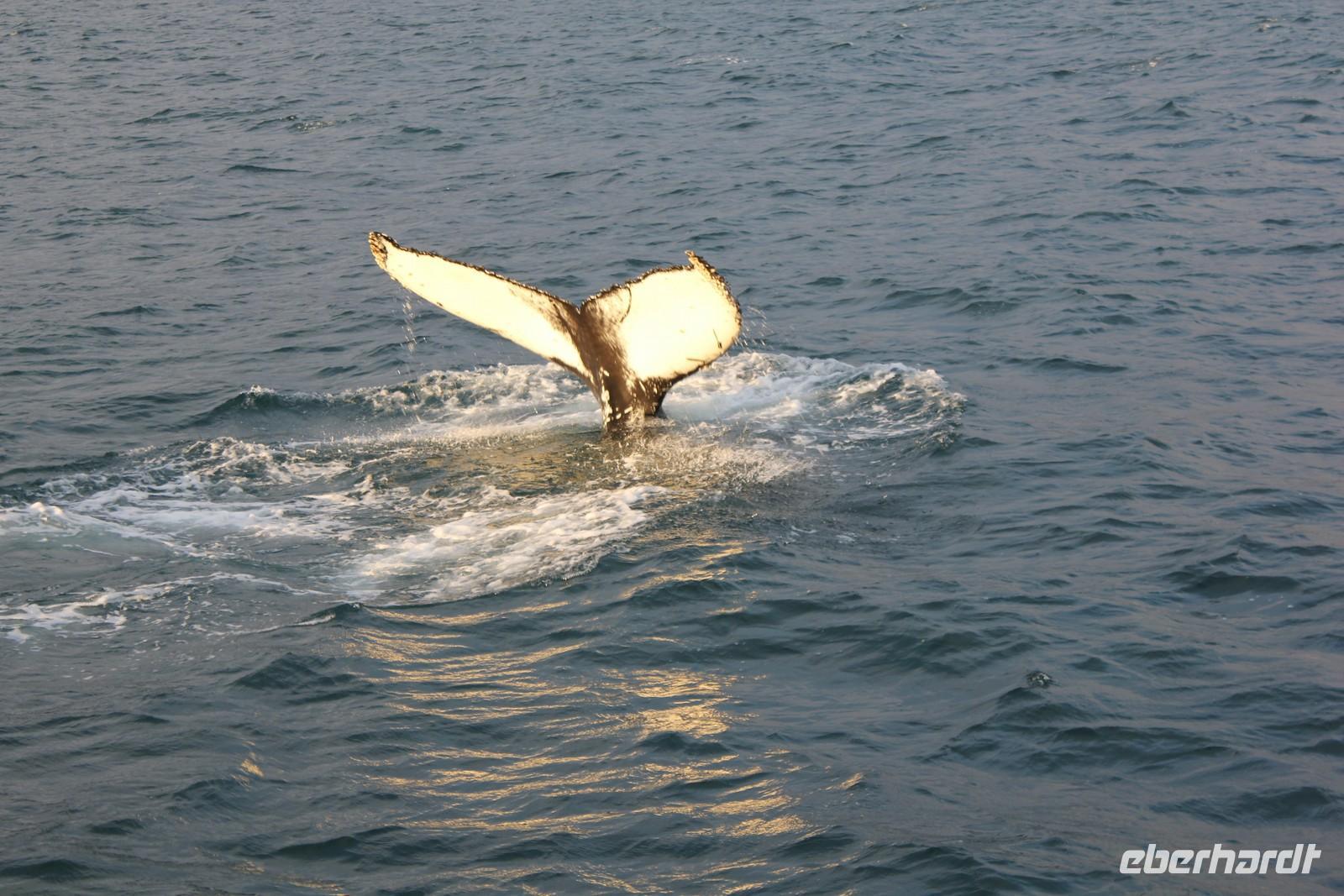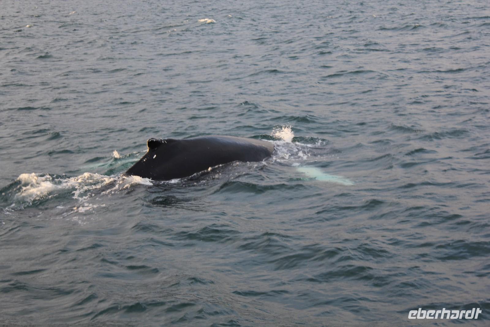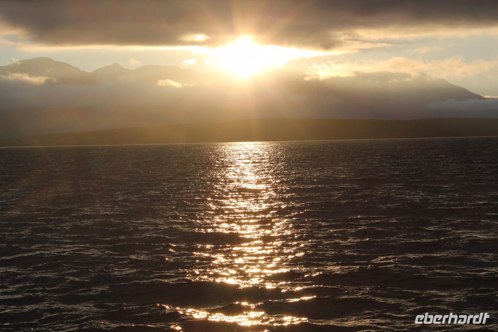 Das Buffet ist reichhaltig und köstlich. Es gibt verschiedenen Fisch, Salate, Lamm, Gemüse und Reis sowie ein reichhaltiges Dessertangebot. Einige von uns genießen anschließend einen Spaziergang durch den wunderbaren Botanischen Garten neben dem Hotel. Andere nutzen nach dem Abendessen die Gelegenheit an einer - aufgrund der Nachfrage - spontan organisierten Walbeobachtungstour in Dalvík teilzunehmen. Wir werden mit 2 Kleinbussen abgeholt und in den 35 Minuten entfernt gelegenen Fischerort gebracht. Dort steigen wir auf ein Boot um und es dauert nicht lange bis wir die wundervollen Tiere sehen und diese uns mit ihren „Kunststücken“ und „Flossentänzen“ erfreuen. Wir wärmen uns mit heißem Kakao und Keksen, genießen die wundervolle Landschaft vom Boot aus und lassen die gewonnenen Eindrücke während der Rückfahrt zum Hotel auf uns wirken bevor wir glücklich und zufrieden ins Bett fallen.