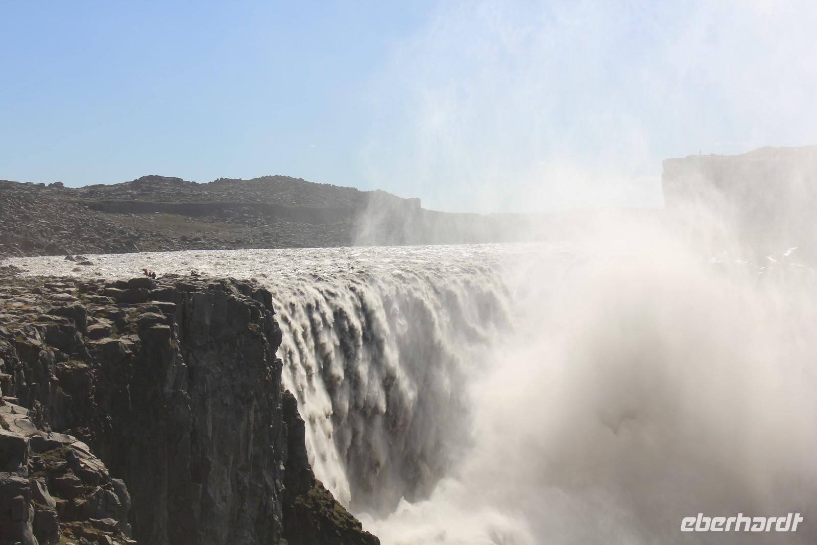 Nach einer kurzen Fahrt erreichen wir bereits unser nächstes Ziel: den gewaltigen, 44 Meter hohen Wasserfall Dettifoss, der mit unglaublicher Kraft in den Canyon hinabstürzt.