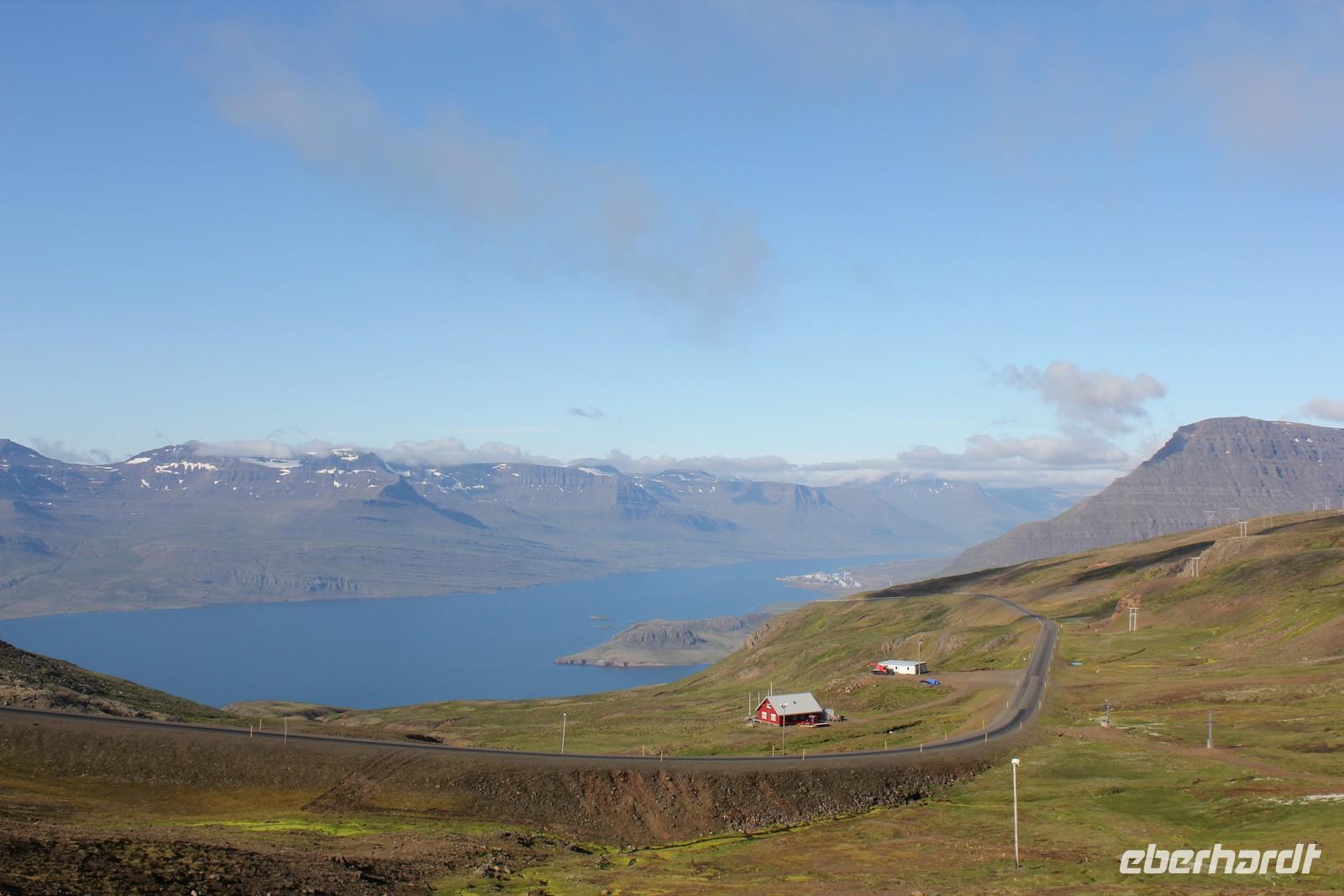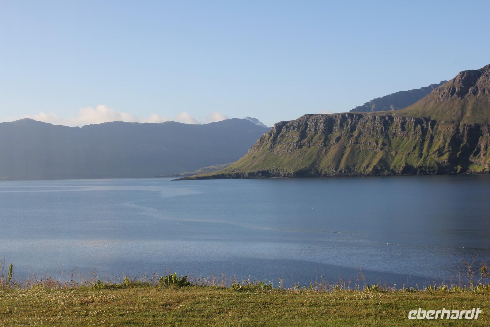 Unsere heutige Unterkunft in Neskaupsstadur liegt direkt am Fjord. Der ganze Ort ist aufgrund des bevorstehenden, langen „Banker“-Feiertags-Wochenendes bunt geschmückt. Nach einer kurzen Erfrischung lassen wir den Abend bei unserem gemeinsamen Abendessen im Restaurant mit Blick auf den Fjord ausklingen.