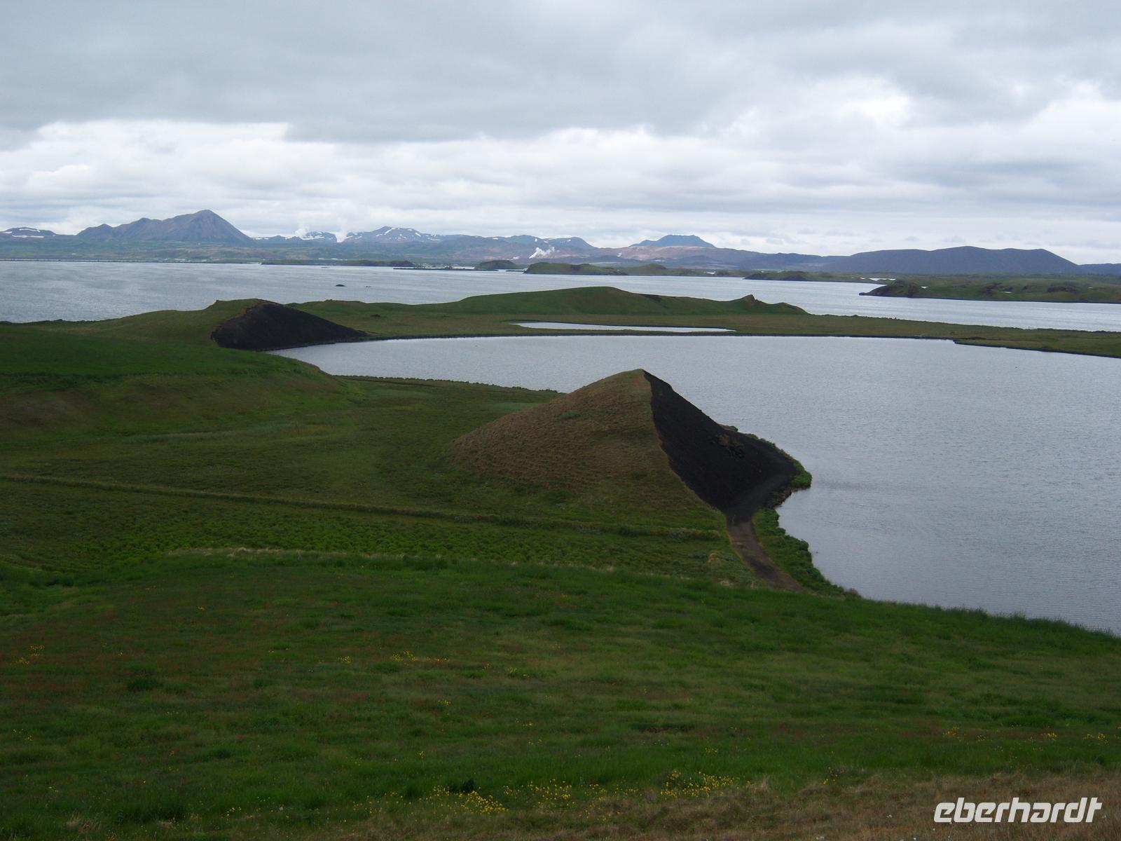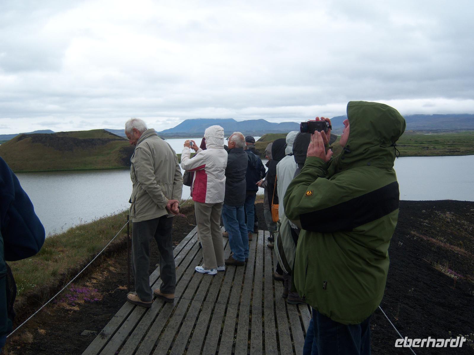 denn wir selbst wurden Opfer dieser Plagegeister. Aber ohne diese Mückenschwärme gäbe es längst nicht solch ein reiches Vogelleben am Myvátn und auch die Forellen freuen sich über die Insekten. Wir unternahmen eine kleine Wanderung um den See und staunten über den viertgrößten Binnensee Islands. Auf einen Höhepunkt folgte kurze Zeit später der Nächste.
