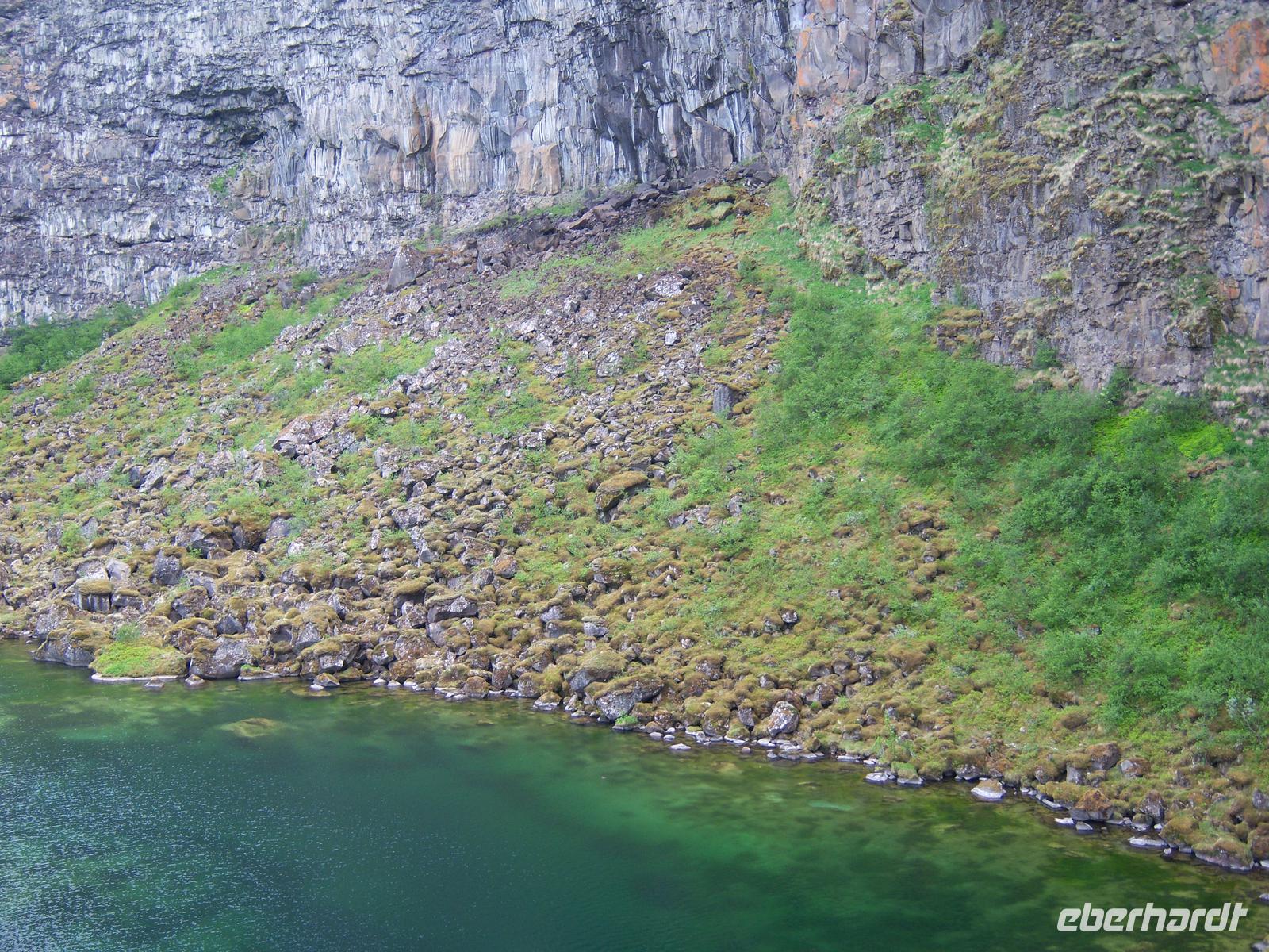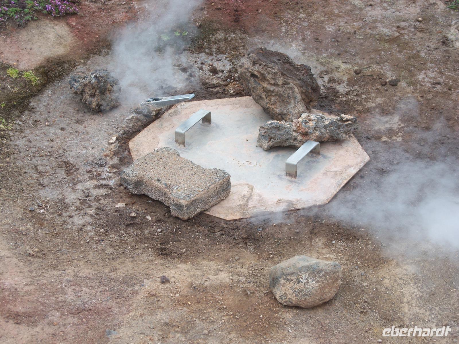 Wir staunten nicht schlecht darüber, wie die Isländer ihr Brot backen und Ihre Suppe warm halten - durch Erdwärme. Dank unserer Reiseleiterin Rósa wurden wir Zeuge dieses Spektakels und durften sogar unter den "Deckel" schauen. Auch die daneben gelegene Bohrinsel, die Island mit Energie versorgt, raubte uns den Atem. Weiter ging unsere Reise zum Vitikrater, den wir aus nächster Nähe betrachten konnten und der noch viel imposanter war, als der Krater Grábok, den wir leider nicht besichtigen konnten. Er hat einen Durchmesser von 300 Metern und ist während einer gewaltigen Explosion zu Beginn des Myvátnfeuers im Jahre 1724 entstanden. Noch mehr als 100 Jahre nach diesem Ausbruch kochte der Schlammtopf im Krater, heute gibt es am Grund einen grünen See.