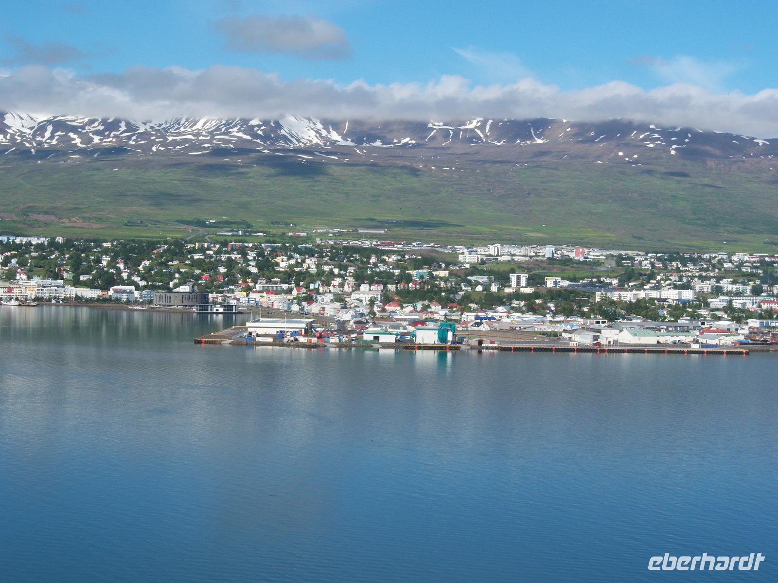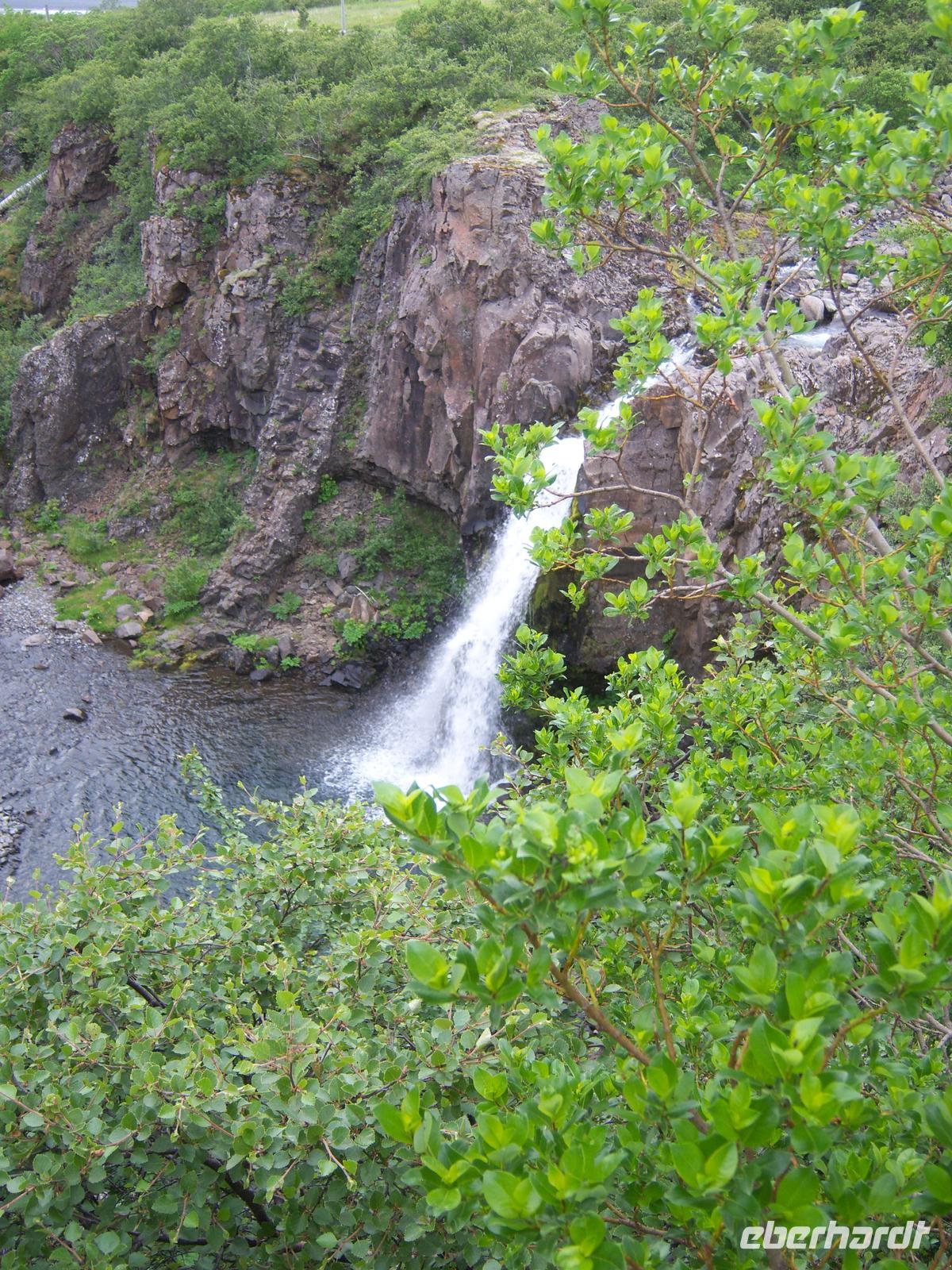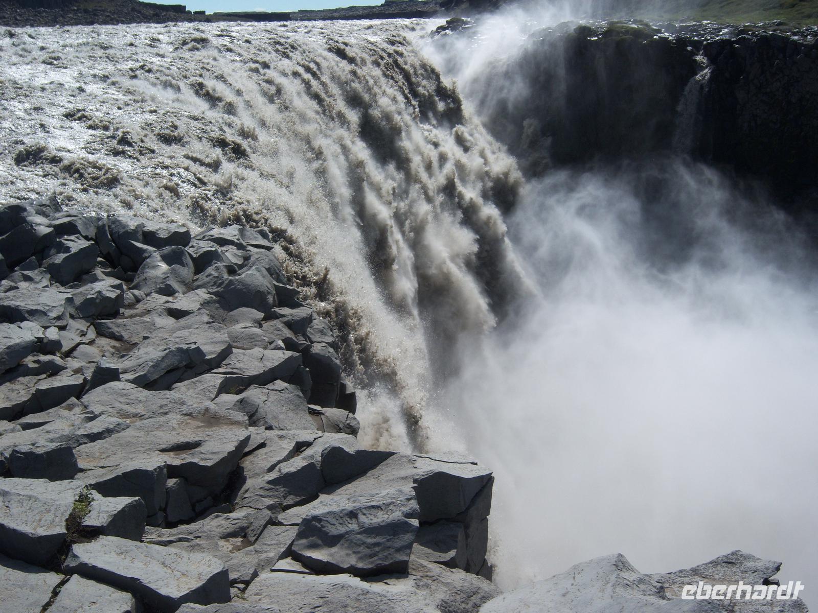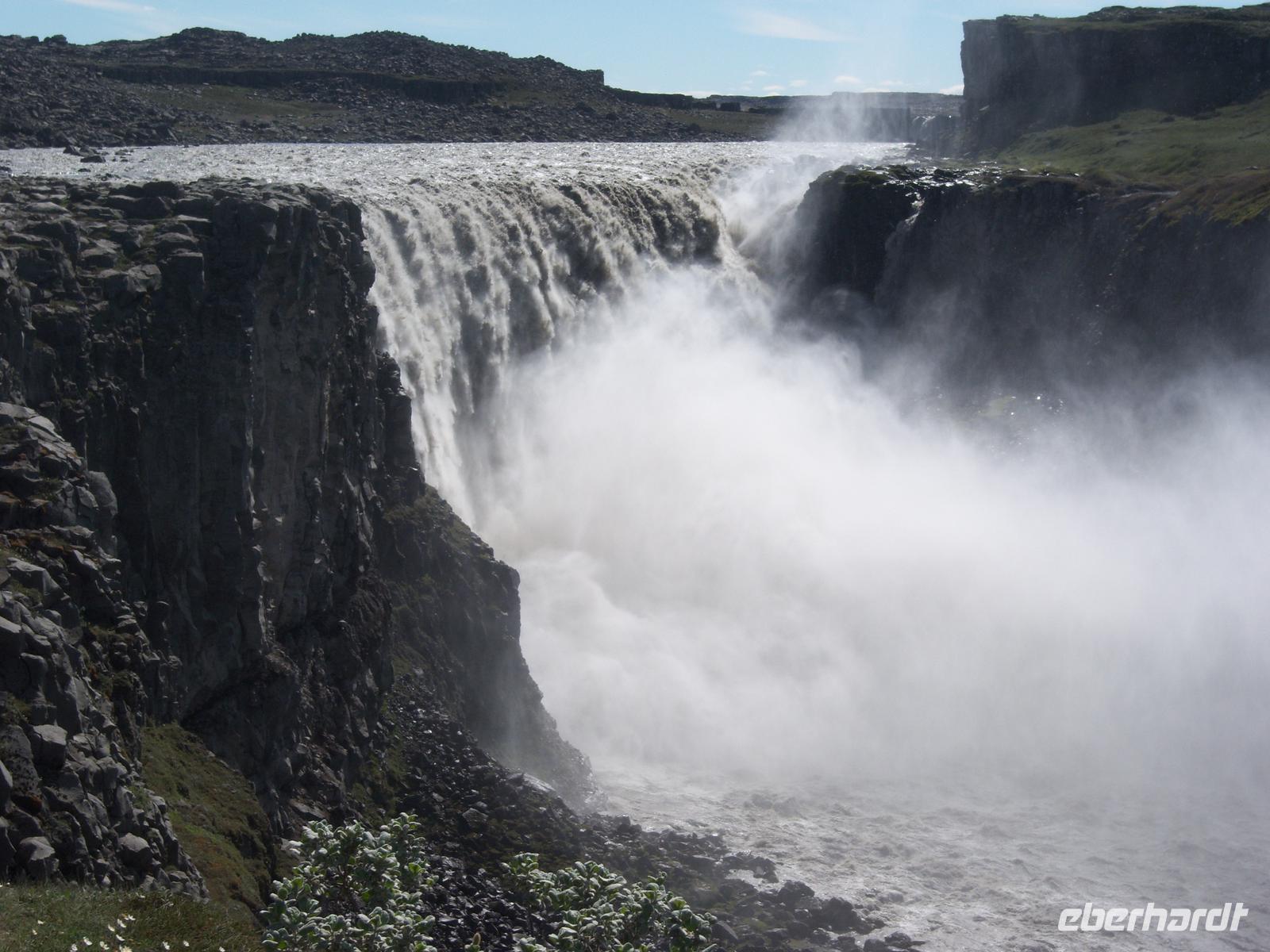 Rund fünfzig Kilometer von Akureyri bildet der Fluss Skálfandafljót den Godafoss - Wasserfall, der es zwar nur auf eine bescheidene Fallhöhe von zehn Metern bringt, aber dessen Wassermassen sich sehr fotogen auf breiter Front in eine Schlucht ergießen. Schnell erkannten wir, dass er nicht umsonst als "Götterfall" bezeichnet wird. Erhaben wie die Götter selbst, die ihn schufen. Ganz nah an diesem Naturwunder schossen wir unsere unvergesslichen Fotos.