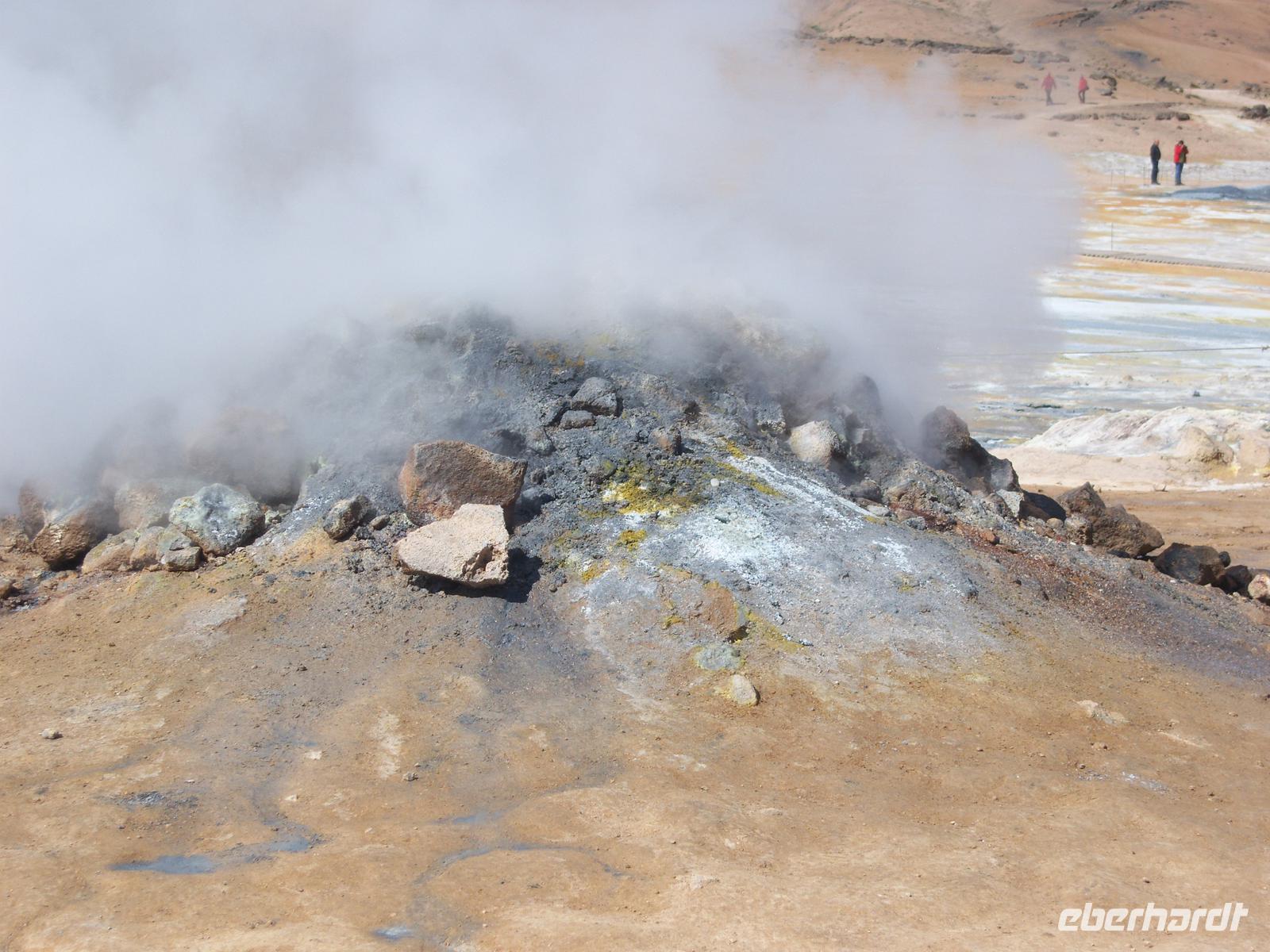 Wenn Engel reisen...unser Tag heute startete mit strahlendem Sonnenschein und dieser hielt bis zum Abend an. Wir fuhren wieder zurück in die Region des See Mývatn. Am Nordrand der Kjalhraun brodelt und faucht es, Schwefelgeruch drang in unsere Nasen.