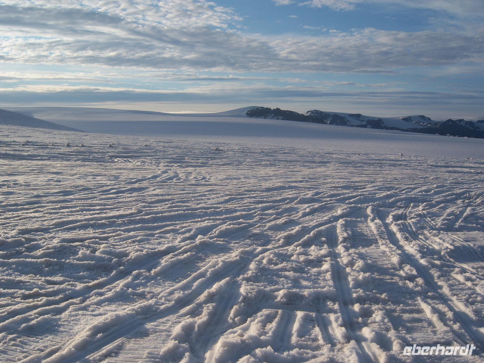 Für viele von uns das Schönste und Abenteuerlustigste der Reise. Wir unternahmen eine Gletscherfahrt auf dem Vatnajökull! Ganz warm eingepackt machten wir uns um 20:00 Uhr auf den Weg mit den Superjeeps auf den Gletscher. Bis nach oben war es eine holprige halbstündige Fahrt und wir waren alle froh heil oben angekommen zu sein. Ein Großteil unserer Gruppe entschied sich für die Fahrt mit den Schneemobilen. Alle anderen fuhren mit den Superjeeps über den Gletscher. Gut ausgerüstet mit Overalls, Helmen und Handschuhen stiegen wir auf unsere Ski-Dos. Aller Anfang war schwer, doch am Ende sind wir gefahren wie die Weltmeister! Wir genossen bei unseren Fotostopps das fantastische Panorama und erlebten den größten Gletscher Europas hautnah. Bei einem Glas Wein oder Bier ließen viele von uns den Abend in unserem Hotel ausklingen.