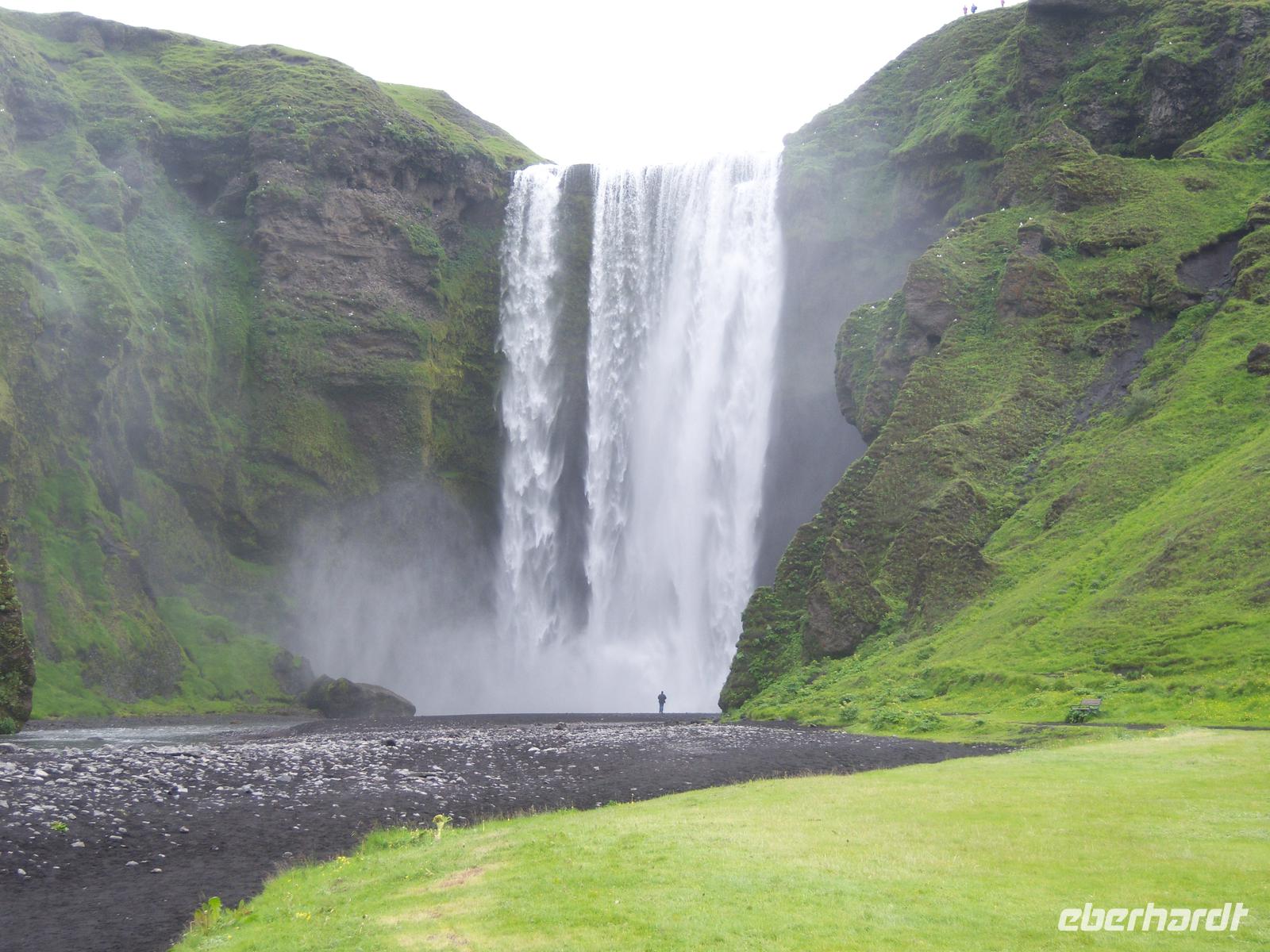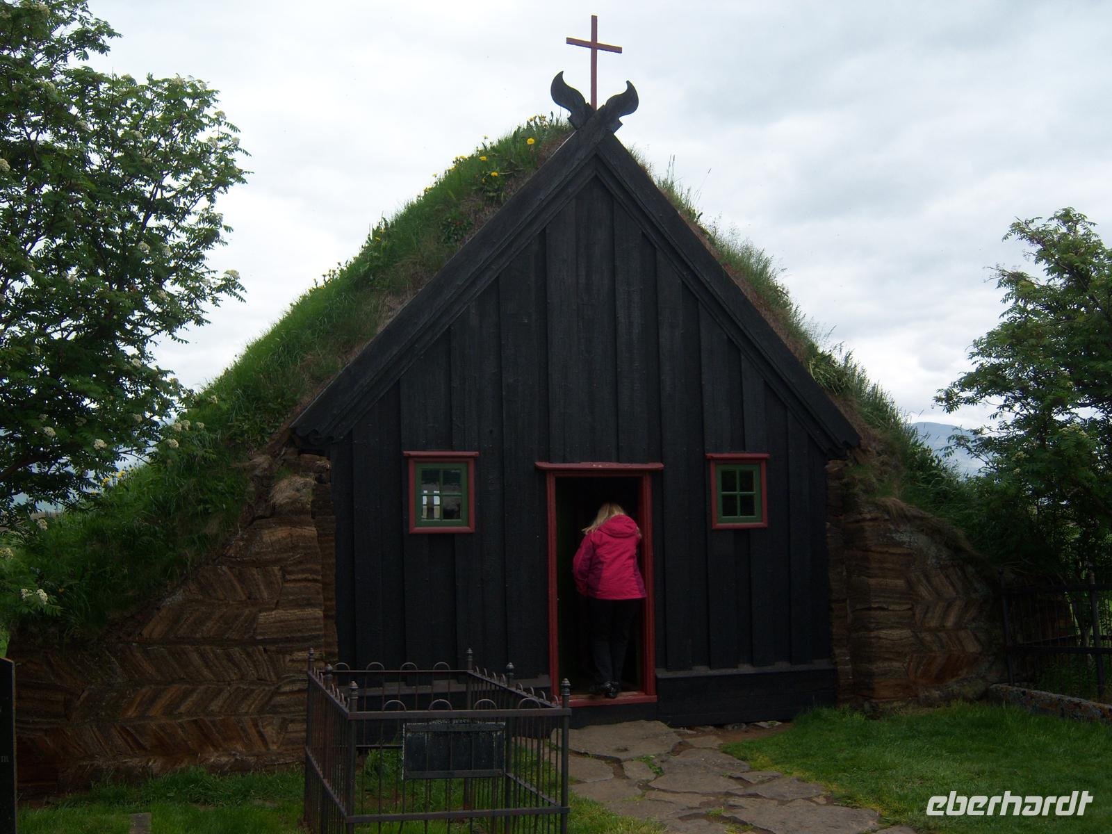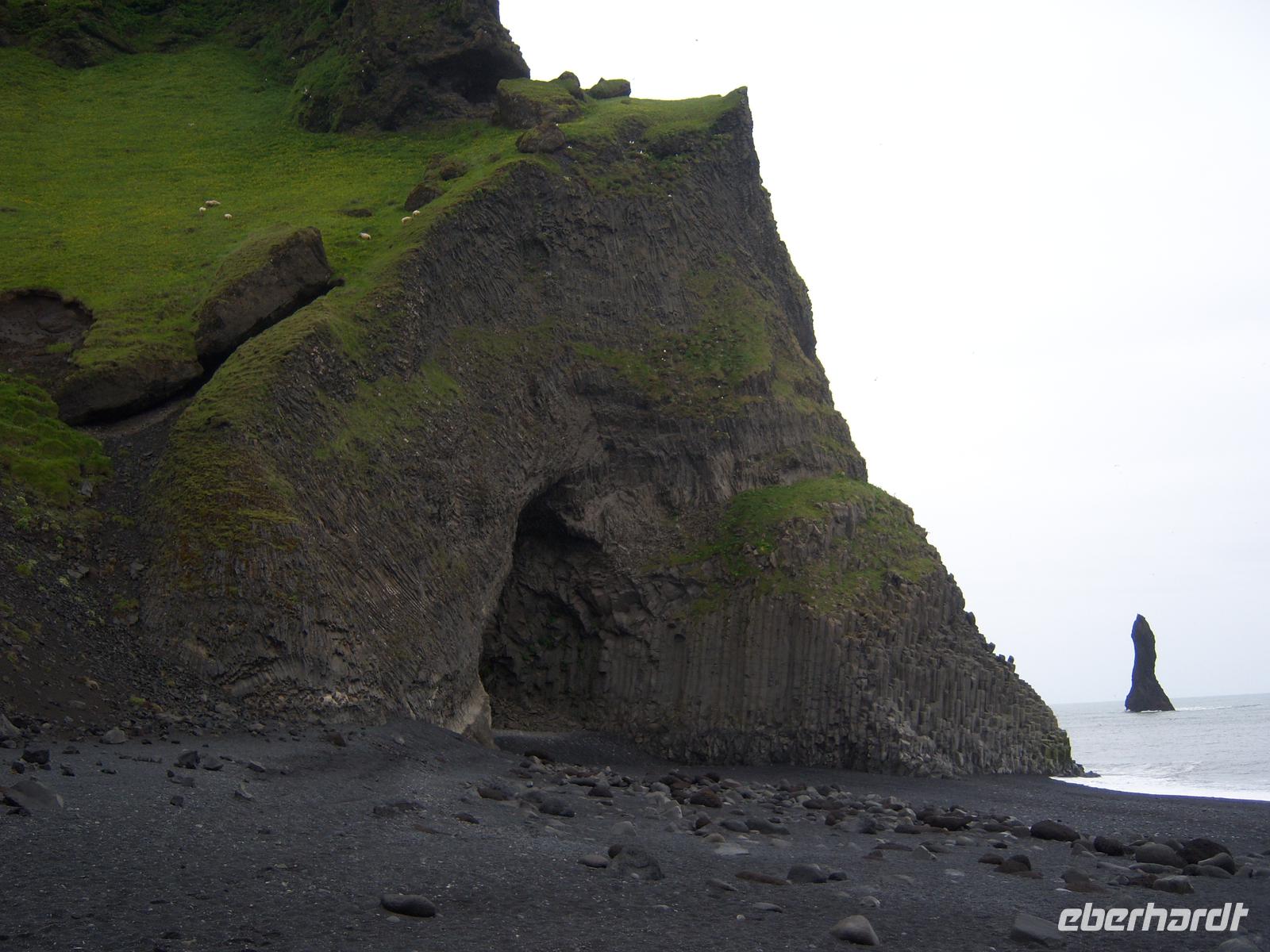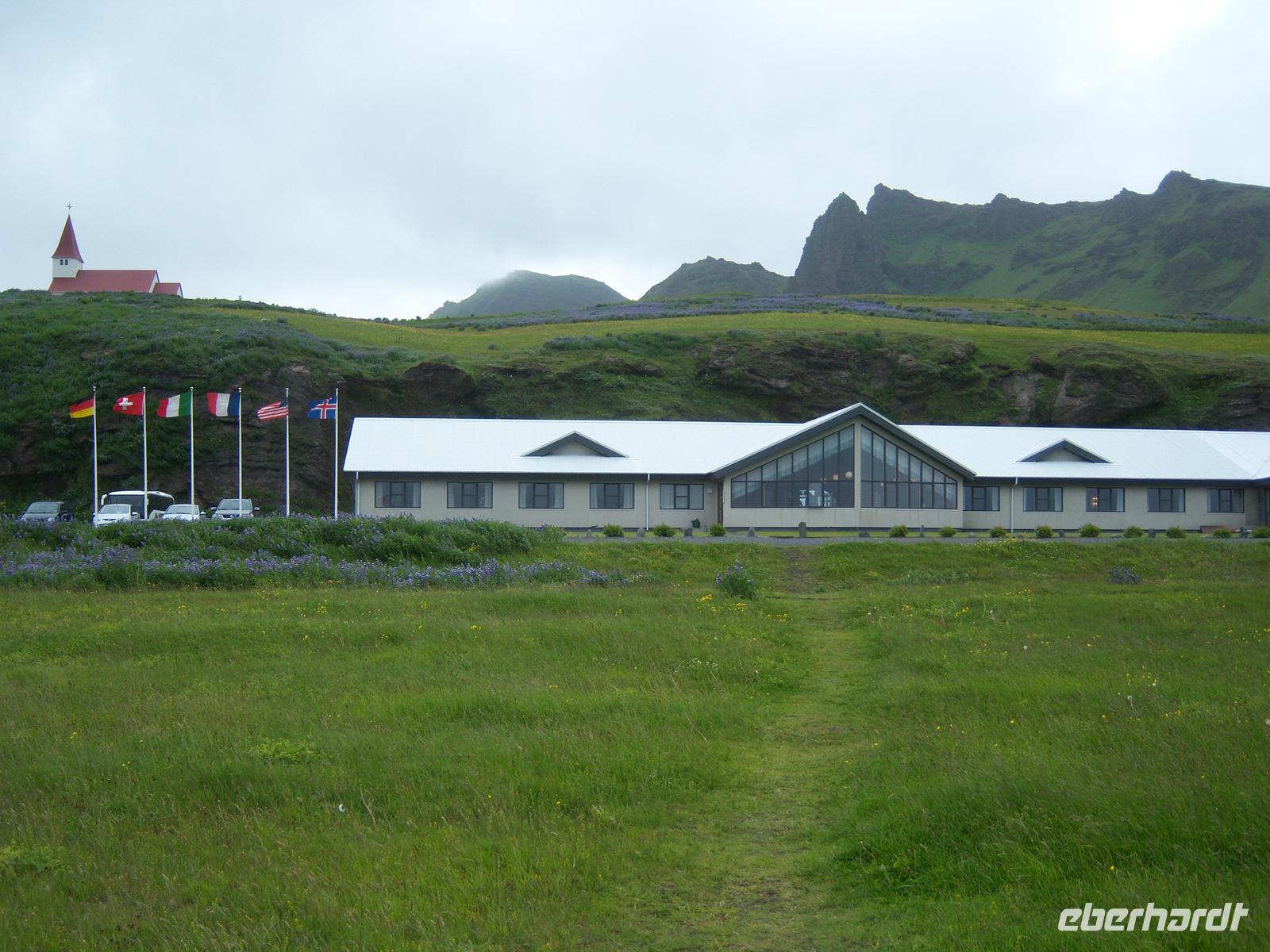 In den Steinfelsen brüten Seevögel, besonders die Papageientaucher. Leider waren sie zu beschäftigt und so konnten wir sie nicht bewundern. Anschließend fuhren wir weiter nach Skógar, wo das Regionalmuseum auf uns wartete. Es zählt zu den Interessantesten Islands und ist das Lebenswerk des Mannes Pórdur Tómasson. Er hat nicht nur alte Torfhäuser, eine Schule und eine Kirche nach Skógar gebracht sondern auch unzählige Gebrauchsgegenstände. Das Museum befindet sich direkt unter dem Eyjafjallajökull, der in diesem Jahr ausgebrochen ist. Es ist erstaunlich, dass kaum noch Schäden oder Asche dort zu verzeichnen sind. Neben dem Museum befindet sich der Wasserfall Skógafoss.