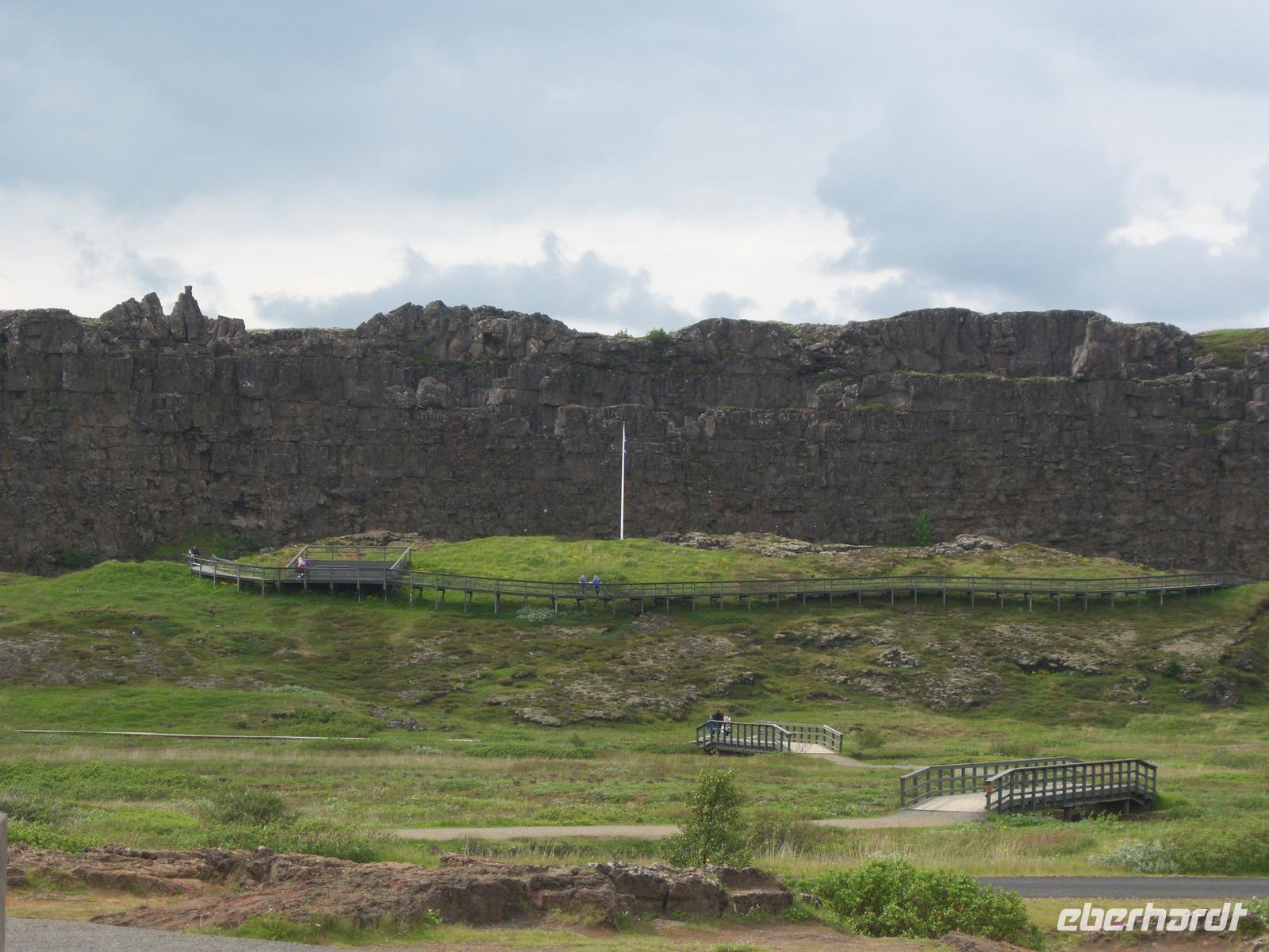 Der letzte Ort unserer Reise ist sowohl historisch als auch geologisch von höchstem Interesse. In Thingvellir werden wir Zeuge des Auseinanderdriftens der amerikanischen und eurasischen Platten. Zwischen den Platten befindet sich "Niemandsland". Wir haben dieses als "Isländische Platte" gekürt. Am frühen Abend schließt sich für uns der "Goldene Kreis" und wir fahren nach zurück Reykjavík. Bei allen macht sich so langsam ein wenig Traurigkeit breit.