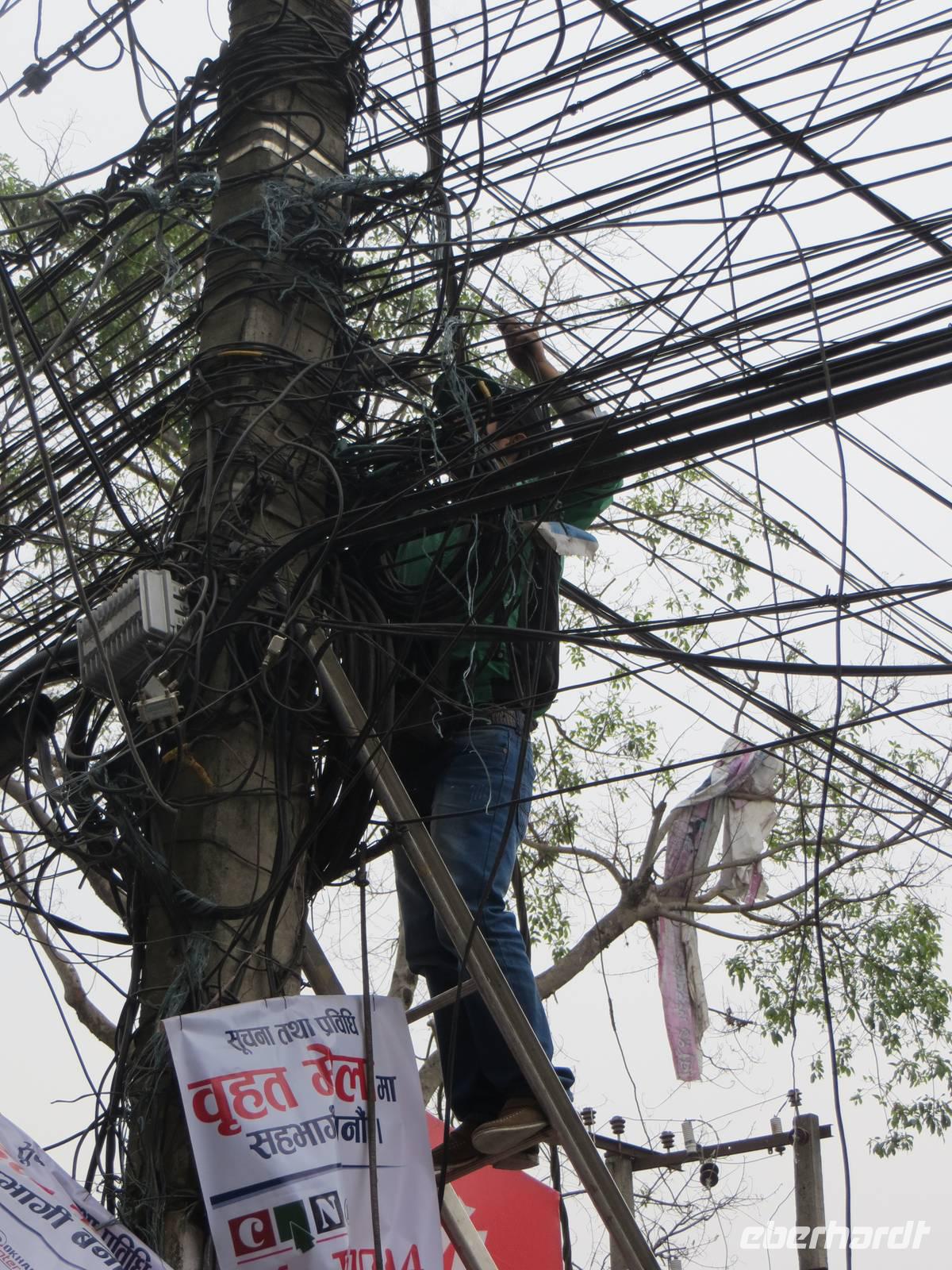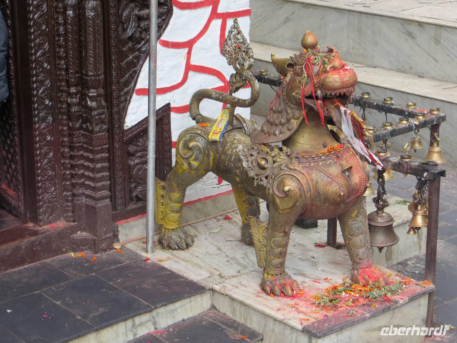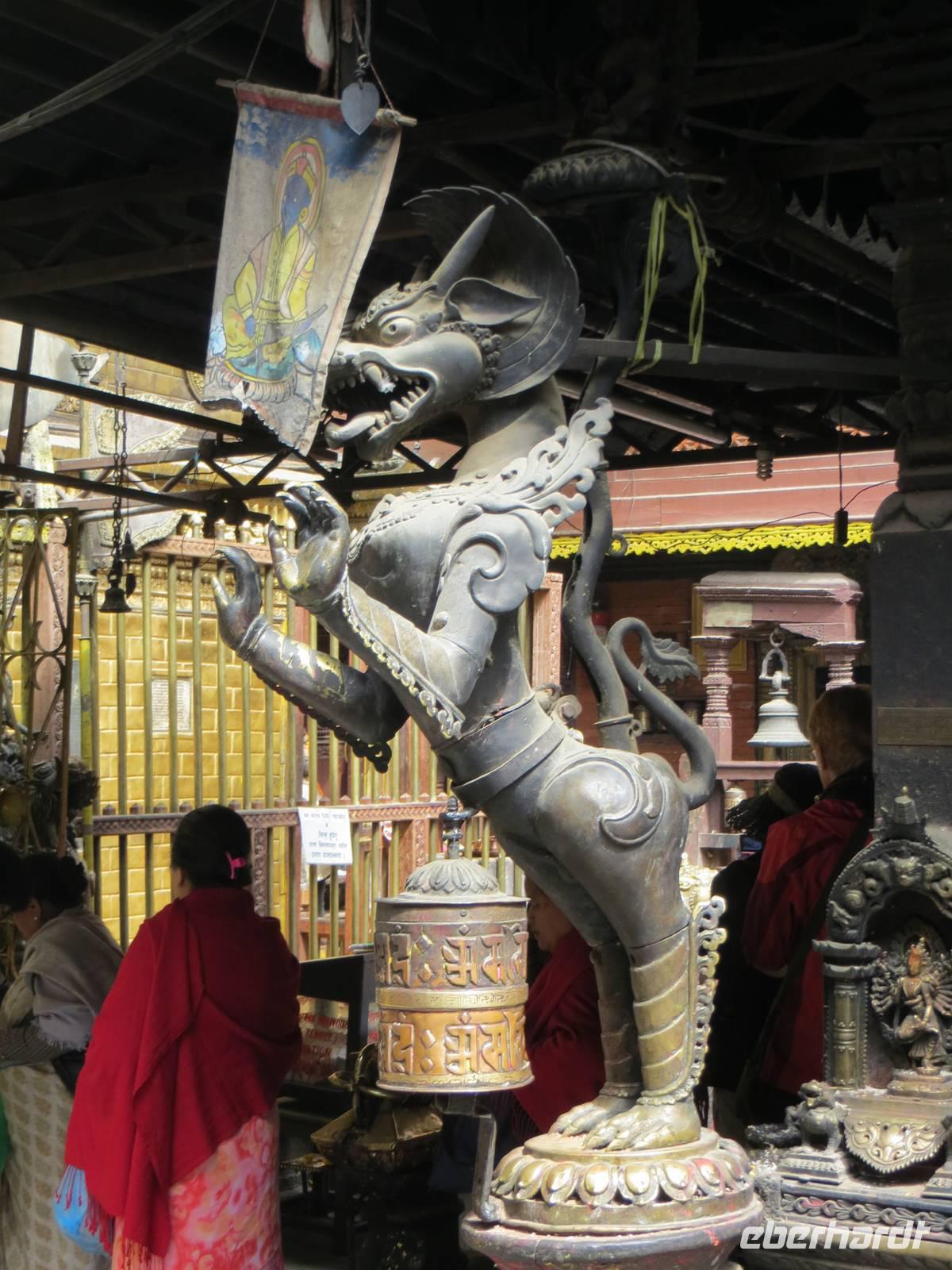 Am späten Vormittag besuchten wir Syambhunath mit dem Affentempel und einer großen Stupa. Selten sind Hinduismus und Buddhismus auch baulich so eng vereint wie auf diesem Hügel im Nordwesten der Stadt. Noch ließen Sonnenstrahlen die vergoldete Stupa glänzen.