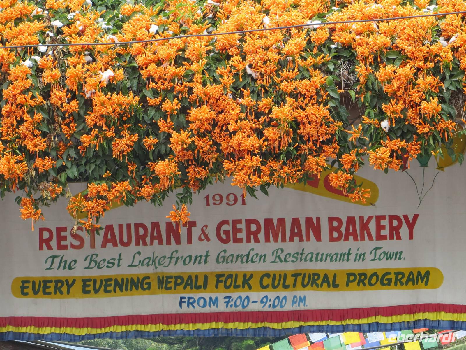 Nach dem Frühstück fuhren wir zunächst zu einem tibetanischen Flüchtlingsdorf, einerseits um mehr über das Leben der exilierten Tibeter zu erfahren, andererseits aber auch um deren handgewebte Teppiche zu bestaunen. Anschließend ging es in das alte Zentrum von Pokhara mit einigen interessanten Bauten aus rotem Ziegelstein und typischen geschnitzten Fenstern. Auch ein Stopp am Hauptmarkt zeigte uns, wie das Leben in der zweitgrößten Stadt Nepals läuft. Zum Mittag dann an der Einkaufsstraße am nördlichen Phewa-Ufer ein augiebiger Halt mit der Chance für alle nach Pashmina-Produkten, Buddhafiguren, Tee und Ansichtskarten zu schauen.