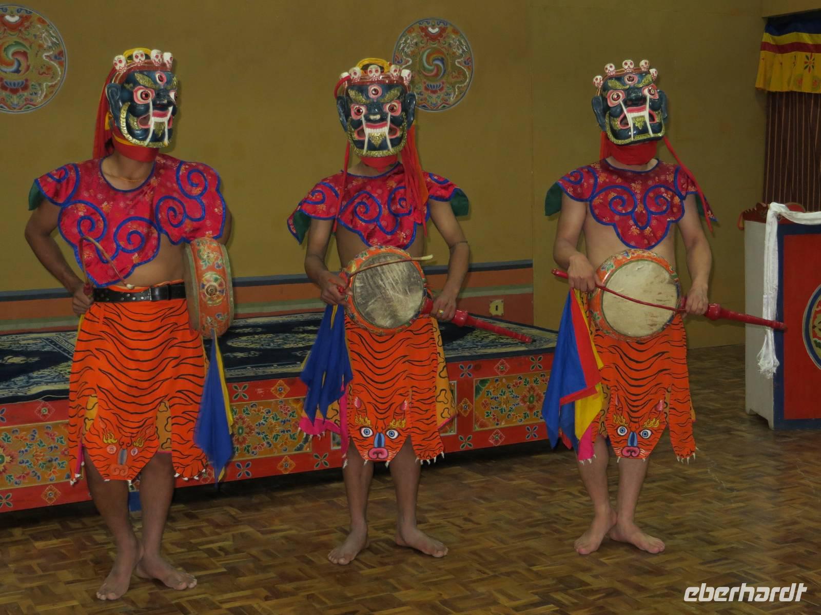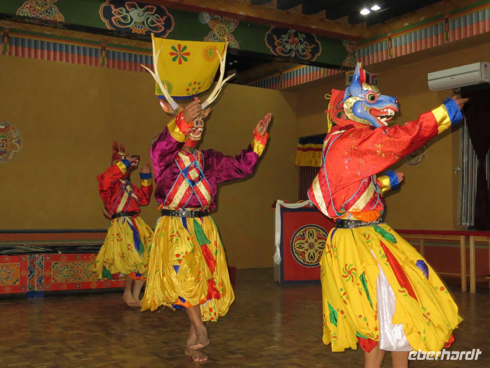 Im großzügigen Hotel oberhalb von Paro bedankte sich Eberhardt Travel bei den Gästen dieser exclusiven Reise mit einer exclusiv und zusätzlich georderten Folkloreveranstaltung, die auch zwei traditionelle Maskentänze einschloss.
