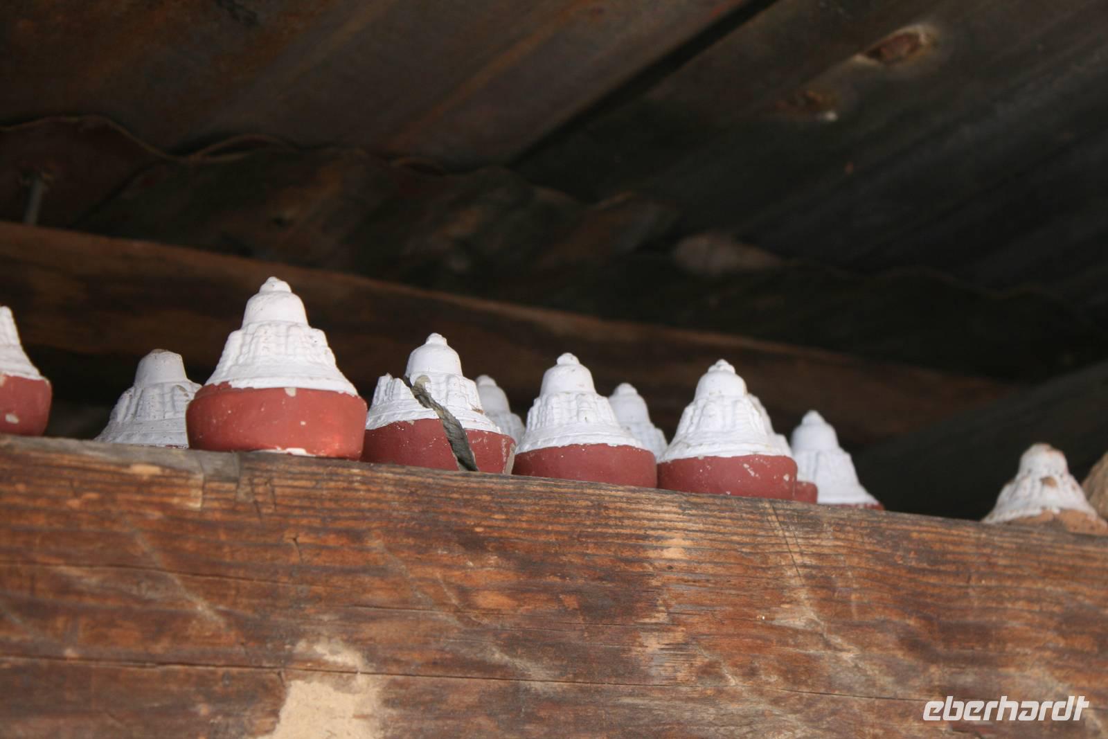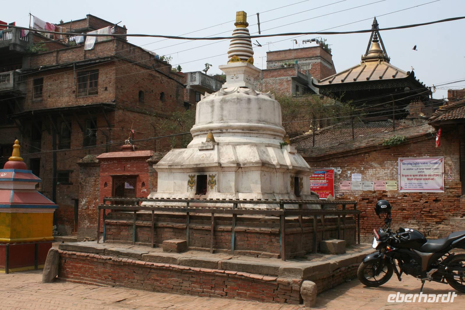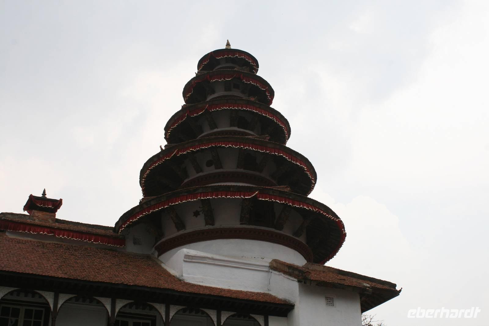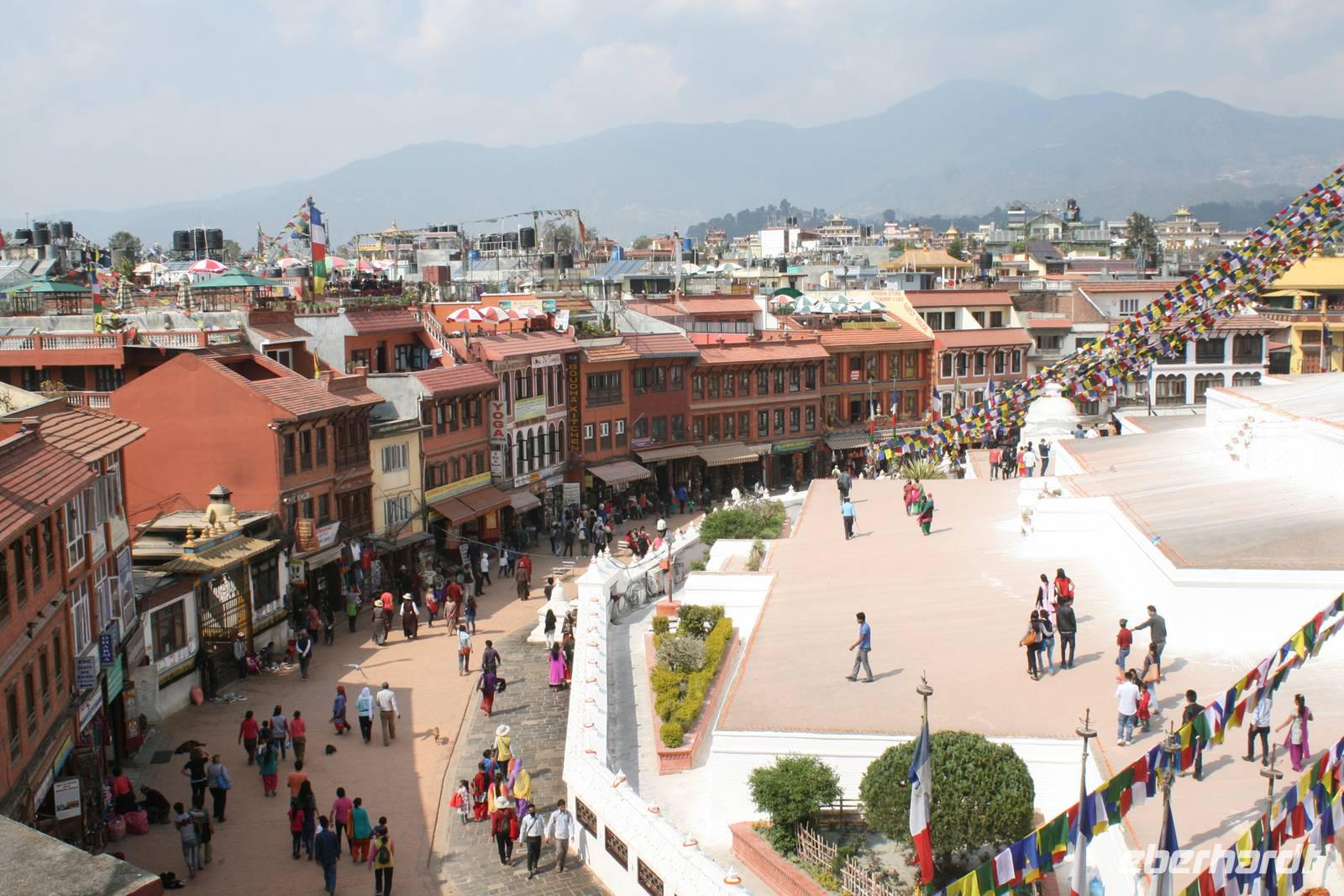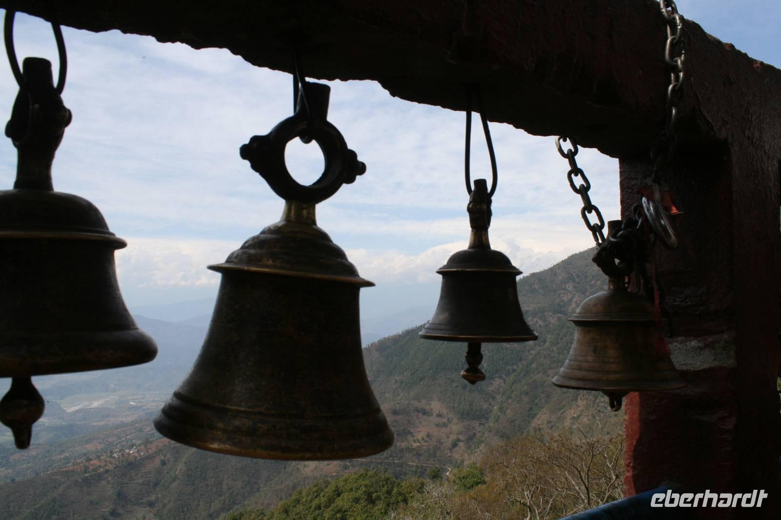 Heute müssen wir am Vormittag unser schönes 5-Sterne-Hotel in Pokhara leider schon wieder verlassen aber ein jeder genießt es auch heute etwas länger schlafen zu können. Am Vormittag packen wir wieder unsere sieben Sachen und begeben uns zum kleinen aber feinen Flughafen von Pokhara, denn heute geht es für uns zurück nach Kathmandu. Am Flughafen angekommen, erledigte Abi für uns die Formalitäten und wir ließen uns so während der Wartezeit noch einige Sonnenstrahlen auf der Terasse ins Gesicht scheinen. In Deutschland kaum denkbar, dass man aus einem Flughafengebäude auch rausgehen kann. Einige Koffer waren etwas schwerer als die erlaubten 20 Kilogramm aber dies wurde hier noch akzeptiert. Auch mit den Sicherheitskontrollen nimmt man es hier nicht so genau. So flogen wir mit einer Verpätung von etwa einer Stunde, aber für nepalesische Verhältnisse trotzdem noch pünktlich mit einer kleinen Bhudda Air Maschine nur etwa eine halbe Stunde zurück nach Kathmandu. Am späten Mittag hier angekommen, haben wir auch unsere Koffer wieder in Empfang genommen. Das Gepäckband war zwar etwas gewöhnungsbedürftig aber in Nepal geht alles. So fuhren wir zurück zu unserem schon bekannten Hotel und bezogen wieder unsere Zimmer. Später trafen wir uns wieder und spazierten gemeinsam zur Stupa von Bodnath, die wir mittlerweile schon ganz gut kennen. Abi hat hier ein tolles Restaurant mit Dachterrasse für uns ausgesucht und so genießen wir von hier auch einen tollen Blick auf das Treiben an der Stupa. Tradtionnell werden wieder viele Momos gegessen und Everest Bier getrunken. Den Nachmittag nutzt dann jeder indviduell um noch ein paar Souvenirs oder Postkarten zu erstehen. Einige nutzen aber auch die Zeit, um sich bei den Tempeln etwas näher umzuschauen und müssen feststellen, dass Sie anscheinend als Eberhardt-Gäste so arm aussehen, dass Sie nun schon zur Nepalesischen Tafel gehören und mit Nahrung versorgt werden. Was man nicht alles in Kathmandu erlebt...am Abend genießen wir ein letztes Abendessen im Hotel und natürlich einen anschließenden Drink in der bekannten Yak Bar, bevor wir am nächsten Tag weiter nach Bhutan, in das Land des Donnerdrachens fliegen.