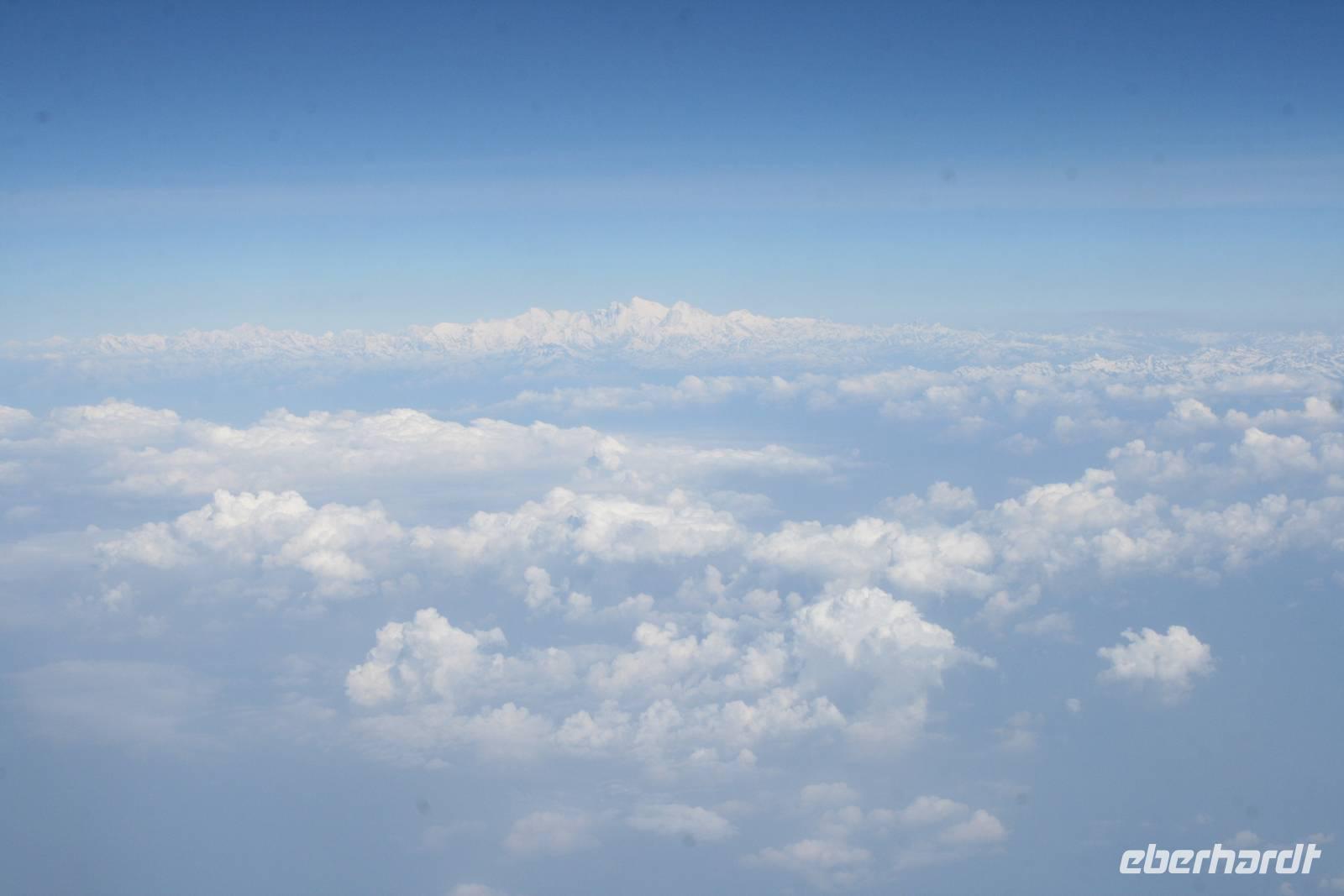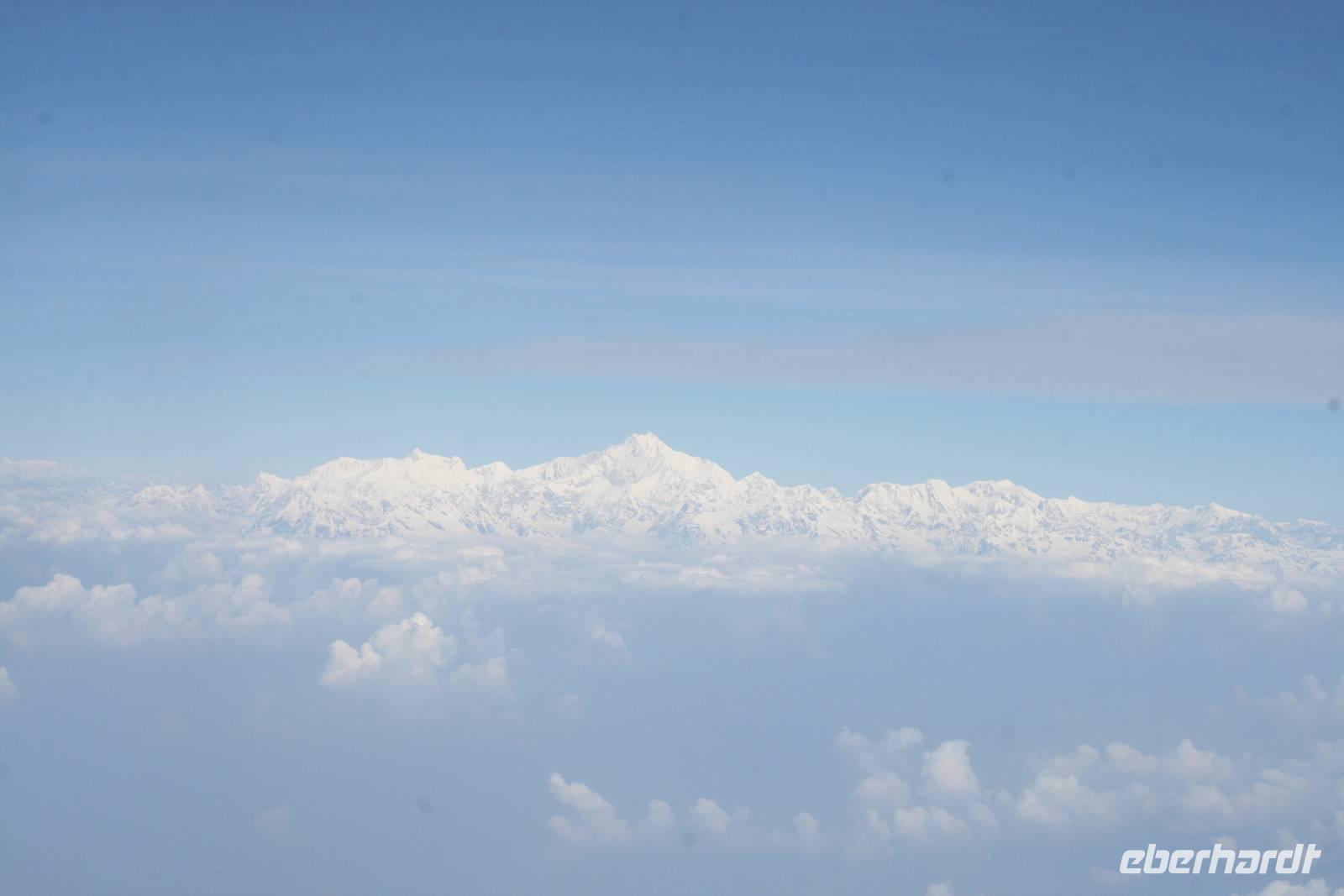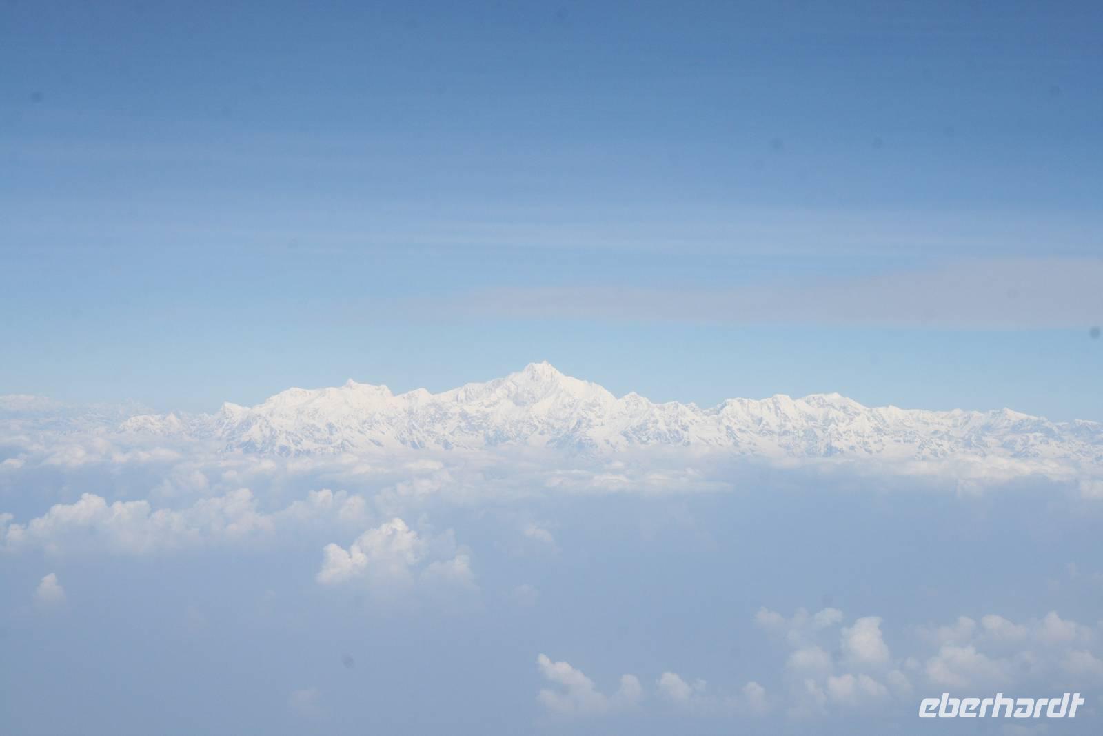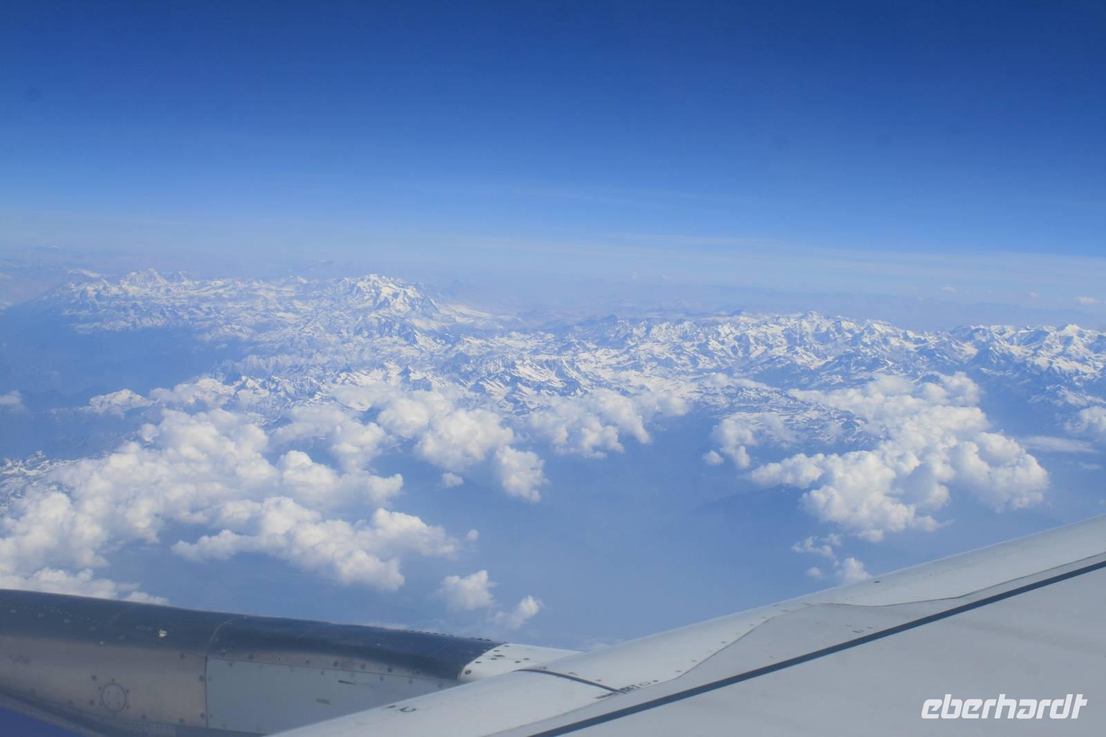 Am Morgen trafen sich die ersten Reisefreudigen meiner 15-köpfigen Nepal und Bhutangruppe am Flughafen in Dresden. Bereits beim Informationsabend und bei den Telefonaten an den Vortagen konnten letzte Fragen geklärt werden und so freuten wir uns sehr auf unsere gemeinsame Reise und auf unser Abenteuer Nepal und Bhutan. Nach einem weiteren Halt mit unserem Reisebus an der Raststätte Klettwitz, fuhren wir direkt weiter nach Berlin-Tegel, wo wir pünktlich und sicher ankamen und auch herzlich unsere Mitreisenden in Empfang nahmen. Die Reisepässe mit den zugehörigen Visa und die Vordrucke für die Einreiseformulare waren schnell verteilt und so checkten wir gemeinsam voller Vorfreude am Schalter der Turkish Airlines ein, in der Hoffnung, dass all unser Gepäck auch Kathmandu erreichen würde. Nach einem leckeren Baguette und einem Kaffee im Bistro Leysieffer am Flughafen Berlin-Tegel, begaben wir uns zu unserem Abfluggate und flogen pünktlich zu unserer ersten Station nach Istanbul. Hier angekommen, stellten wir unsere Uhren bereits eine Stunde vor und fanden auch schnell unser Weiterfluggate nach Kathmandu. Mit etwas Verpätung flogen wir mit einer Flugzeit von ca. 7 Stunden und einer Zeitverschiebung von weiteren 3:45 Stunden weiter nach Kathmandu. Einige hatten schon etwas Bammel vor der Landung, nach der Schlagzeile der Turkish Airlines Maschine vor einigen Tagen, aber wir landeteten sicher und konnten unterwegs sogar den ersten Blick auf die Annapurna-Gebirgskette werfen.
