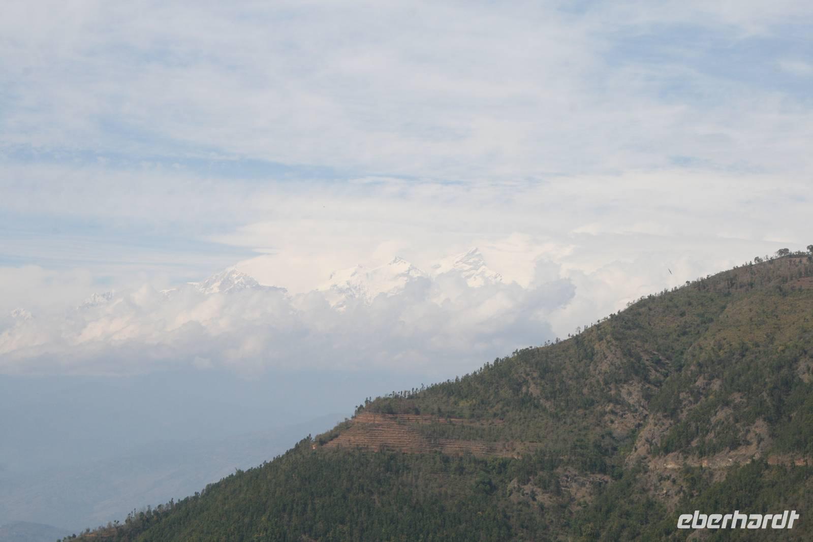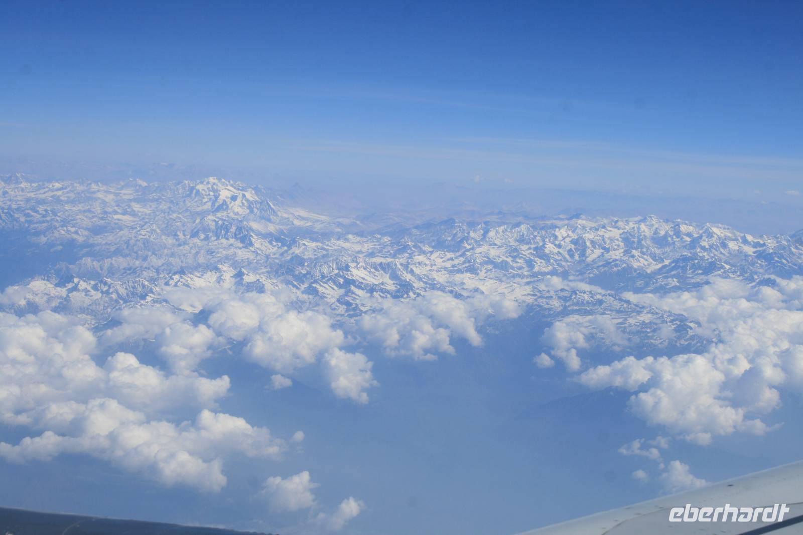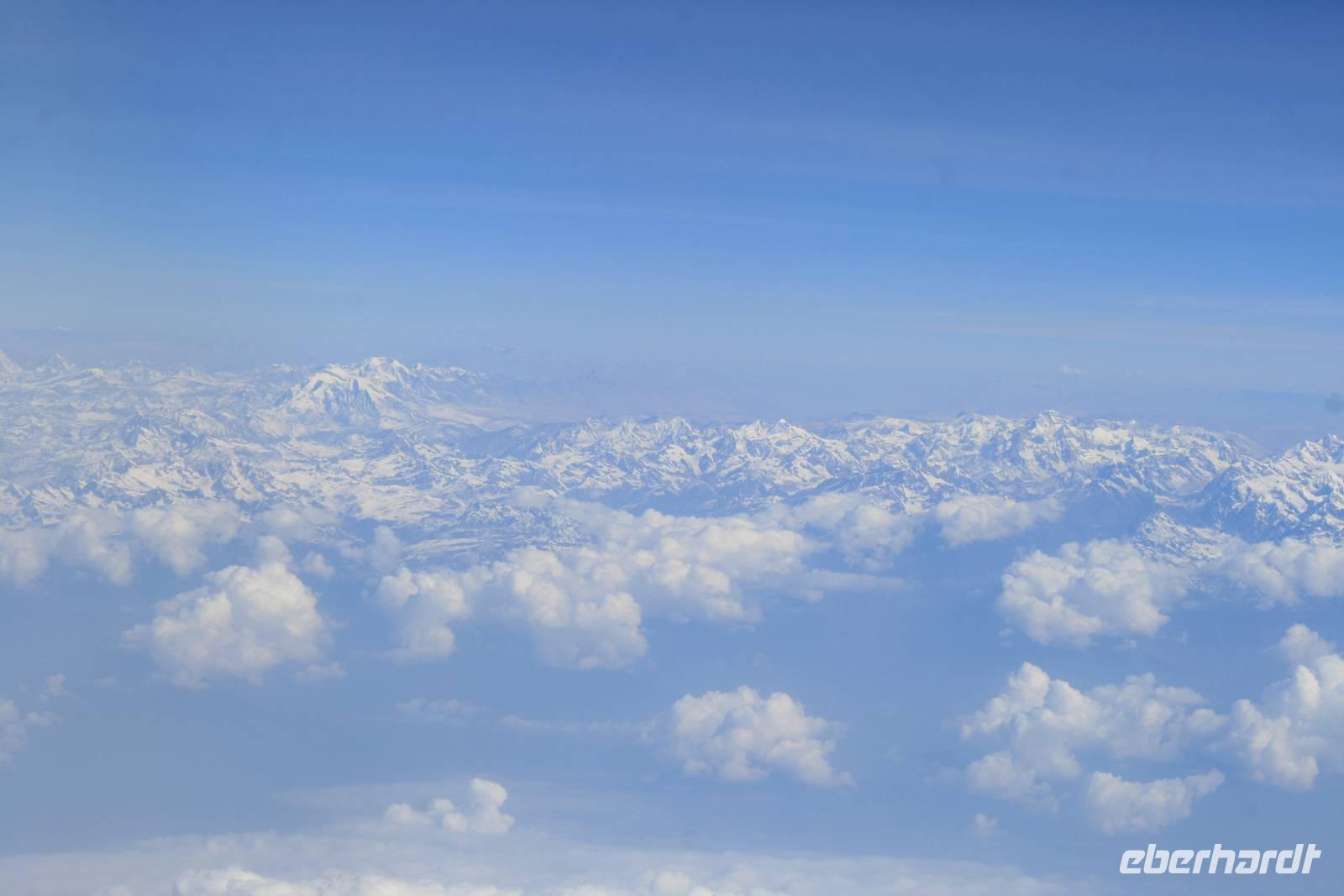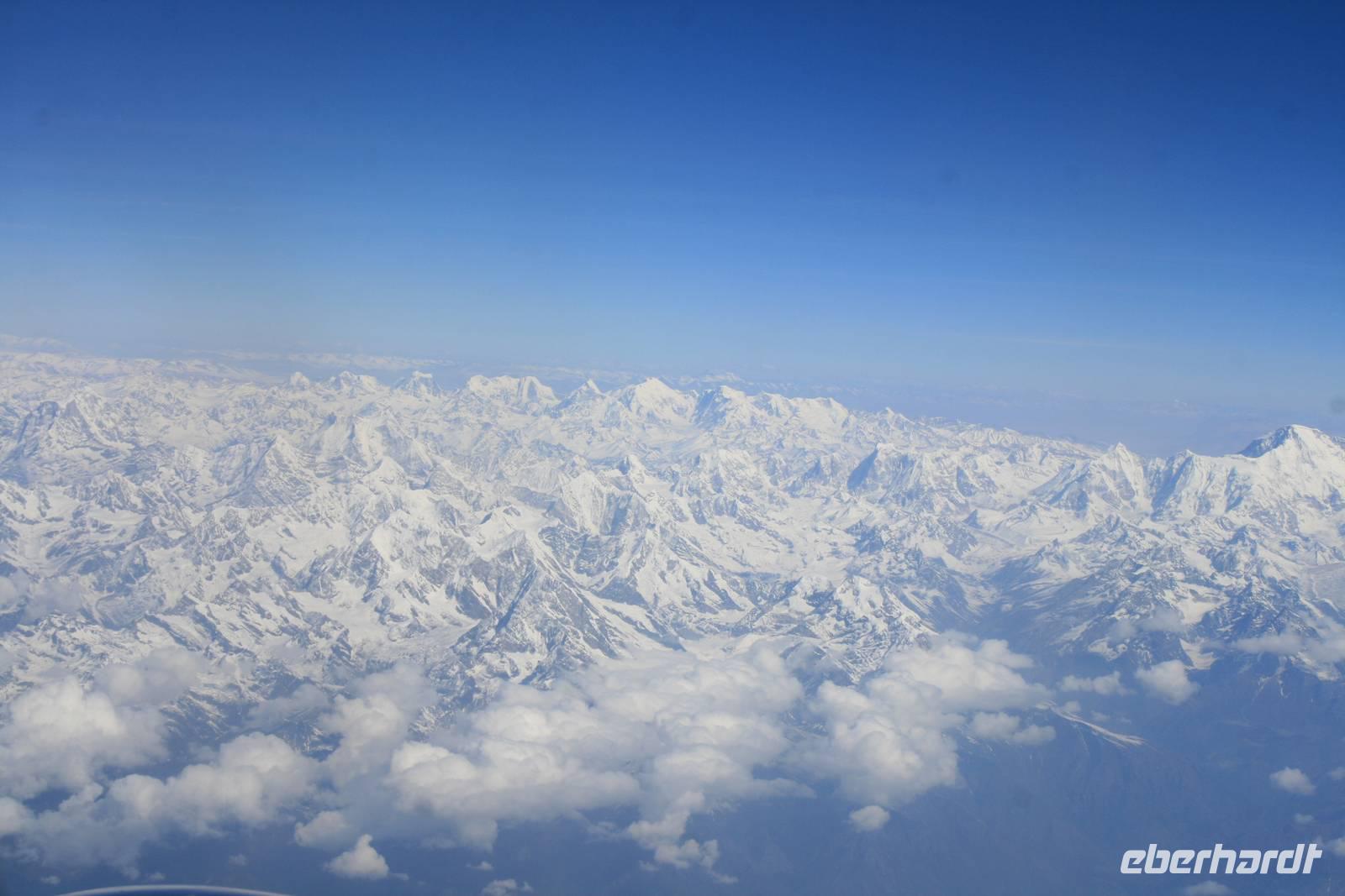 Am Morgen trafen sich die ersten Reisefreudigen meiner 15-köpfigen Nepal und Bhutangruppe am Flughafen in Dresden. Bereits beim Informationsabend und bei den Telefonaten an den Vortagen konnten letzte Fragen geklärt werden und so freuten wir uns sehr auf unsere gemeinsame Reise und auf unser Abenteuer Nepal und Bhutan. Nach einem weiteren Halt mit unserem Reisebus an der Raststätte Klettwitz, fuhren wir direkt weiter nach Berlin-Tegel, wo wir pünktlich und sicher ankamen und auch herzlich unsere Mitreisenden in Empfang nahmen. Die Reisepässe mit den zugehörigen Visa und die Vordrucke für die Einreiseformulare waren schnell verteilt und so checkten wir gemeinsam voller Vorfreude am Schalter der Turkish Airlines ein, in der Hoffnung, dass all unser Gepäck auch Kathmandu erreichen würde. Nach einem leckeren Baguette und einem Kaffee im Bistro Leysieffer am Flughafen Berlin-Tegel, begaben wir uns zu unserem Abfluggate und flogen pünktlich zu unserer ersten Station nach Istanbul. Hier angekommen, stellten wir unsere Uhren bereits eine Stunde vor und fanden auch schnell unser Weiterfluggate nach Kathmandu. Mit etwas Verpätung flogen wir mit einer Flugzeit von ca. 7 Stunden und einer Zeitverschiebung von weiteren 3:45 Stunden weiter nach Kathmandu. Einige hatten schon etwas Bammel vor der Landung, nach der Schlagzeile der Turkish Airlines Maschine vor einigen Tagen, aber wir landeteten sicher und konnten unterwegs sogar den ersten Blick auf die Annapurna-Gebirgskette werfen.