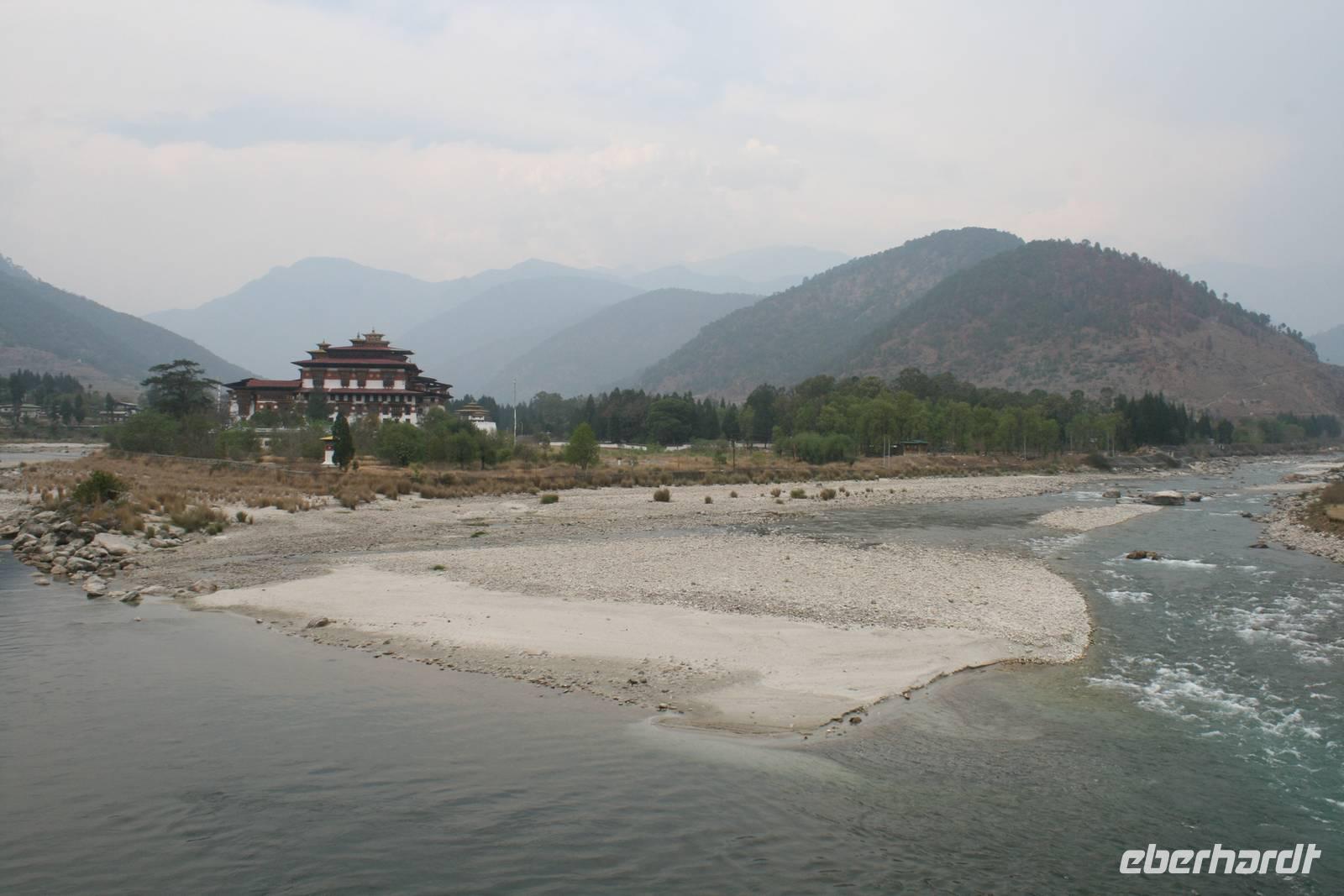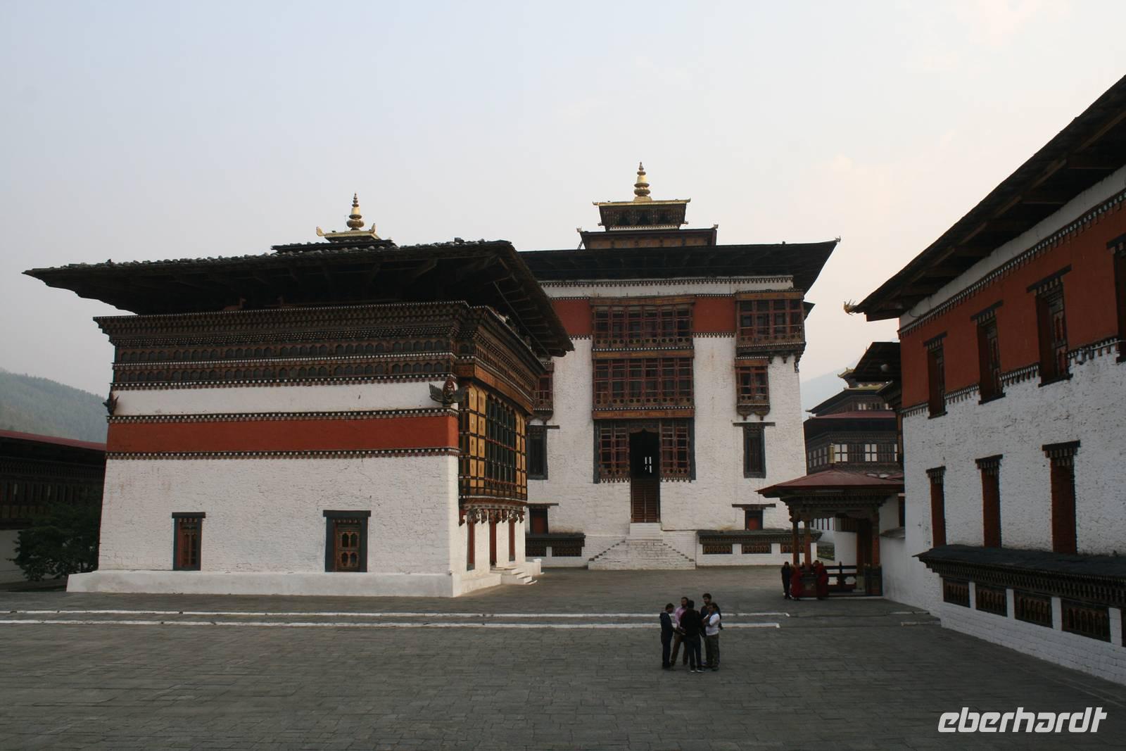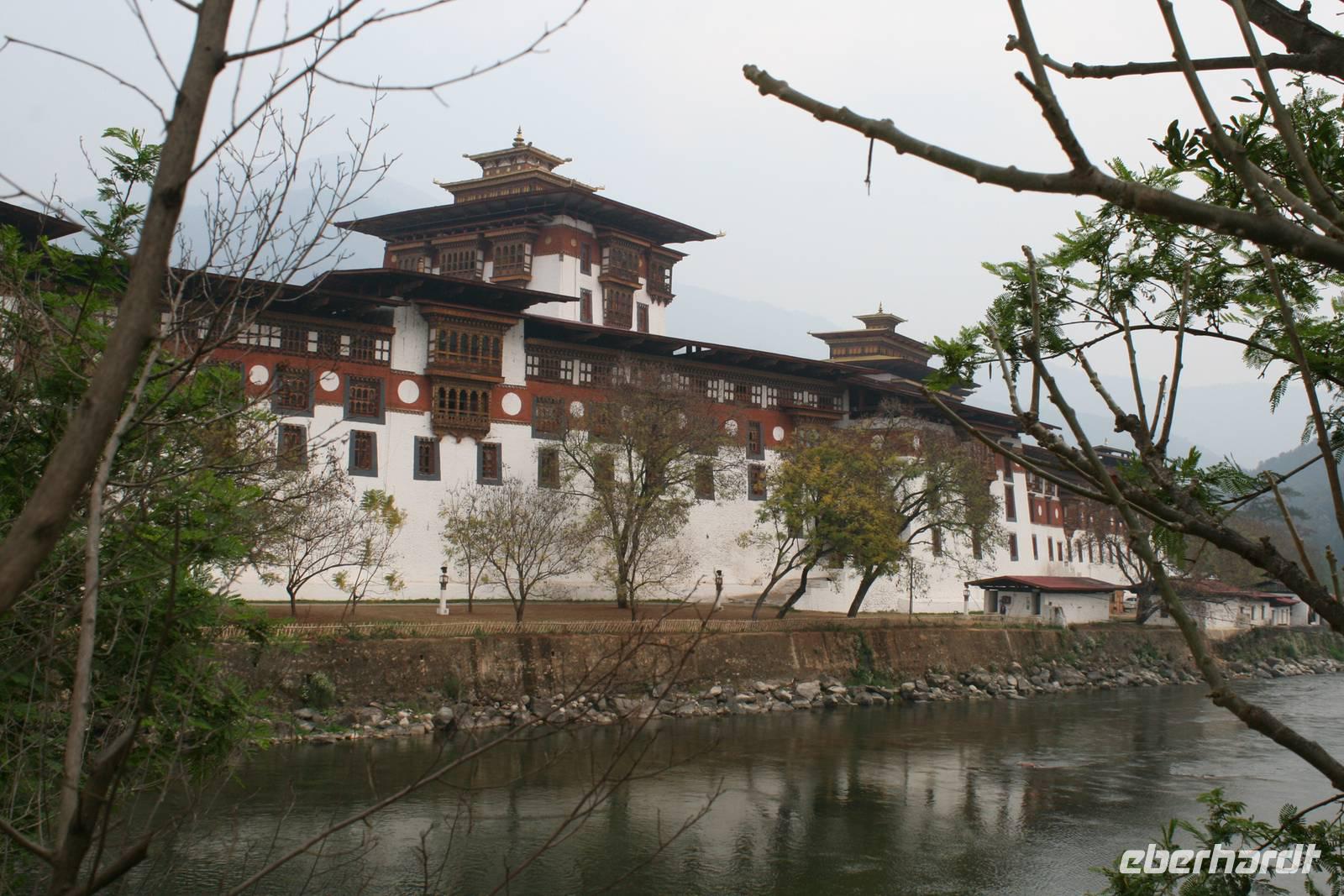 Heute heißt es Abschied nehmen von Nepal und mal wieder zeitg aufstehen, denn unser Flug nach Paro ist bereits für 07:30 Uhr gebucht. Abi und unsere Busfahrer bringen uns natürlich wie gewohnt professionell und pünktlich zum Flughafen. Auf dem Weg verabschieden wir uns herzlich und hoffen natürlich, alle gesund und munter nach der Rückkehr aus Bhutan noch einmal wiederzusehen. Natürlich sollen Sie während unserer Abwesenheit auch entsprechende Aufgaben erfüllen: Briefmarken kaufen und Postkarten der Gäste versenden sowie schon einmal einen Rumvorrat für die Rückkehr sichern. Am Flughafen angekommen, gehen wir gemeinsam zum Schalter der Druk Air, die staatliche Fluggesellschaft des Königreiches Bhutan. Sunil, der Chef der nepalesischen Agentur, erledigt wieder alle Formalitäten für uns, so dass wir uns um nichts kümmern müssen. So müssen wir an der Passkontrolle wieder die obligatorischen Ausreiseformulare für Nepal abgeben, die alle schon von Vicky bekommen haben. Wir bekommen einen Ausreisestempel und passieren anschließend die Sicherheitskontrolle: Frauen und Männer natürlich getrennt so wie es sich gehört. Nach einer längeren Wartezeit ging es dann doch endlich los und wir flogen von Kathmandu nach Paro. Generell war der Flug aber doch etwas hektisch, da wir noch diverse Einreiseformulare ausfüllen und zudem noch unseren Snack essen mussten. Außerdem muss man bei einer Flugzeit von knapp einer Stunde nebenbei auch noch die Himalaya-Gebirgskette und den Mount Everest bewundern. Gott sei Dank konnten wir aber bei unserem Rückflug später doch noch in aller Ruhe das Panorama genießen. Einfach hat man es als Tourist nun wirklich nicht. In jedem Fall war der Anflug nach Paro spektakulär und nervernaufreibend zu gleich. Durch ein enges Tal gelang es dem Flieger dann aber doch sicher zu landen. Schon von Weitem begeisterte uns die Landschaft und die Schönheit der Gebäude, die uns in den nächsten Tagen noch erwarten werden. Am Flughafen angekommen, nutzen wir gleich die Gelgenheit um unsere Euros in Bhutanische Ngultrum, oder auch Grumgrum, wie Vicky zu sagen pflegte, zu tauschen und schon dort spürten wir die unheimliche Freundlichkeit der Einwohner. Die Regierung Bhutans verfolgt eine sehr spezielle Visapolitik. Die Einreise ist grundsätzlich nur als Tourist oder als Gast der Regierung möglich. Die Passkontrolle schnell überwunden, haben auch unsere Koffer wieder ihren Weg gefunden. Am Ausgang wurden wir herzlich von unserem Reiseleiter Jimmee und dem Chef der Agentur in ihren traditionnellen Gewändern und immer mit einem Lächeln auf den Lippen freundlich in Empang genommen. In Bhutan ist alles ein bisschen kleiner als in Nepal, so auch unser Reisebus, aber das tat der immer postiven Stimmung der Abstiegsgruppe keinen Abbruch. Da es schon etwas spät ist und unsere Mägen schon knurren, beschließen wir zunächst zum Mittagessen zu fahren. Hier wird auch die neue Biersorte Druk Lager eingeweiht und als gut und köstlich befunden. Das Essen schmeckt auch hier wunderbar und wir gewöhnen uns schon langsam an die bhutanische Lebensweise, die uns in den nächsten Tagen noch viel Freude bereiten wird. Anschließend fahren wir zunächst zum Paro Dzong und erfahren, was ein Dzong überhaupt ist. Dzong ist die Bezeichnung für buddhistische Klosterburgen in Bhutan und Tibet sowie, in kleinerem Umfang, auch in anderen tibetisch geprägten Gebieten im Himalaya. Der Paro Dzong ist eine Burg im Westen des Landes, dessen Wahrzeichen unter anderem eine massive und überdachte Holzbrücke ist. Unter anderem ist heute dort das Nationalmuseum und der Sitz der lokalen Verwaltung von Paro untergebracht. Erbaut wurde das Gebäude um 1646, allerdings wurde es im Laufe der Geschichte mehrmals zerstört und wieder aufgebaut. An der Zerstörung waren meist Brände oder Erdbeben schuld. Paro Dzong wird von vielen Bhutanesen als die ideale Form einer Burg angesehen, deswegen wurde die Architektur oft kopiert. Jimmee erklärt uns auch auch, wie man sich in einem Dzong richtig verhält und was erlaubt ist und was nicht. Immer wenn man zum Beispiel die Schuhe ausziehen muss, darf man auch nicht fotografieren. Tolle Eselsbrücken, die uns weiterhelfen. Außerdem hat er auch immer kleine Zettel für uns parat, die uns helfen, die Gebäude und damit verbundene Geschichte besser zu verstehen. Wir sind alle sehr begeistert. Generell fällt uns auch schnell auf, dass hier noch alles viel traditionneller ist, als in Nepal und vor allem ruhiger. In jedem Fall kann es nicht daran liegen, dass in Bhutan generell viel mehr Männer als Frauen leben. Von Paro führt uns unser Weg weiter nach Thimphu. Die Stadt, mit einer Bevölkerung von 79.115 Einwohnern, ist die Hauptstadt des Himalaya-Königreichs. Die Stadt liegt im Westen des Landes am Fluss Wang Chu in einer Höhe von 2320 Metern. Da wir am nächsten Tag ein ziemlich straffes Programm vor uns haben, entscheiden wir uns bereits heute schon den Thimphu-Dzong zu besuchen. Er gilt als Klosterfestung und Regierungssitz der Stadt. Wir haben großes Glück, denn wir können einer Zeremonie beiwohnen und diese aus nächster Nähe betrachten. Bevor wir heute zu unserem ersten Hotel in Bhutan fahren, muss natürlich noch entsprechende Desinefktion besorgt werden. So holen Jimmee und Vicky bhutanischen Whisky und lassen Ihre Gäste gern probieren. Am späten Nachmittag erreichen wir unser hübsches "Jumolhari" Hotel in Thimphu und sind wirklich begeistert über den Fortschritt und die Sauberkeit hier. Doch eines gibt es sowohl in Nepal, als auch in Bhutan: kleffende Hunde, die tagsüber schlafen und nachts hellwach sind. Auch Sie haben uns in dieser Nacht wieder begleitet.