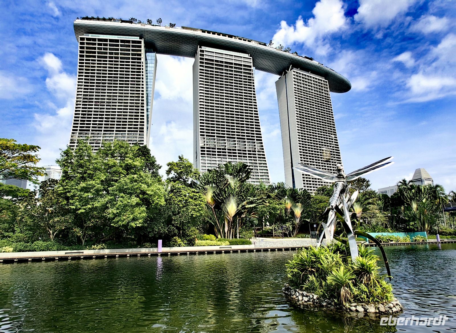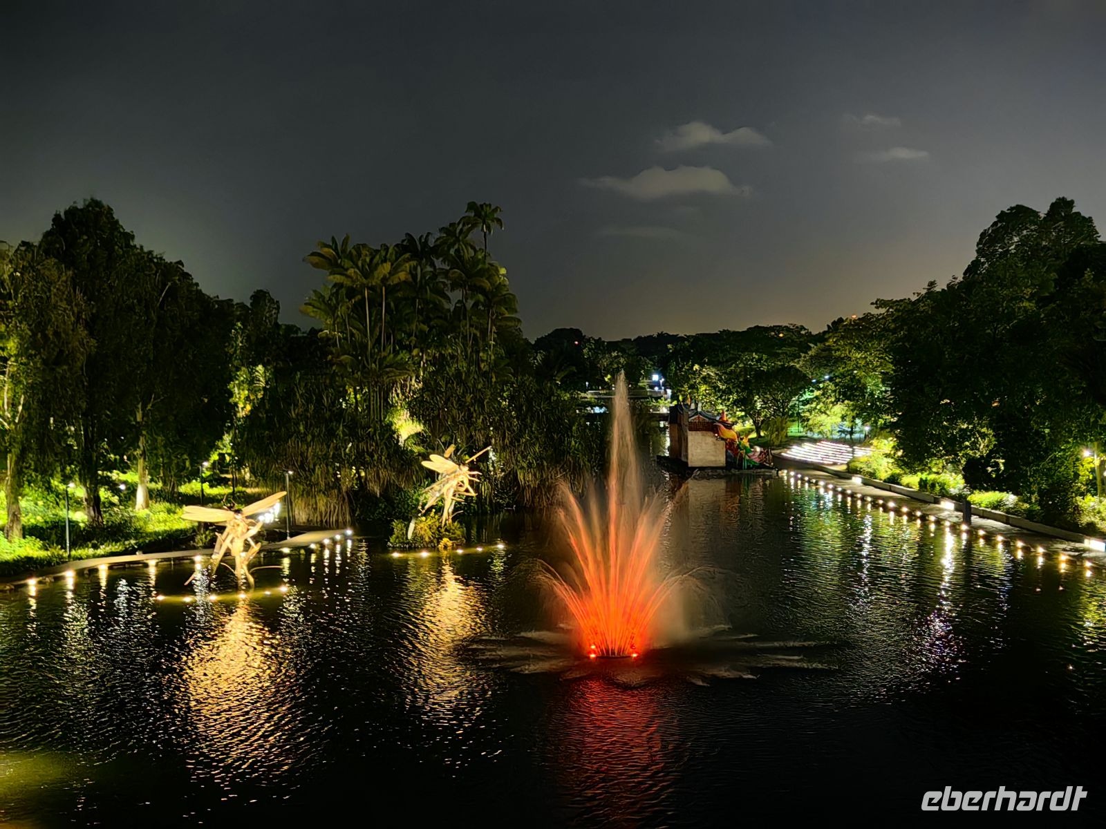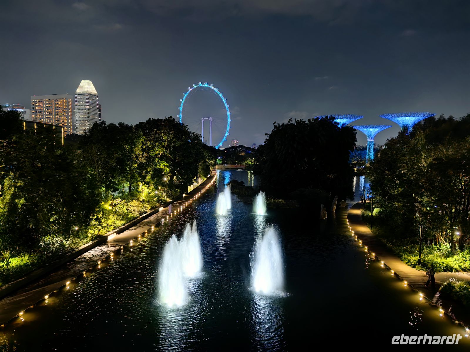 Am Abend entdecken wir die Skyline der Megacity mit ihren knapp sechs Millionen Einwohnern und sind gebannt von der Kulisse, den vielen Lichtern und natürlich der imposanten Show an den Gardens by the Bay, dem größten botanischen Garten der Welt. Wir schauen uns die riesigen stählernen hell beleuchteten "Bäume" an und lauschen chinesischen und indischen Popmelodien. Danach laufen wir durch das berühmte Marina Bay Sands Hotel und sind von der schieren Größe, dem Luxus, den vielen Lichtern, der absoluten Sauberkeit und der Freundlichkeit der Menschen hier begeistert. Die Handykameras laufen heiß und wir genießen das Spektakel.