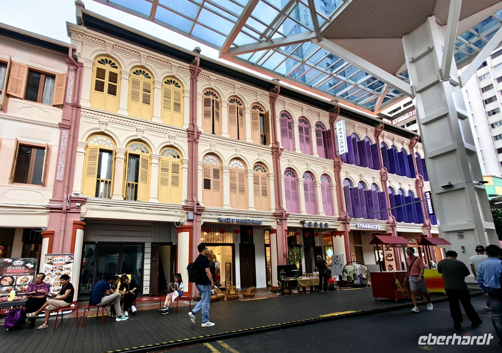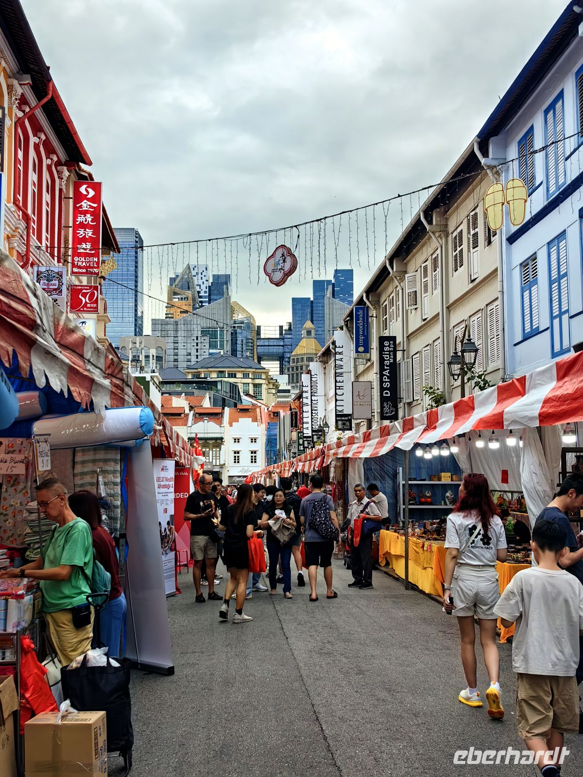 Mittlerweile ist es schon Nachmittag geworden und unsere Mägen melden sich. So kommt uns der Besuch im Hawker Center in China Town gelegen und wir versuchen uns an den hervorragenden Dim Sum, den gefüllten Teigtaschen, chinesischen Nudelgerichten, indischen Currys oder am Eisstand. Hier essen auch die Einheimischen gern, es geht schnell, alles wird frisch zubereitet, man zahlt wenige Dollar und die Gerichte sind sehr schmackhaft.