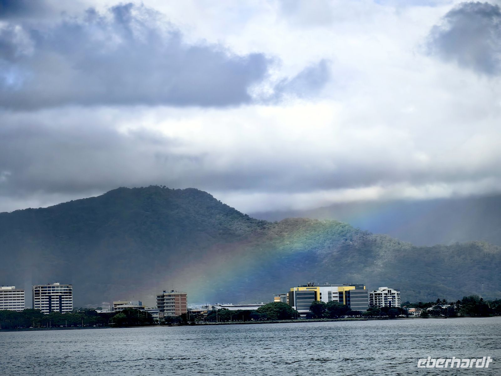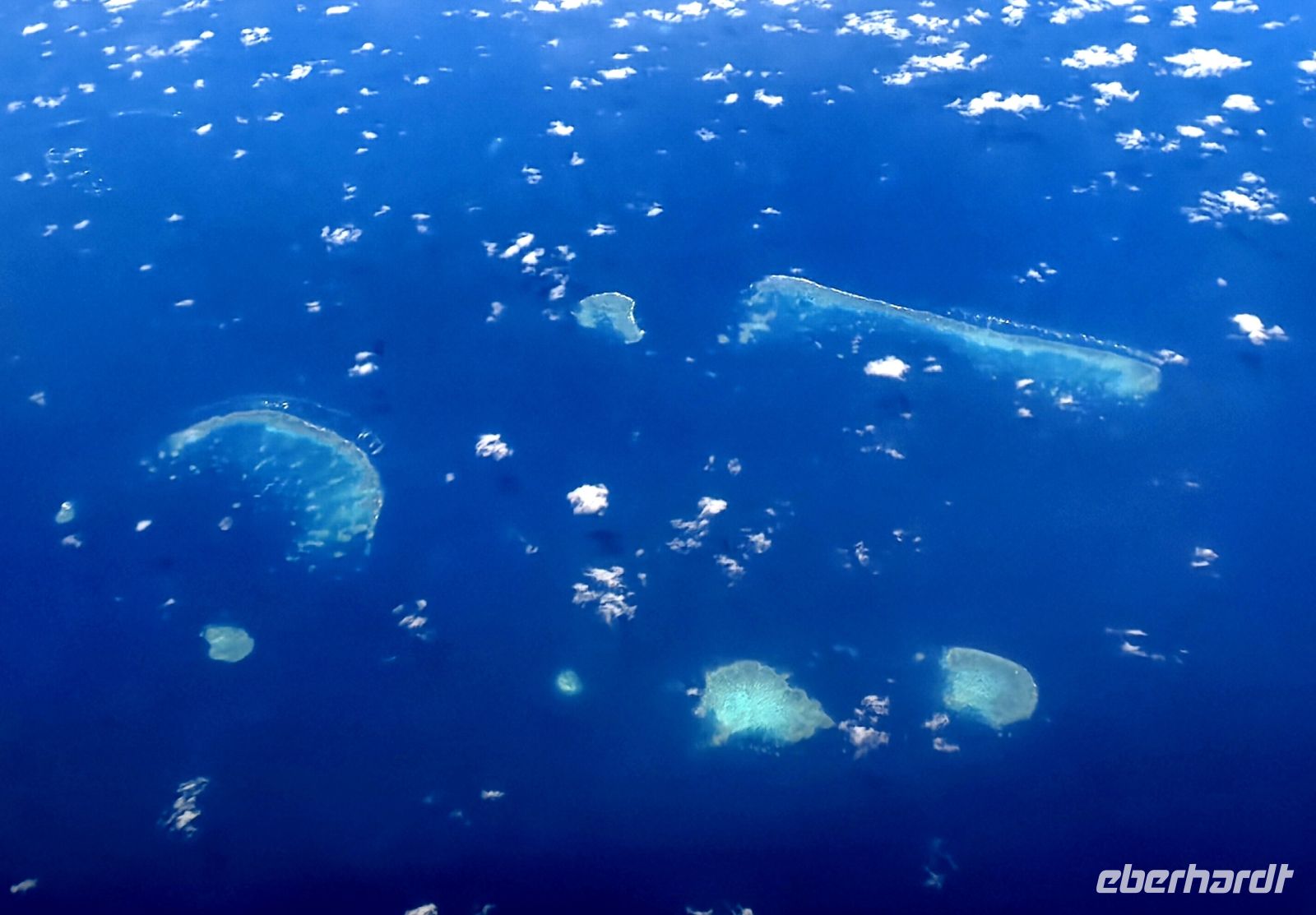 Auf dem Weiterflug nach Cairns genießen wir traumhafte Blicke auf das berühmte Great Barrier Reef und die verschiedenen Blautöne über denen teilweise Regenbögen schweben sind magisch - ein einmaliger Anblick.