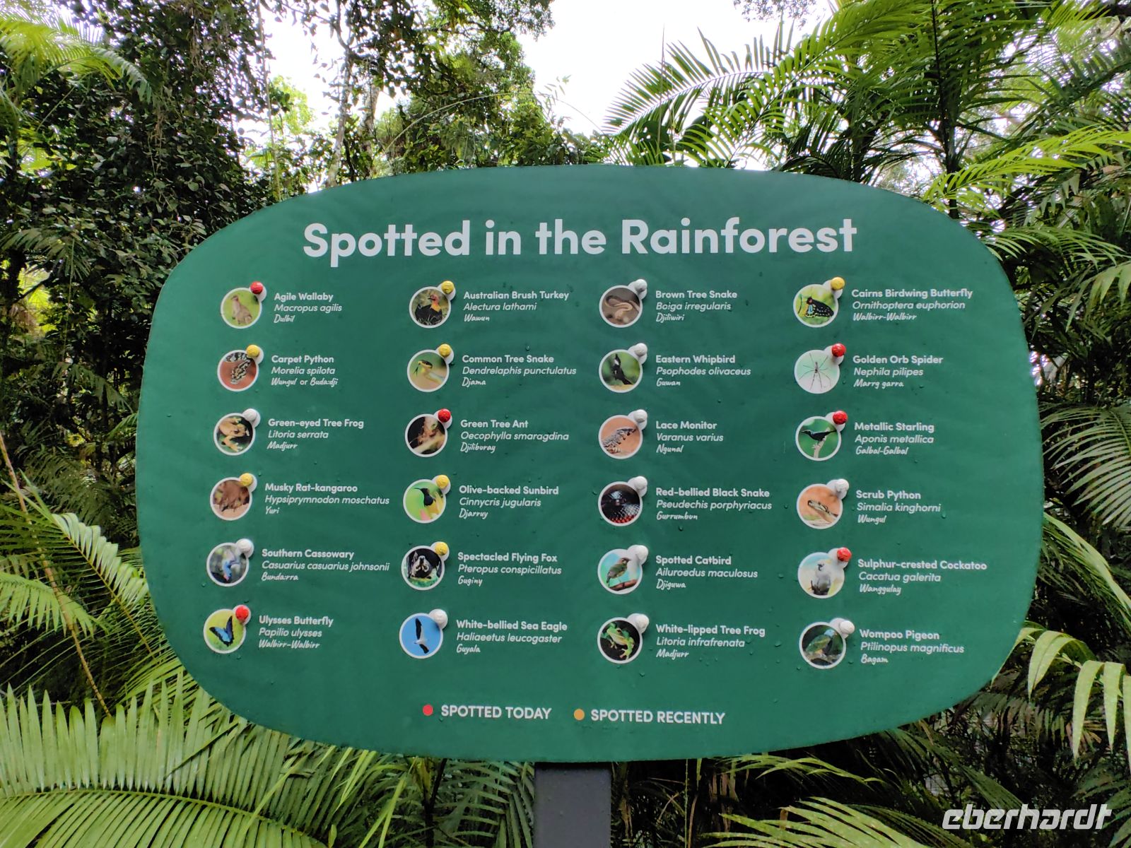 Den Nachmittag verbringen wir in dem kleinen Regenwaldort, bummeln über den Handwerkermarkt und genießen einfach das Flair bevor wir uns am Nachmittag zu einem recht viktorianisch anmutenden Bahnhof begeben, von wo aus wir mit einem nicht weniger englisch aussehenden nostalgischen Zug mitten durch den Regenwald zurück nach Cains fahren.