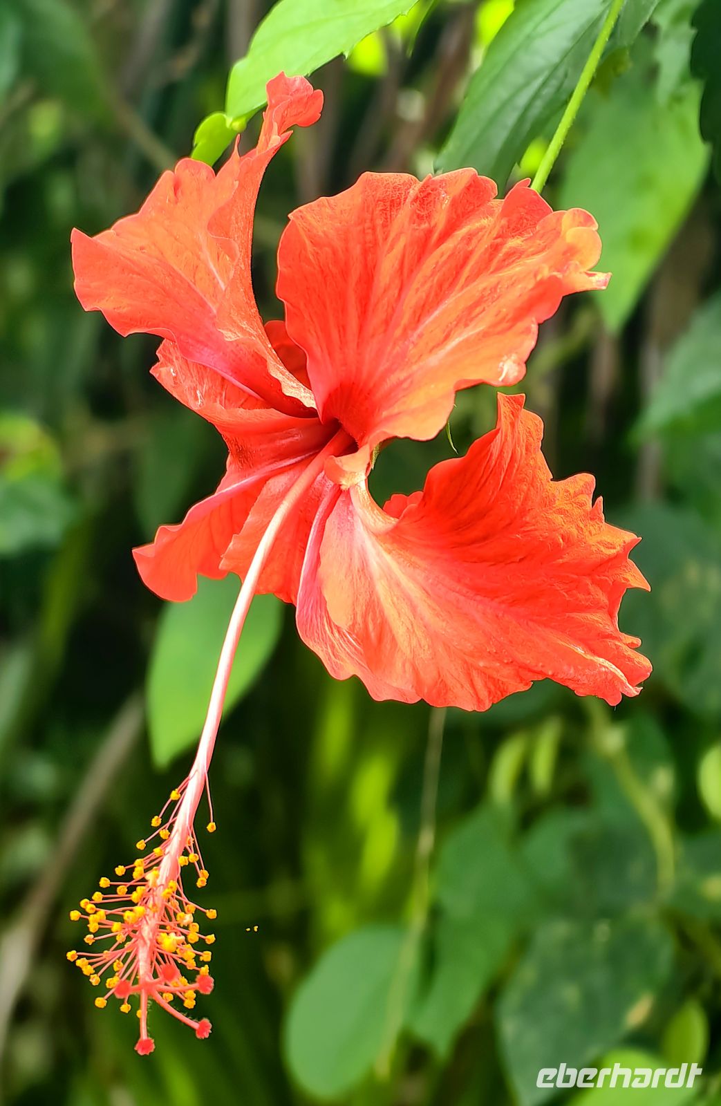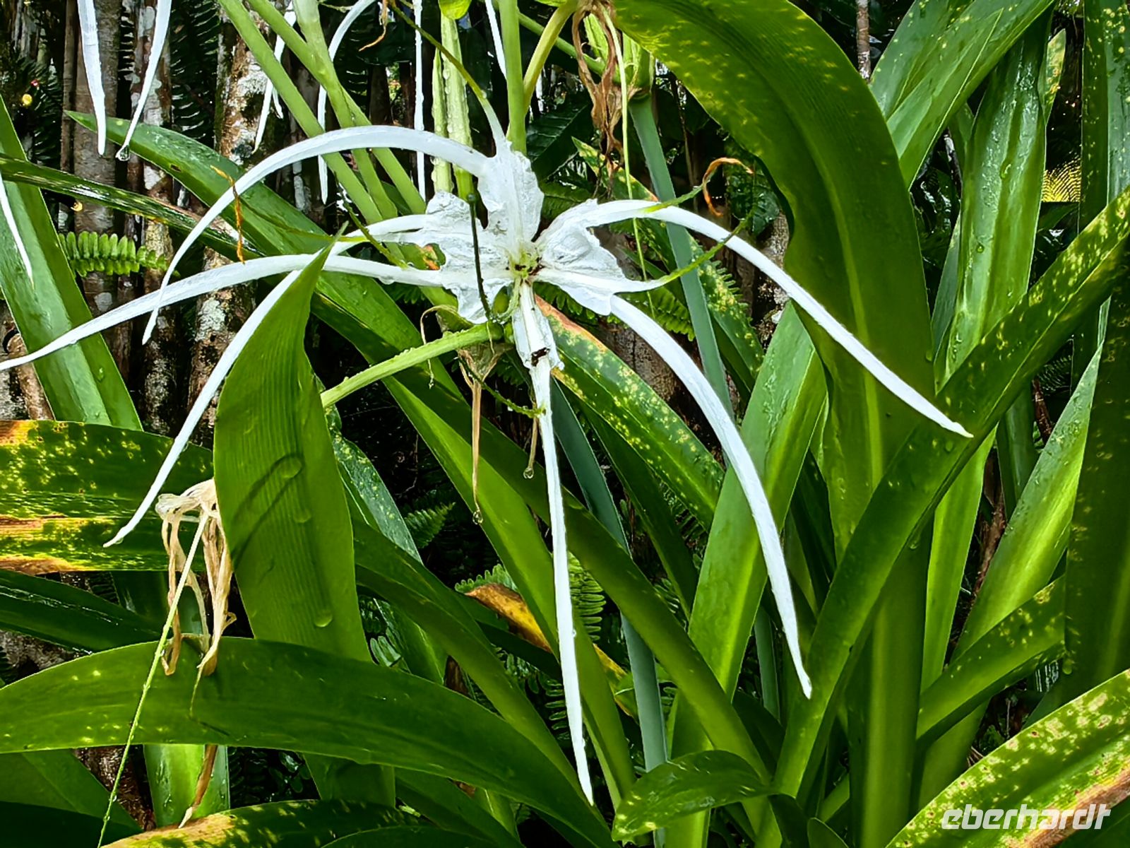 Am Mittag machen wir uns gemeinsam mit Alvin auf den Weg zum Botanischen Garten, der sich auf Orchideenzüchtungen spezialisiert hat. Hier wuchern diese wunderschönen Gewächse regelrecht, hängen in meterlangen Rispen an Wasserfällen oder begrünten Wänden herunter, wir haben das Glück, einen Waran und sogar einen Eisvogel im Dschungeldickicht zu entdecken und die Orchideen sind unbeschreiblich, besonders die Draculaarten. Sogar ein stark gekühltes Gewächshaus gibt es, welches für die Sorten errichtet wurde, die das tropische Klima nicht vertragen.
