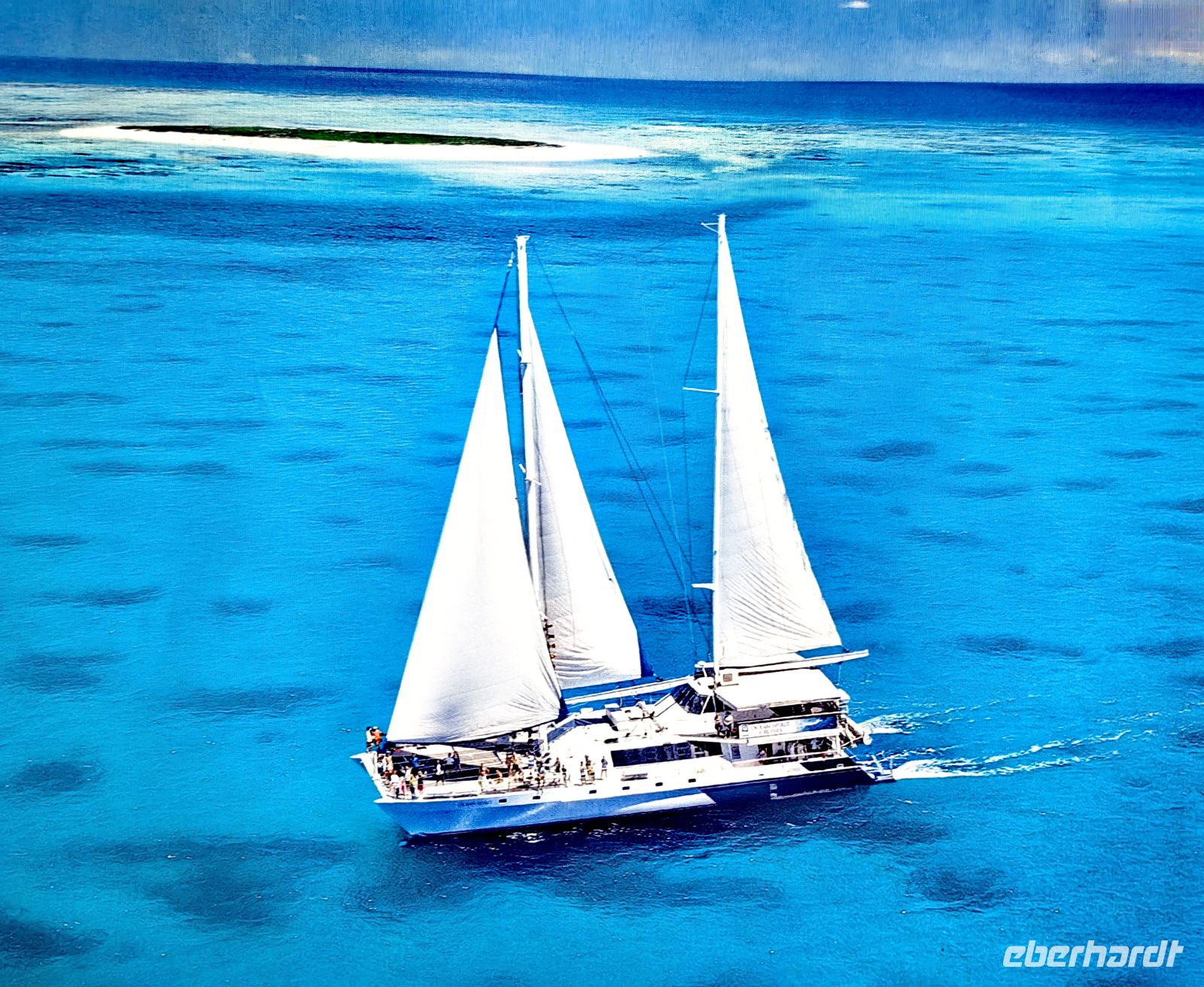 Zum Mittag kehren wir voller Eindrücke zum Katamaran zurück und stärken uns erst einmal am Mittagsbüffet, bevor wir am Nachmittag gemeinsam mit einer Art U-Boot erneut über das Riff gleiten, diesmal mit Motorkraft. Aus den Fenstern sehen wir die beeindruckenden Korallen nochmal aus nächster Nähe und hier kommen auch die Gäste auf ihre Kosten, die am Vormittag nicht mit geschnorchelt sind.