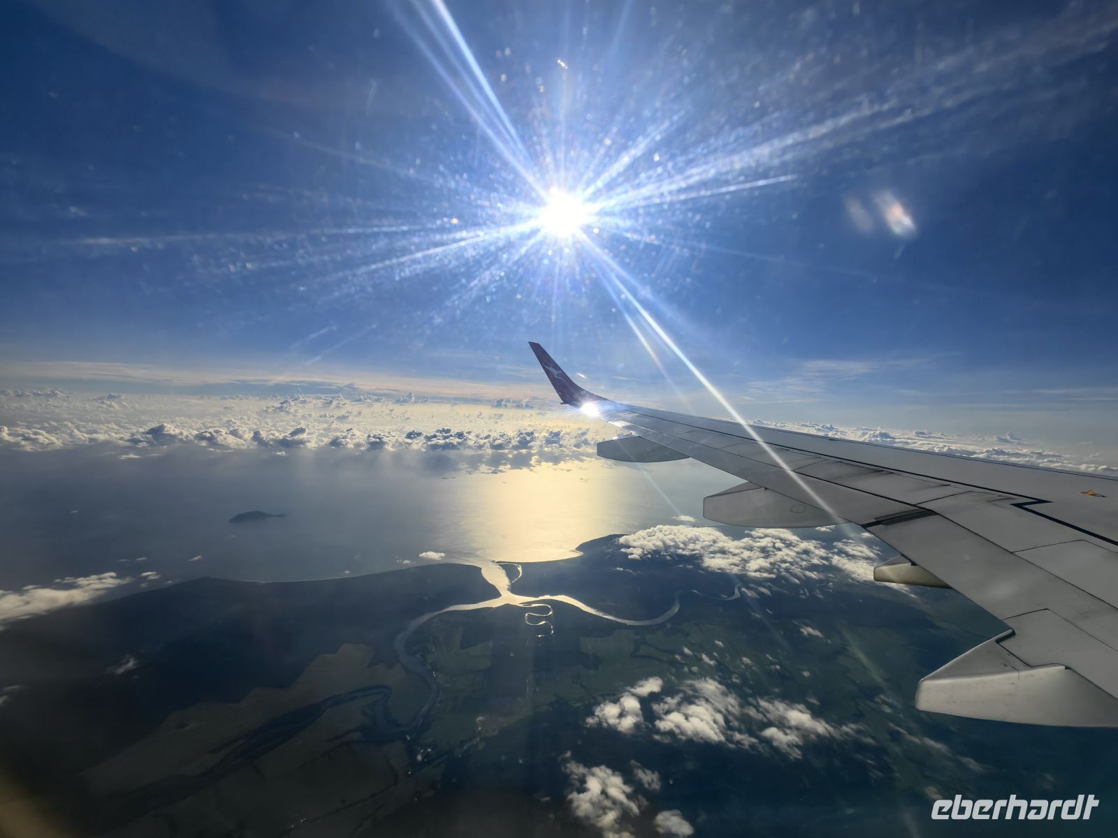 Am Abend geht es dann endlich los mit dem Check-in in die große Maschine der Singapur Airlines, uns erwarten ein umfangreiches Entertainmentprogramm, leckeres Abendessen und eine ruhige Nacht, zwar im Sitzen, aber dafür gut gesättigt.