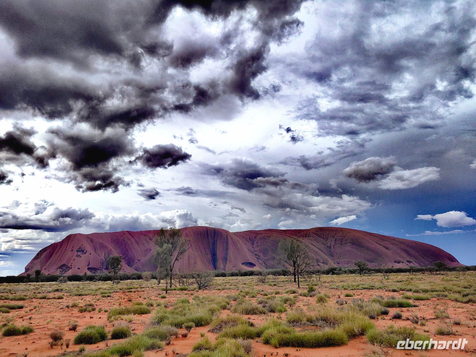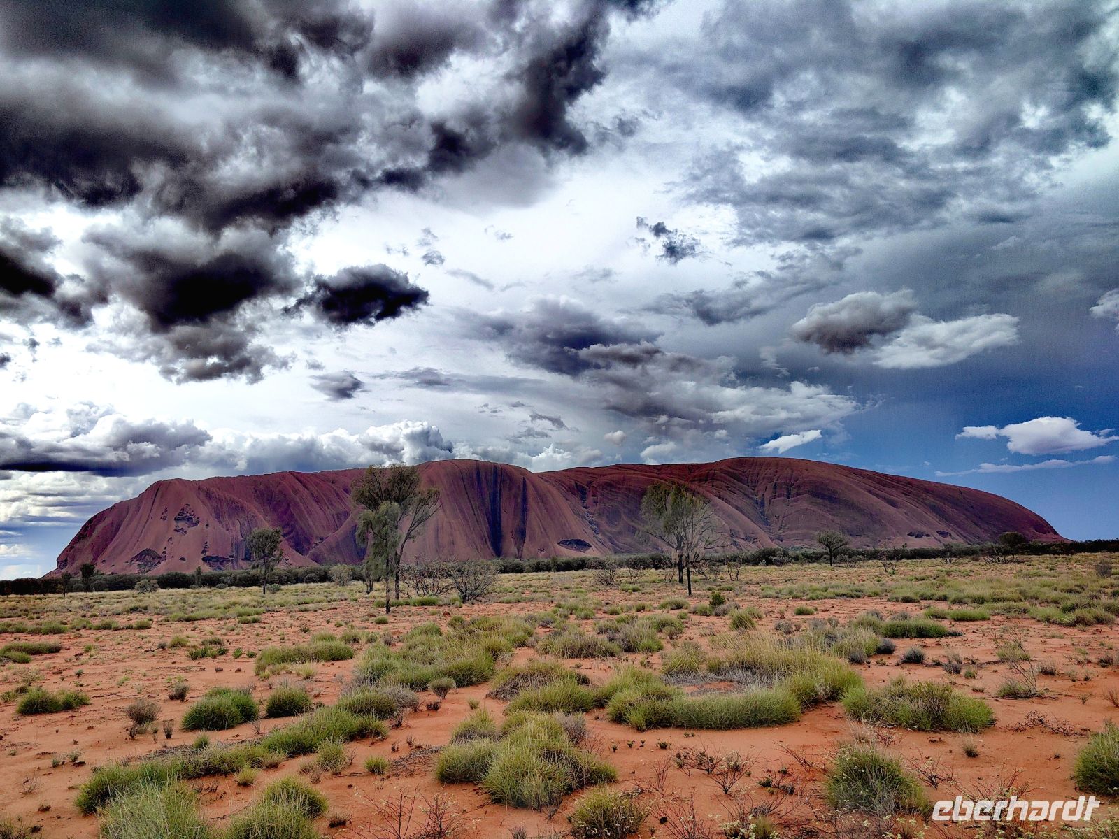 Für die Ureinwohner ist dieser riesige Sandstein mitten in Australien ihr wichtigstes Heiligtum und die UNESCO hat ihn zum Weltkulturerbe erklärt. 348 Meter dieses Giganten ragen über dem Erdboden heraus, geologische Forschungen haben ergeben, daß bis zu 16 Meter unterirdisch liegen.