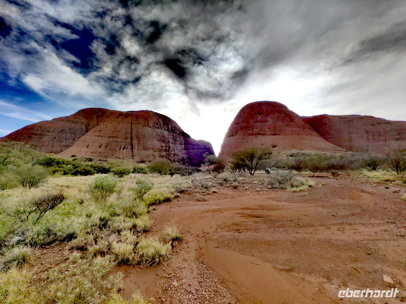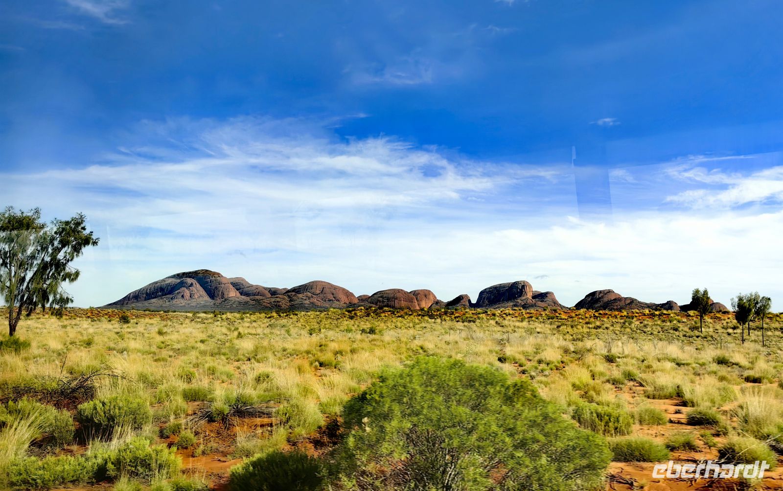Die Olgas, in der Sprache der Aborigines Kata Tjuta genannt, befinden sich im Herzen des roten Kontinents beziehungsweise in der Region Central Australia, im Süd-Westen des Nothern Territory. Sie bestehen aus insgesamt 36 markant aussehenden, kuppelförmigen Bergen, von denen der Mount Olga mit 546 Metern der höchste ist. Genau wie der 36 Kilometer westlich liegende Ayers Rock (Uluru) befinden sich die Olgas im Uluru-Kata Tjuta National Park, circa 350 Kilometer Luftlinie von Alice Springs entfernt.
