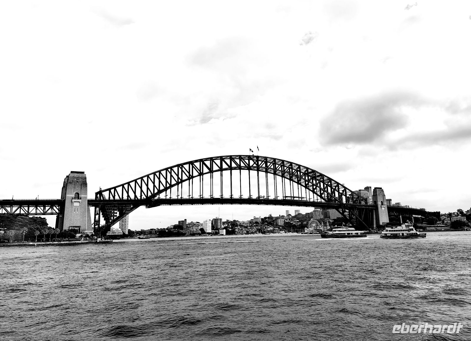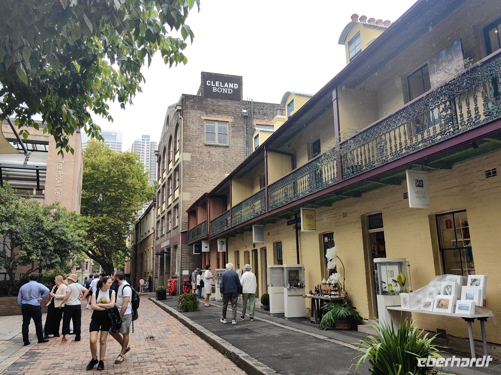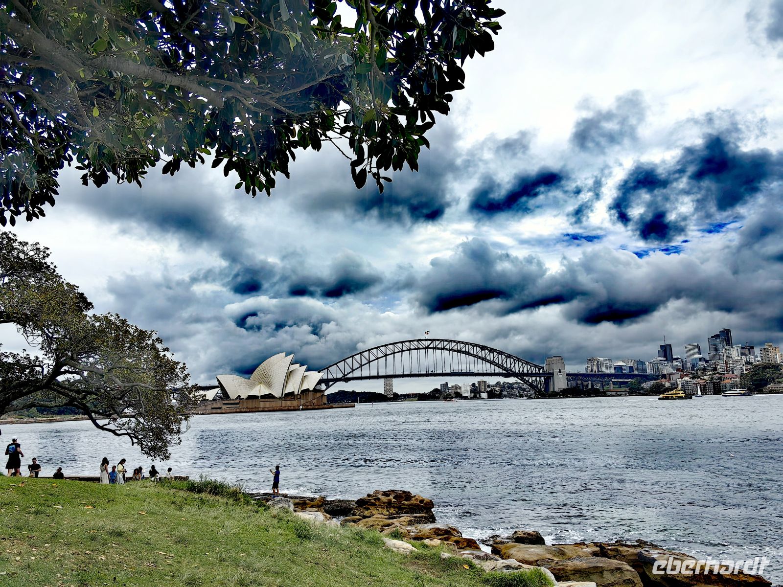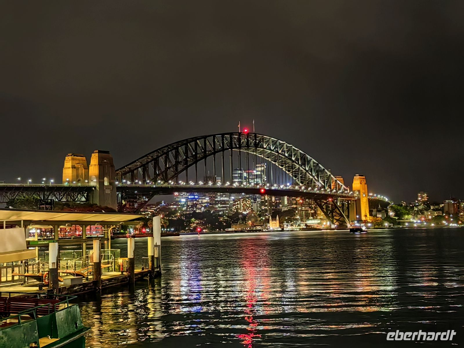 Am Vormittag erreichen wir den Hafen und erklimmen die Treppen, die auf die berühmte Harbour Bridge führen. Von hier oben genießen wir den fantastischen Ausblick auf die Skyline von Sydney und das Opernhaus. Heute sind sogar blaue Abschnitte am Himmel auszumachen und es regnet nicht! Wenig später machen wir eine Pause in The Rocks, dem ältesten Stadtviertel und genießen ein kühles Bier.