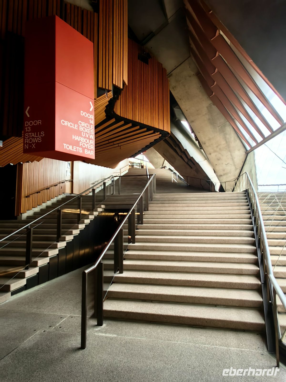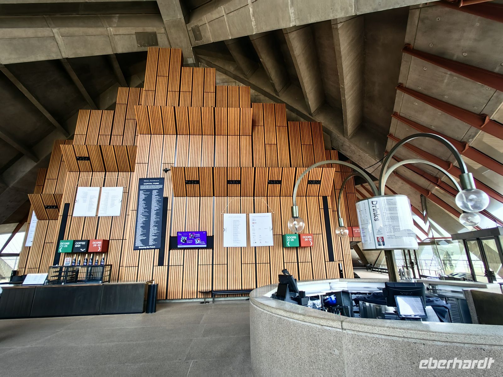 Australische Architekten und der Ingenieur Ove Arup vollendeten das gigantische Werk. Wir dürfen die verschiedenen Konzert- und Opernbühnen sehen, im Haus finden von Ballett, Oper, Operette, Musical hin zu Wrestling-Veranstaltungen und Rock- und Popkonzerten alles statt, und einige unserer Gäste haben das außerordentliche Glück noch Karten für die heutige Abendveranstaltung "Hänsel und Gretel" zu ergattern, zwei Gäste entscheiden sich für Madame Butterfly am Samstag Abend.