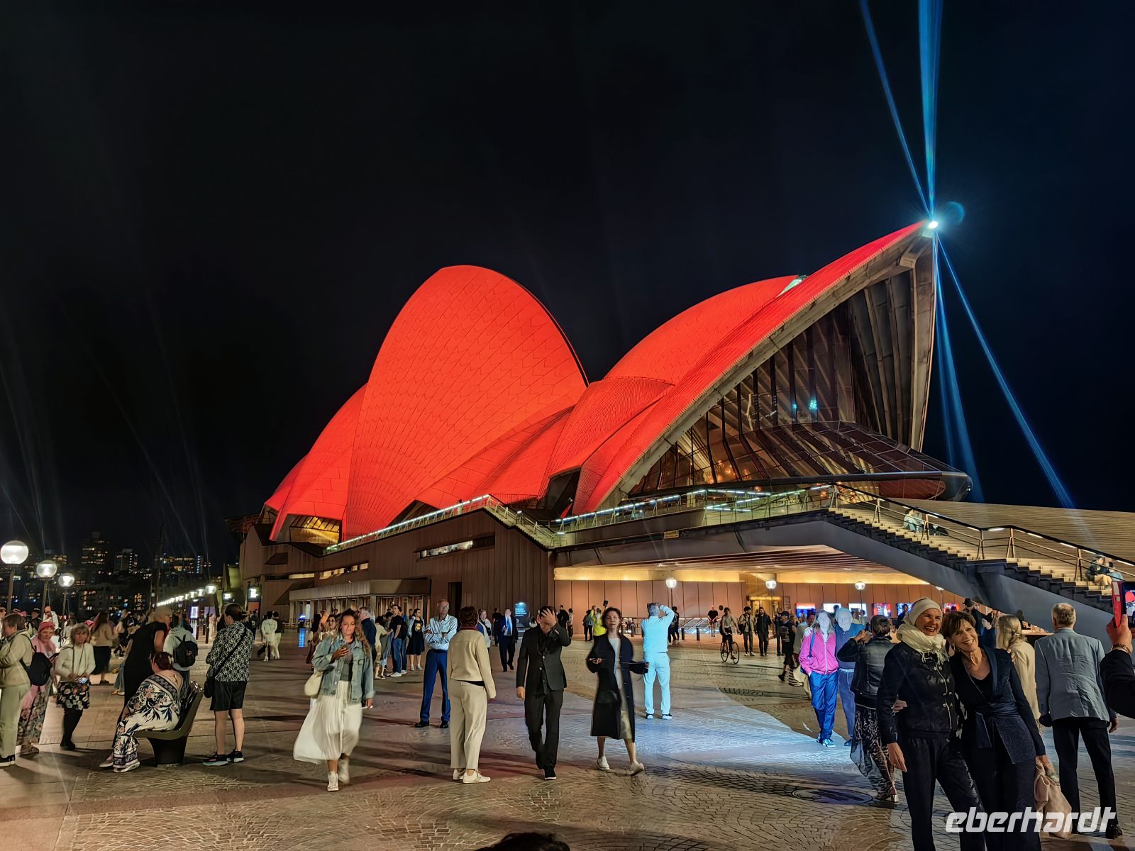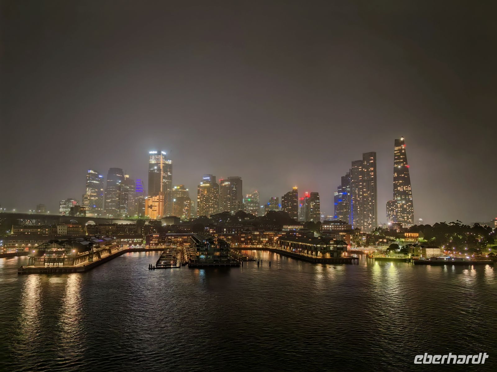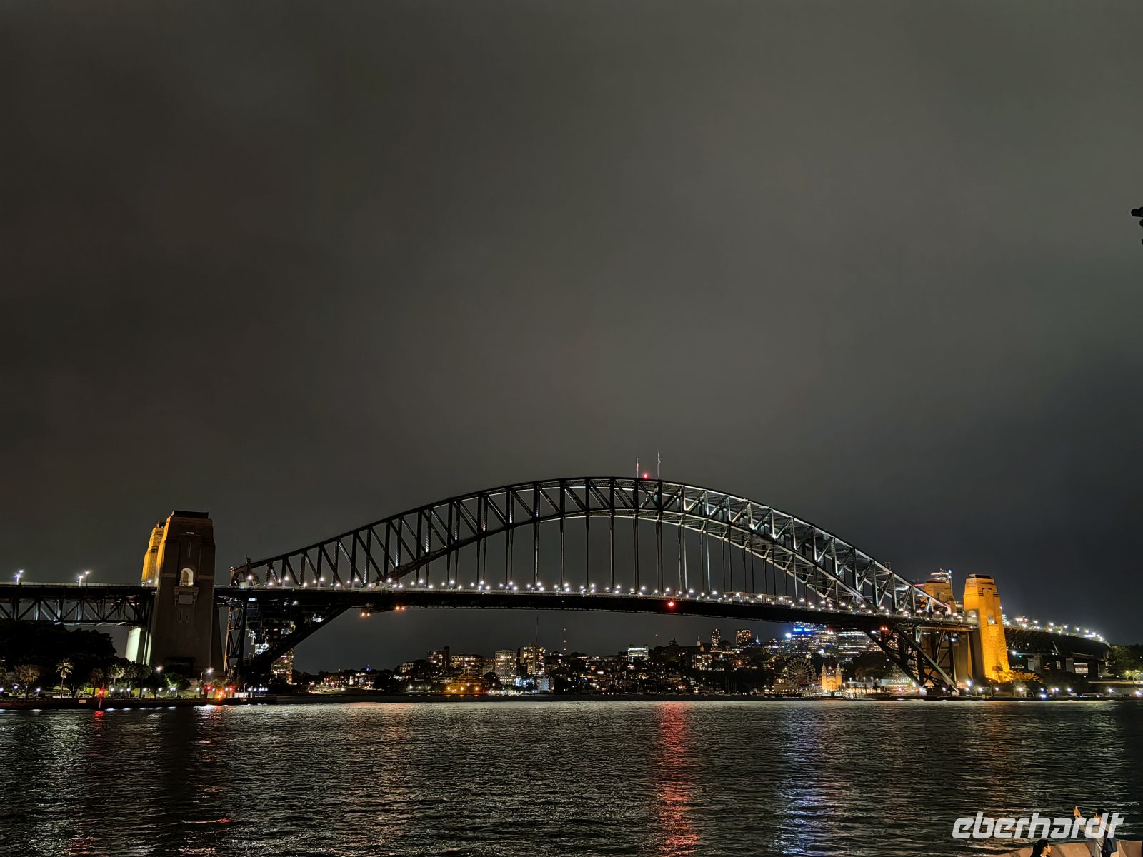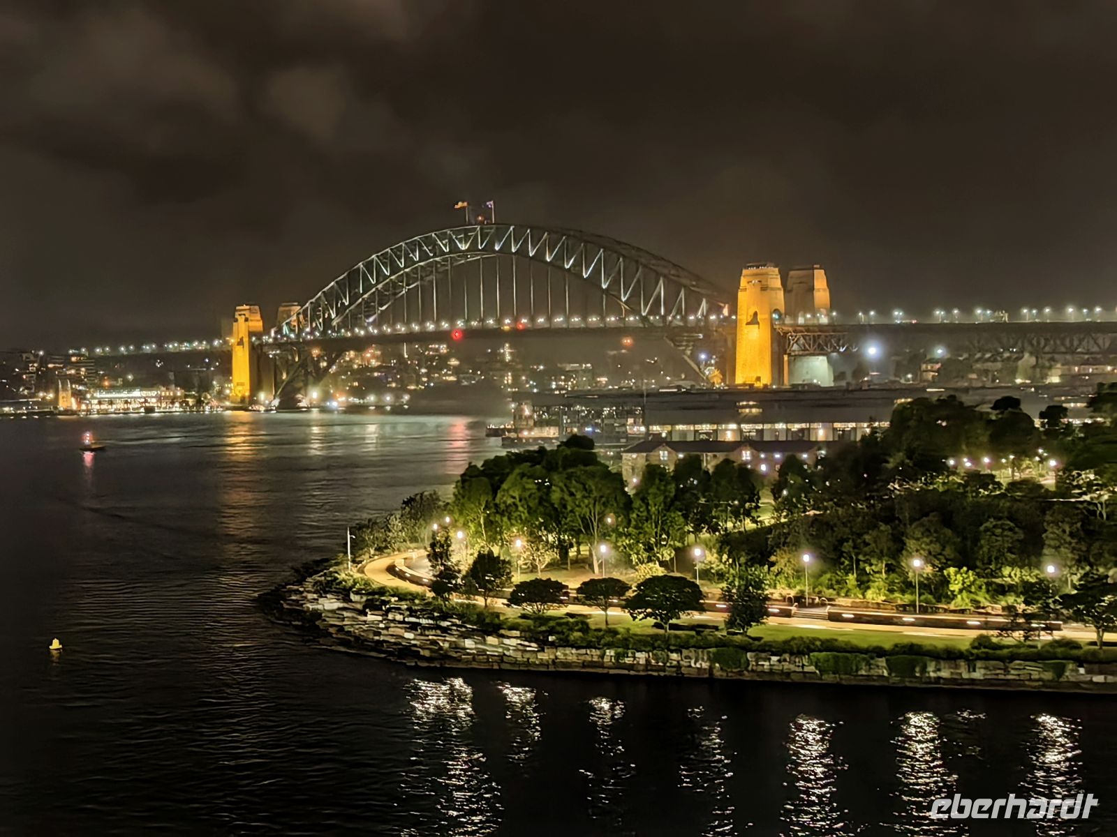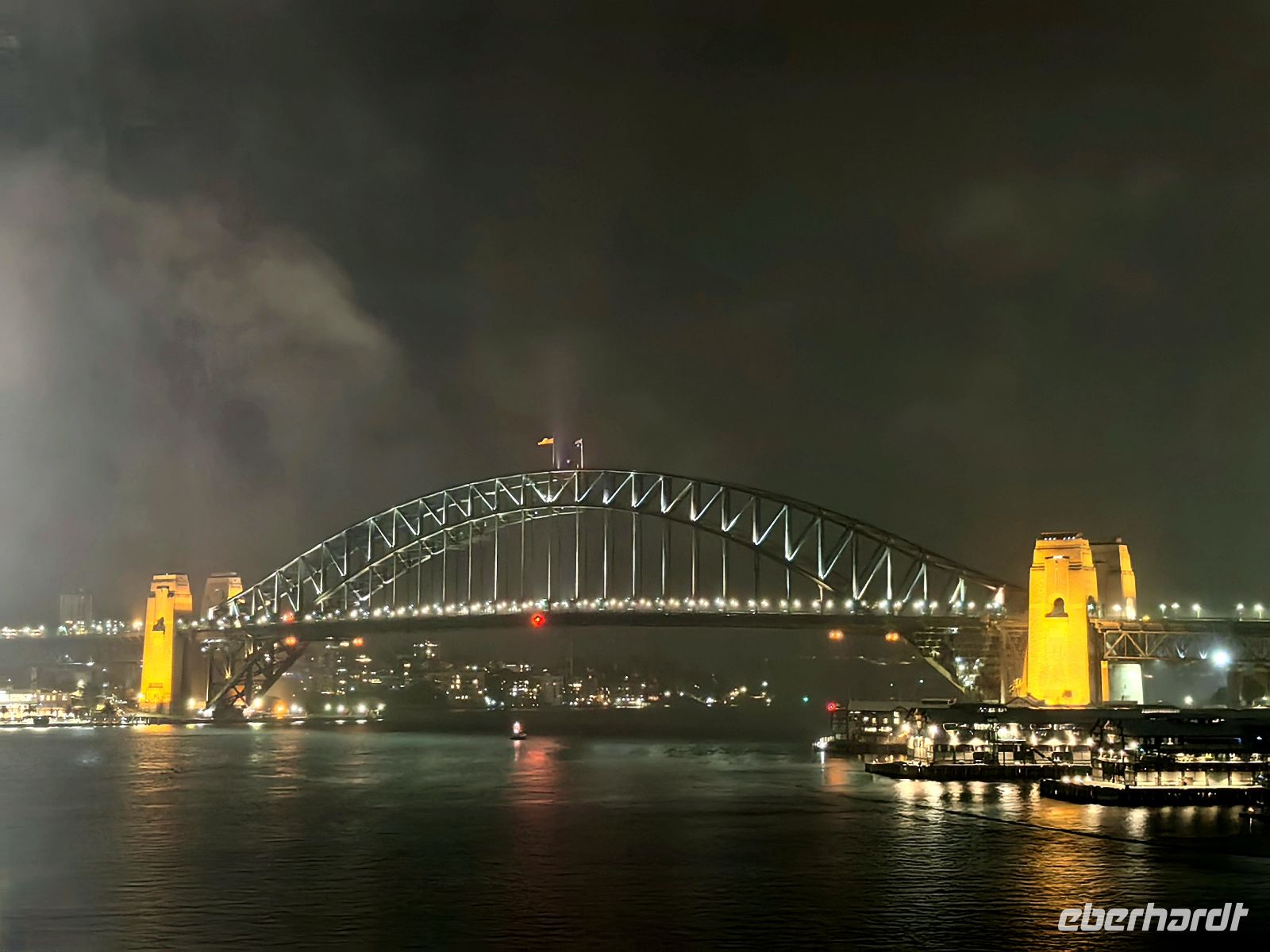 Nachdem wir alle Formalitäten erledigt haben, gehen wir gespannt auf unsere Wahlheimat für die nächsten zwei Wochen und erkunden erstmal neugierig alle Decks und Möglichkeiten. Das fleißige Personal hat in der Zeit bereits das Gepäck auf unsere Kabinen gebracht, wir genießen das erste Abendessen an Bord und als wir nachts Sydney verlassen, stehen wir mit gezückten Kameras auf den Oberdecks und dürfen das Spektakel natürlich nicht verpassen.