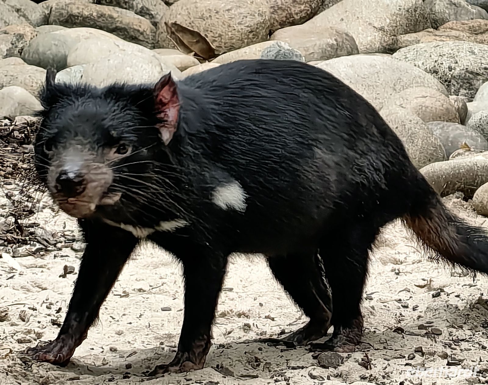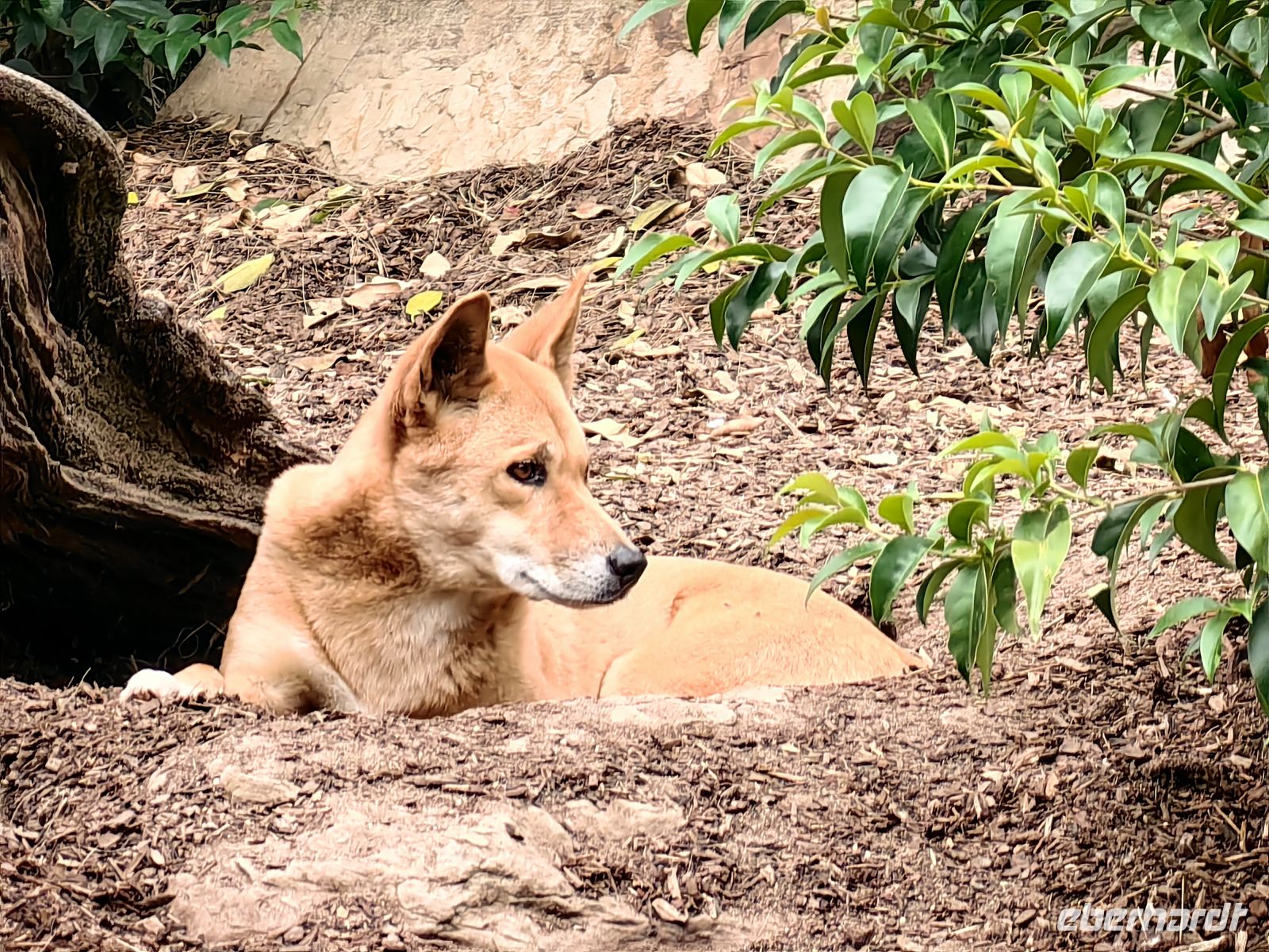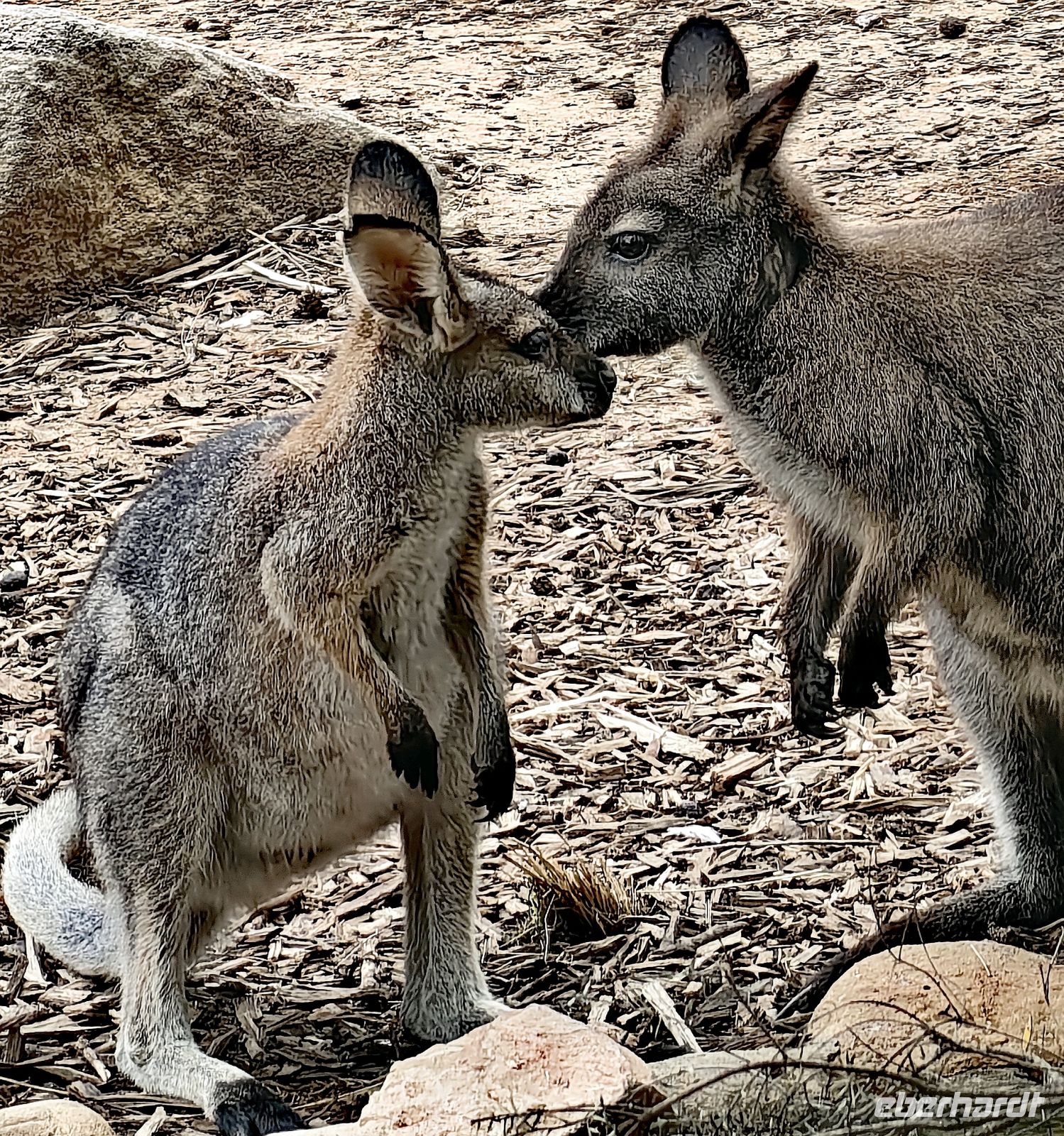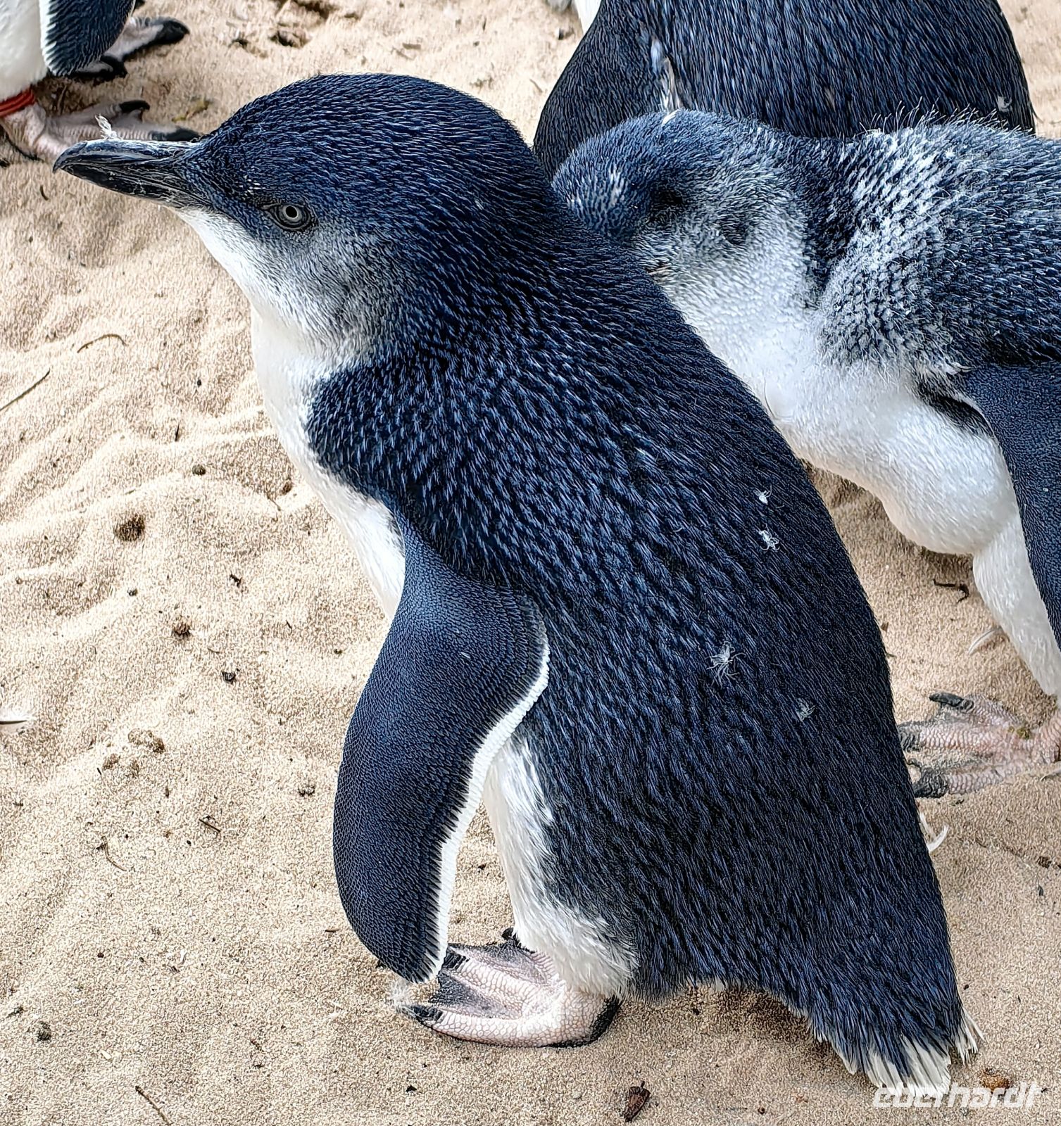 Als wir gerade beim Mittagessen sitzen, kommt ganz gemächlich ein pelziges Wombat angelaufen und läßt es sich ebenfalls an einem Busch schmecken. Wir springen alle ganz aufgeregt an die Restaurantfenster und machen Fotos. Nach dem Essen gehen wir in die Galerie hinüber und direkt vor dem Eingang sucht ein Kurzschnabeligel nach Ameisen und läßt sich durch uns überhaupt nicht stören. Dieser putzige Gesell ist nur in Australien und Tasmanien beheimatet.