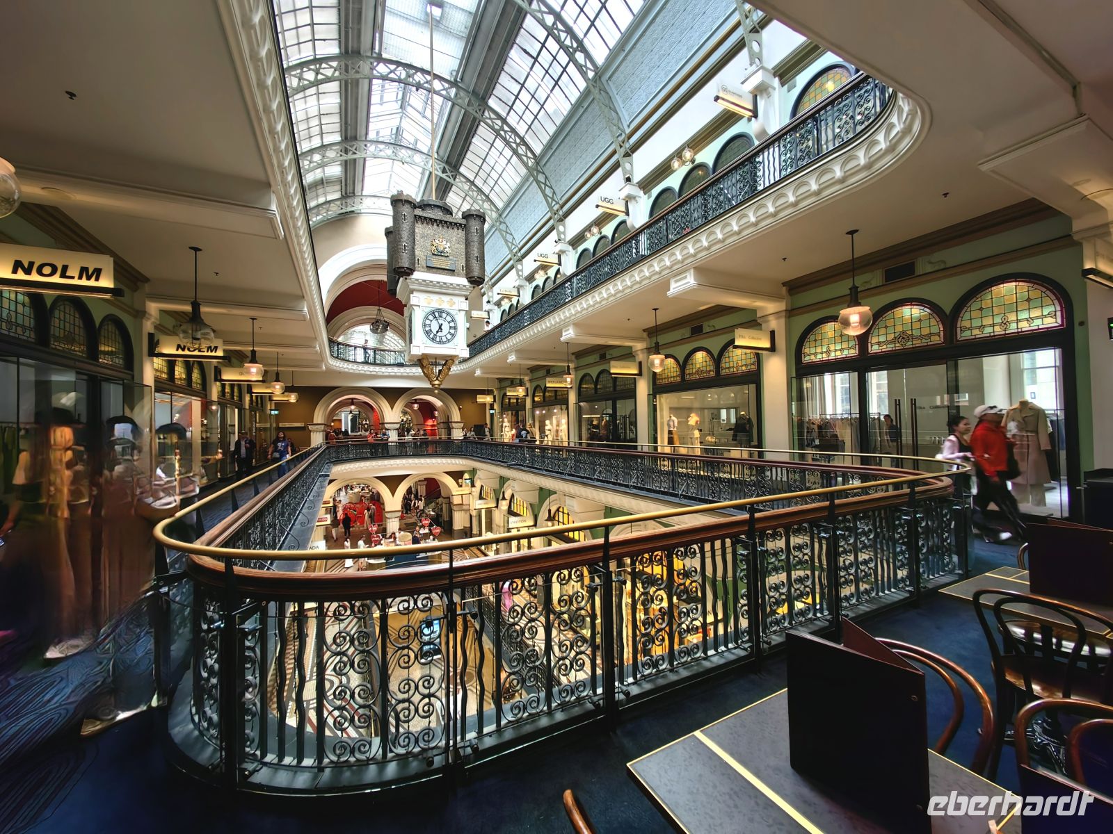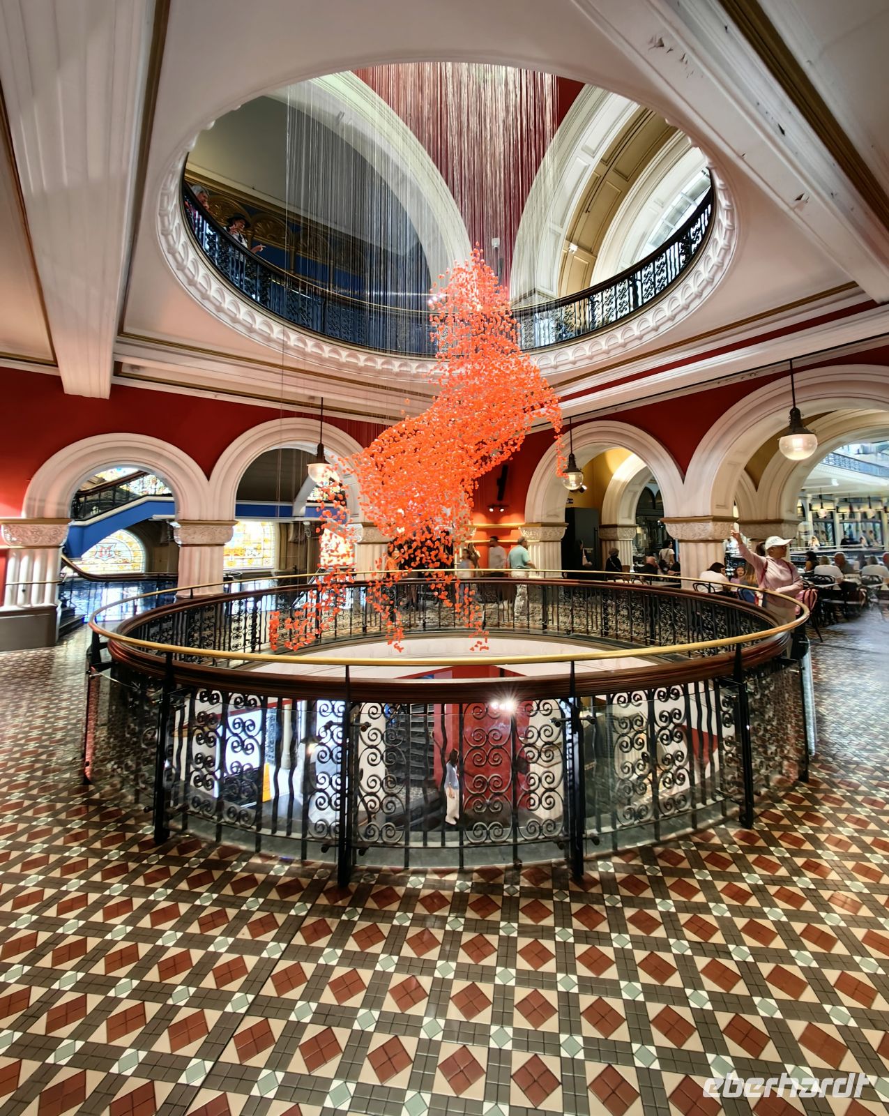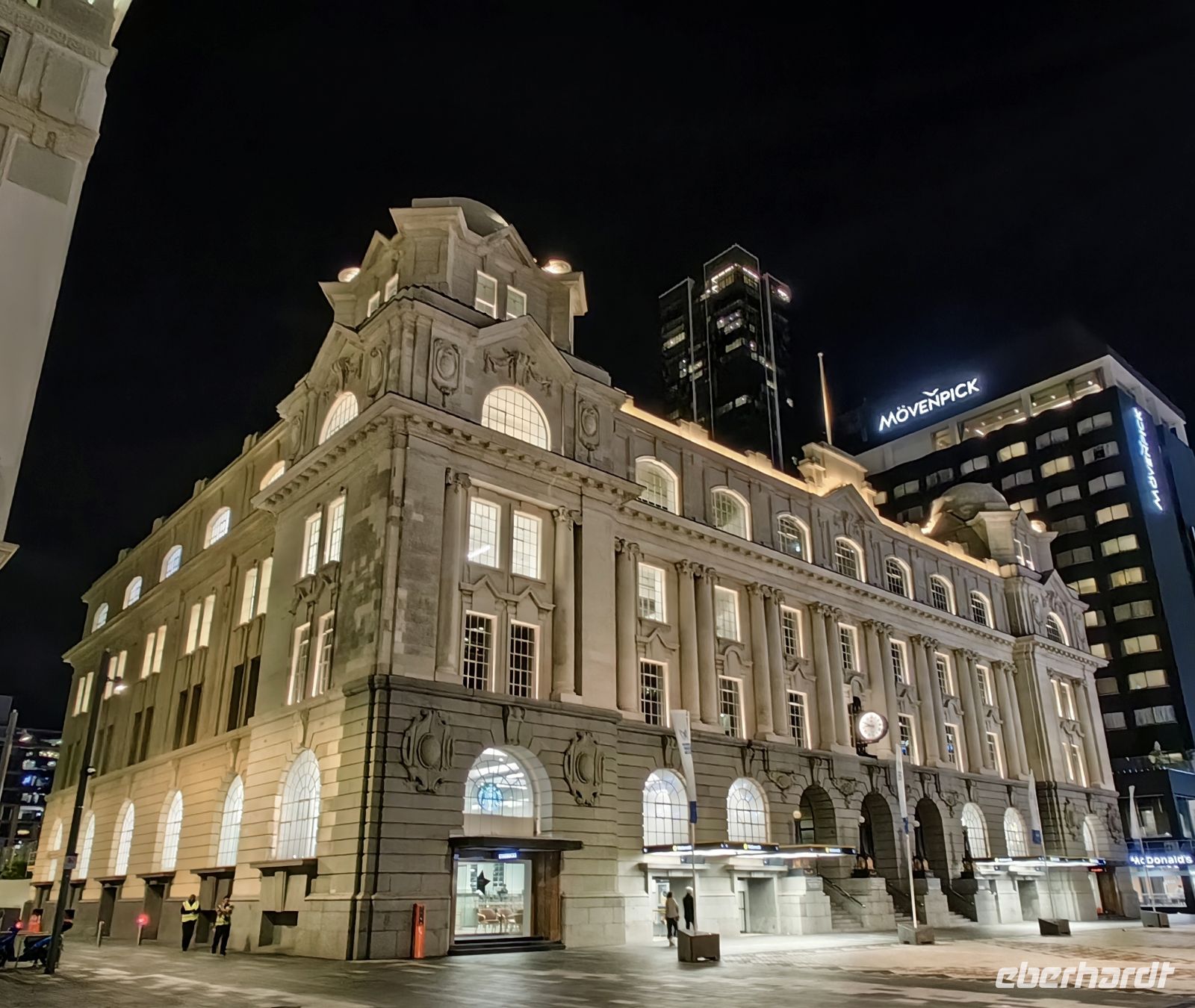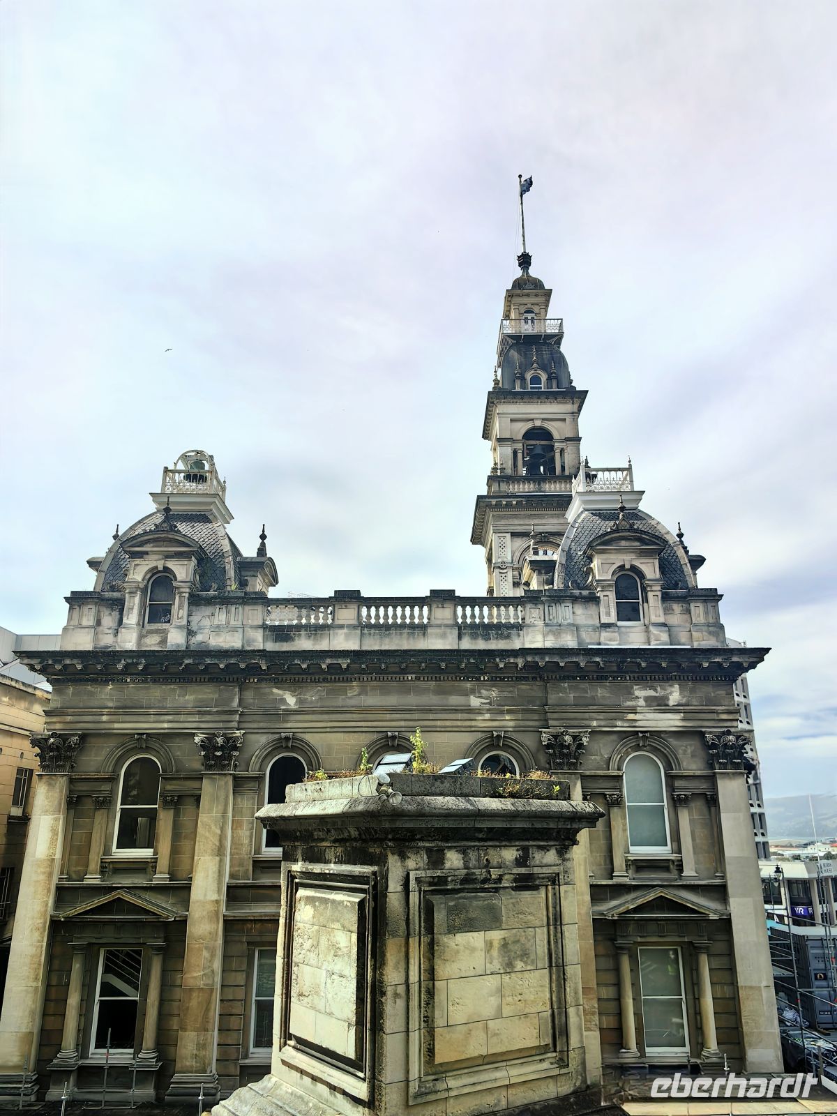 Mit einer kleinen Gruppe macht Simone sich auf und läuft zum Rathaus und dem Queen Victoria Building, einem viktorianisch anmutenden Einkaufszentrum. Dort drinnen erinnert alles an den Baustil Englands unter Königin Victoria. Farbige Scheiben, fein ziselierte Geländer, geschwungene Ornamente, typisch englische Marken wie Burberry, Barbour und Penhaligons haben hier sehr schicke Läden. Es ist ein wenig wie in Windsor und selbst die Toiletten sind stilvoll englisch royal, wie wir feststellen dürfen.