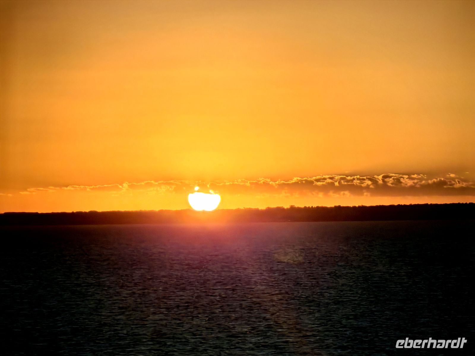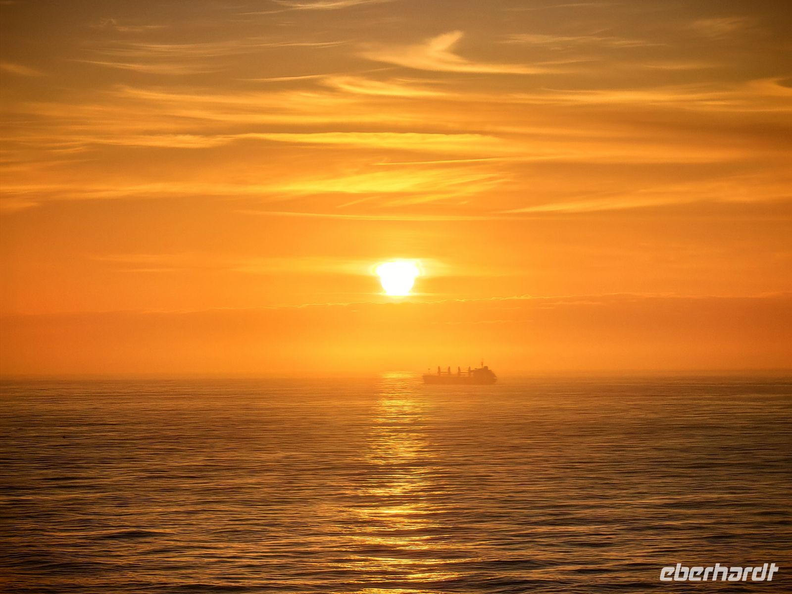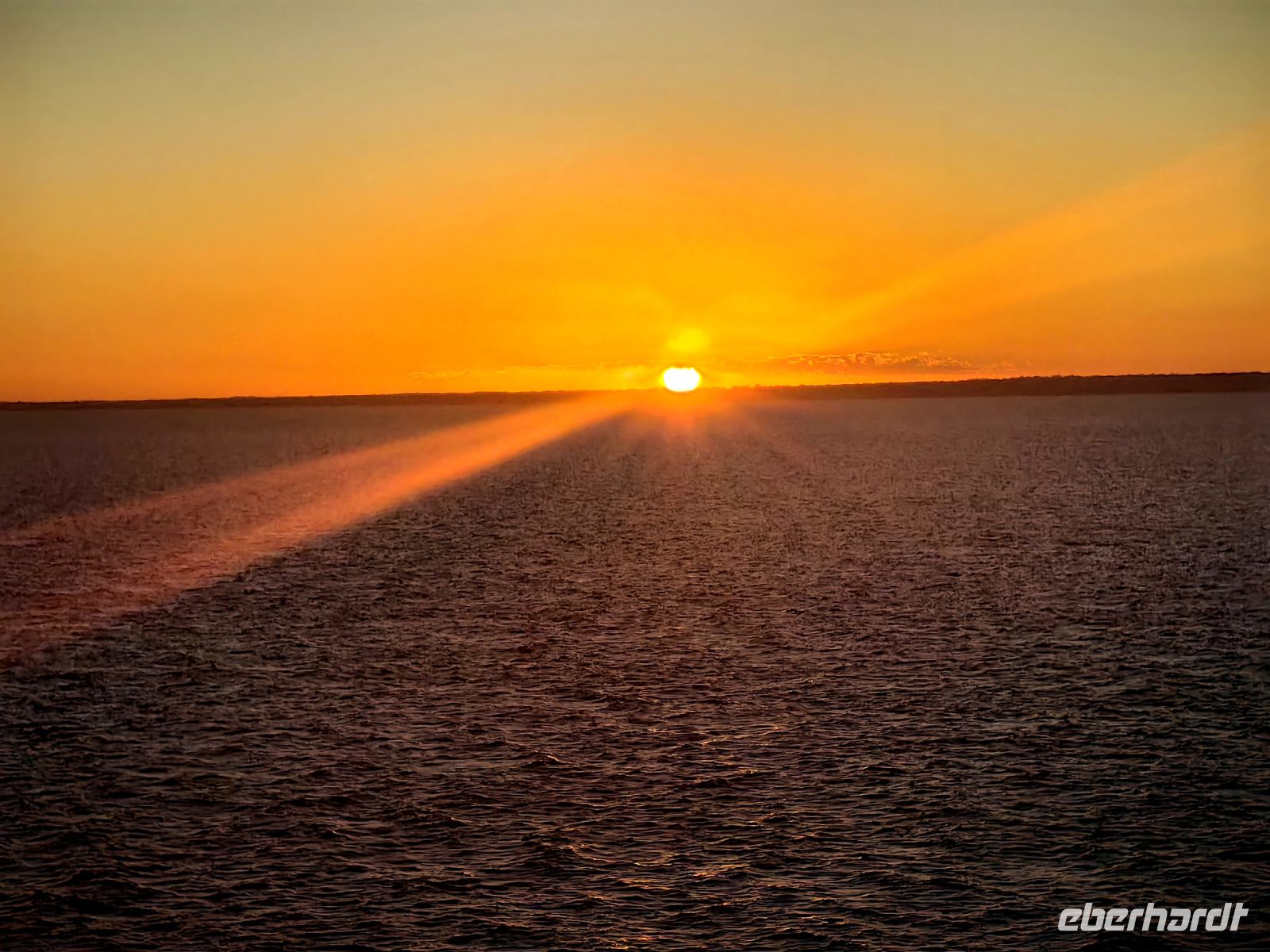 Um 6.51 Uhr am Morgen steigt ein glutroter Sonnenball am Himmel empor. Die Sonnenauf- und untergänge sind auf See immer spektakulär, da nichts die Sicht versperrt. Wenig später erscheint mitten im rosaroten Morgenhimmel die Kulisse von Melbourne.
