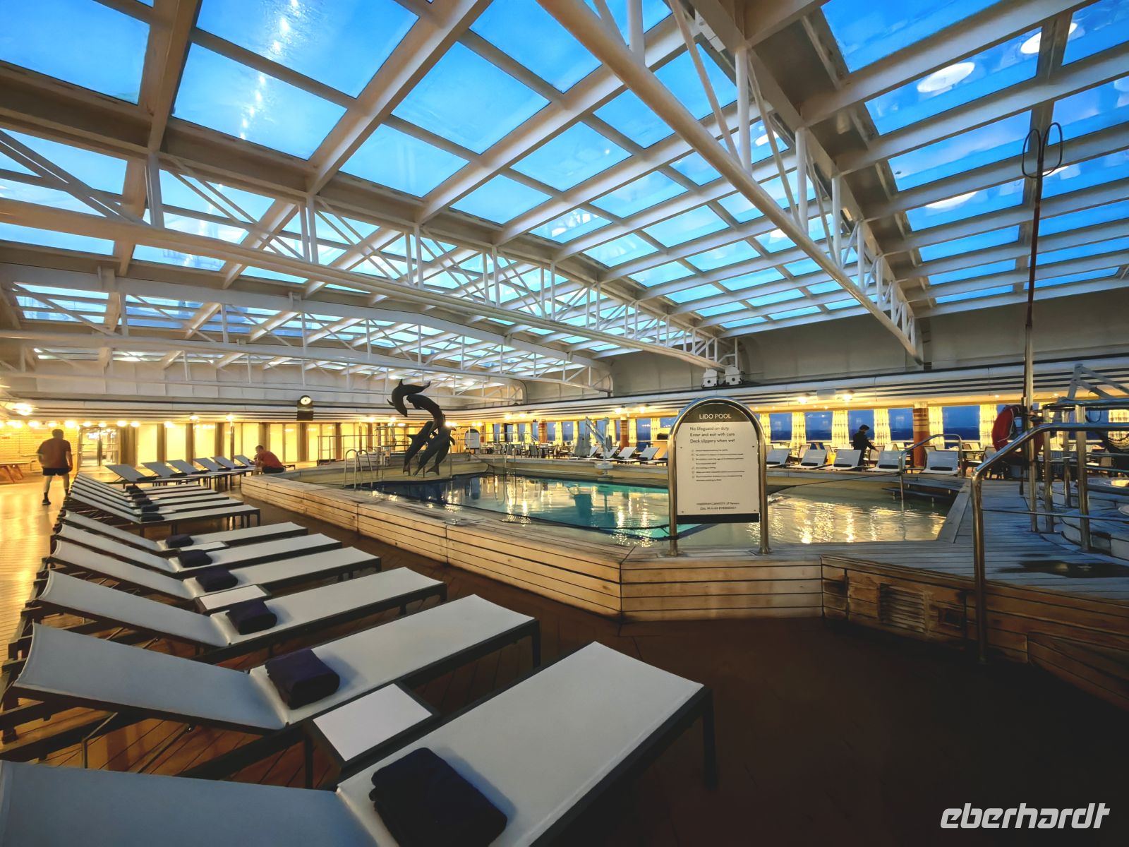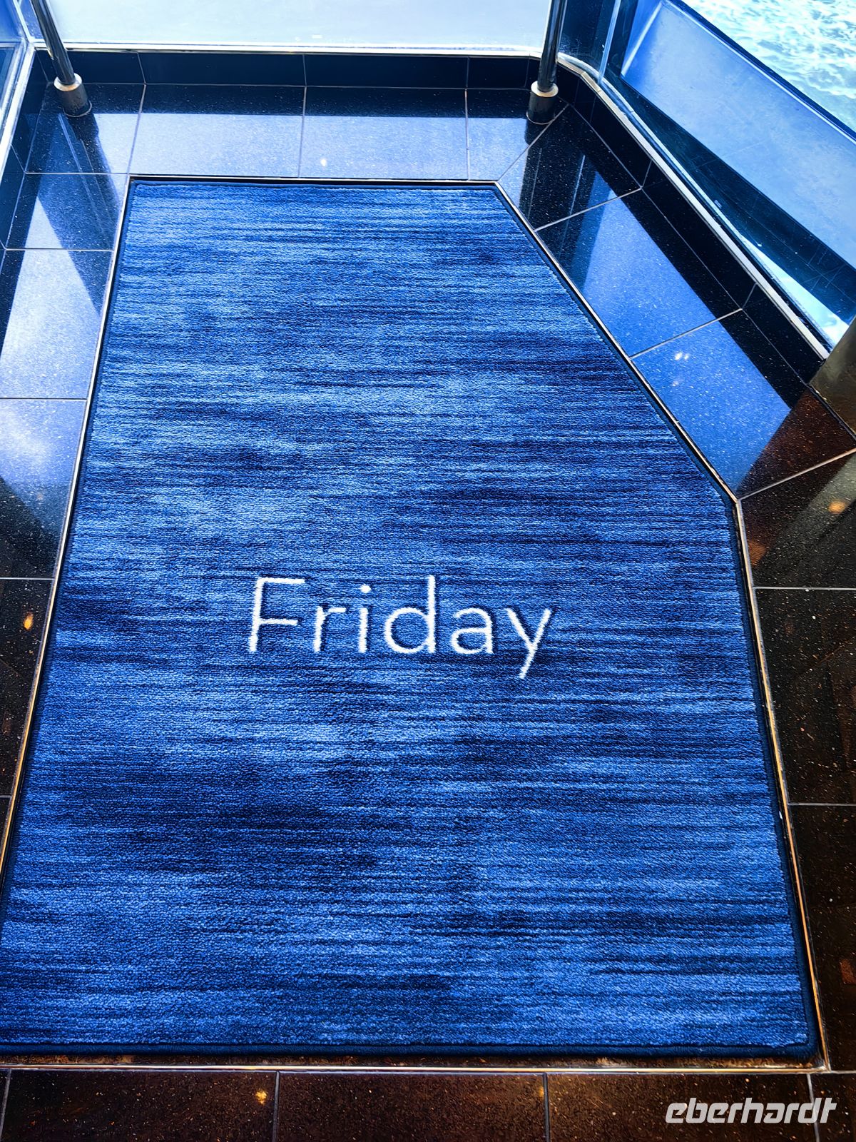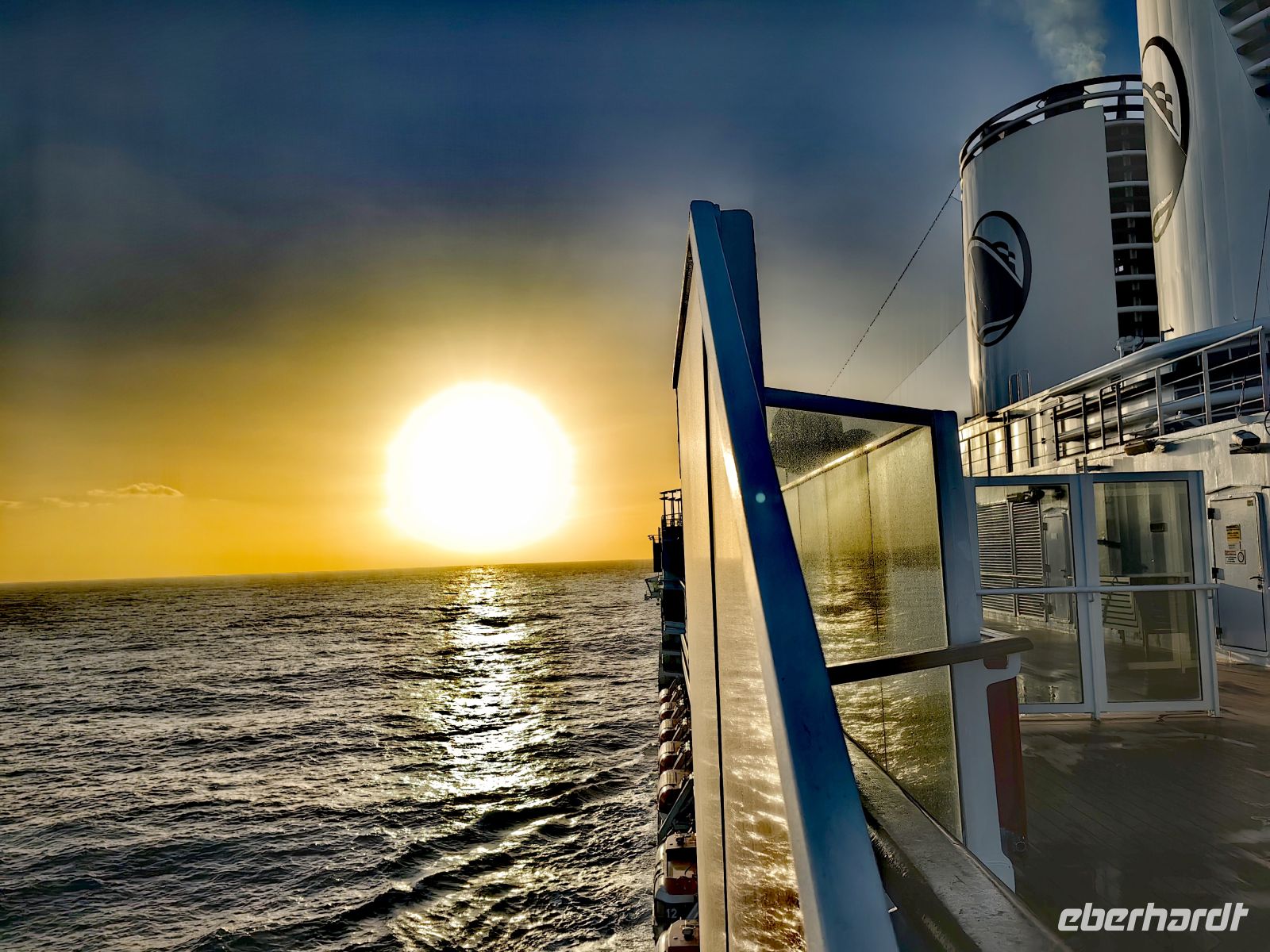 Am frühen Morgen lacht bereits die Sonne vom strahlend blauen Himmel herunter, wir haben also für unseren Tag auf See die besten Voraussetzungen. Jeder wird bei dem umfangreichen Freizeitangebot etwas Passendes finden, egal ob einen Koch- oder Origamikurs, die Sportlichen haben die Wahl zwischen Fitness im Studio oder Kursen mit dem Trainer. Gemütlich und spaßig geht es immer beim Shufflebord zu, auch wenn man nicht dorthin trifft, wo man es geplant hat.