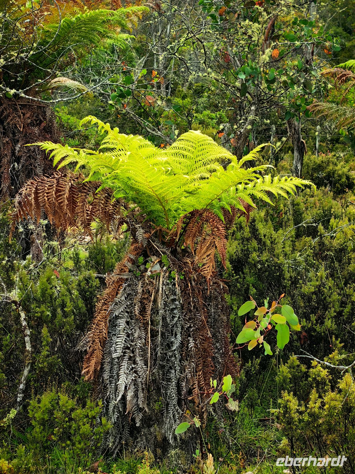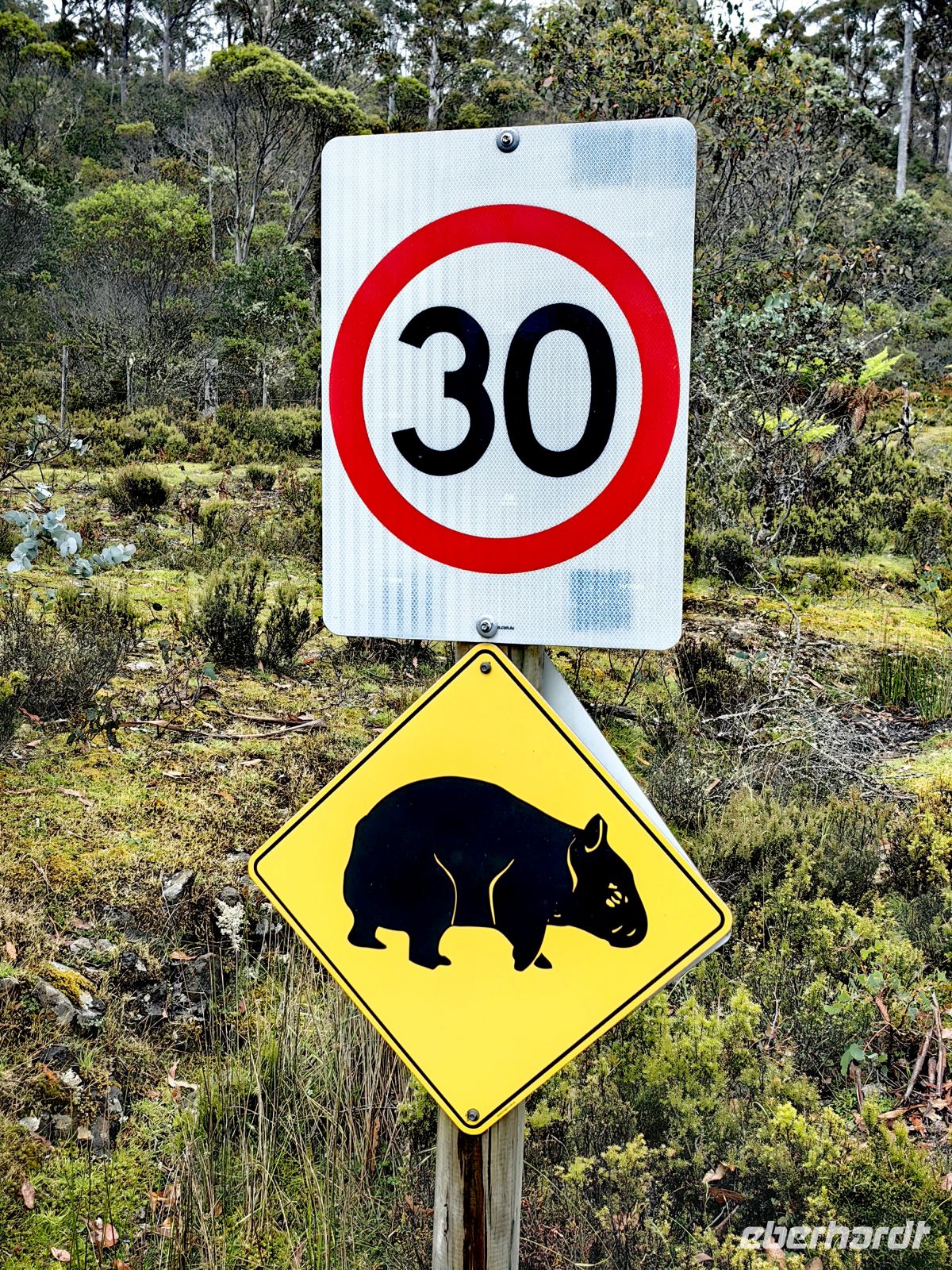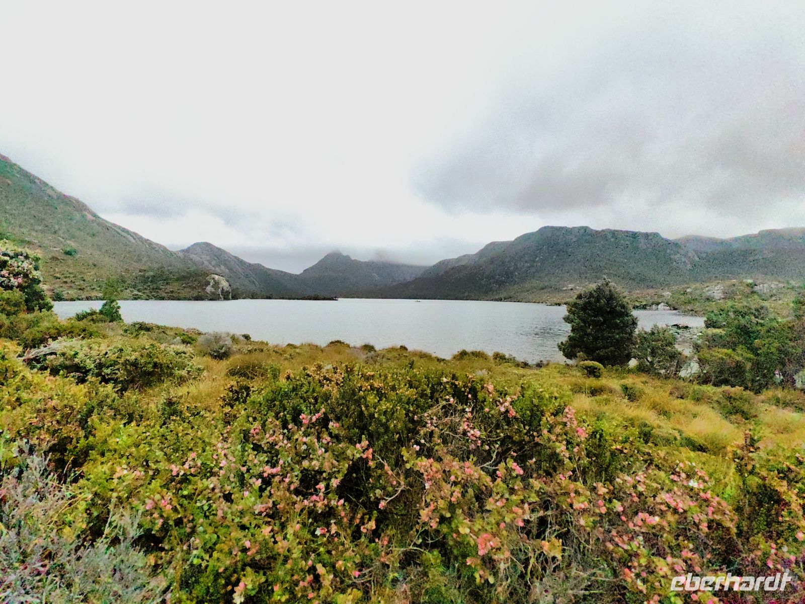 Nach etwa eineinhalbstündiger Fahrt ins Landesinnere erreichen wir die Berge des Cradle Mountain Nationalparks, die im zentralen tasmanischen Hochland liegen. In ihm finden sich zahlreiche Bergseen, Wasserfälle, Schluchten, Gebirgsketten und unter anderem der höchste Berg Tasmaniens, der 1.617 Meter hohe Mount Ossa und der bei Wanderern und Bergsteigern beliebte 1.216 Meter hohe Artillery Knob. In den niedrigeren Lagen gibt es größere Waldbestände. Aufgrund der Vielgestaltigkeit der Landschaft umfasst die Vegetation ein facettenreiches und reizvolles Mosaik von Vegetationsgesellschaften mit einer Spannweite von Regenwäldern bis zu Grasländern. In der Cradle Mountain Region bedecken Moor- und Heidegebiete weite Teile des Parks.